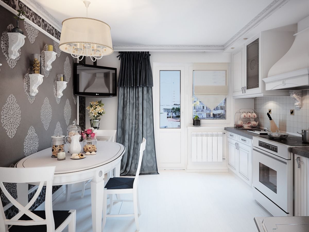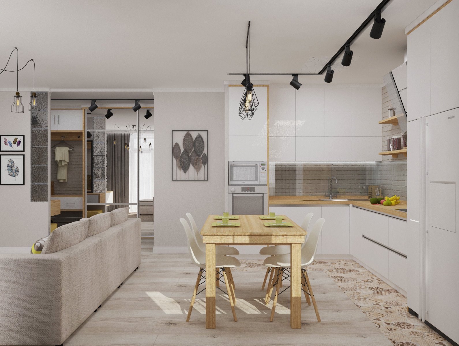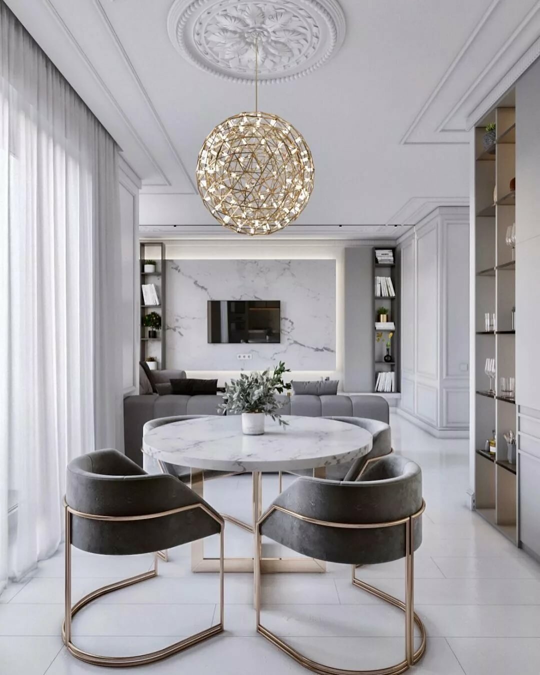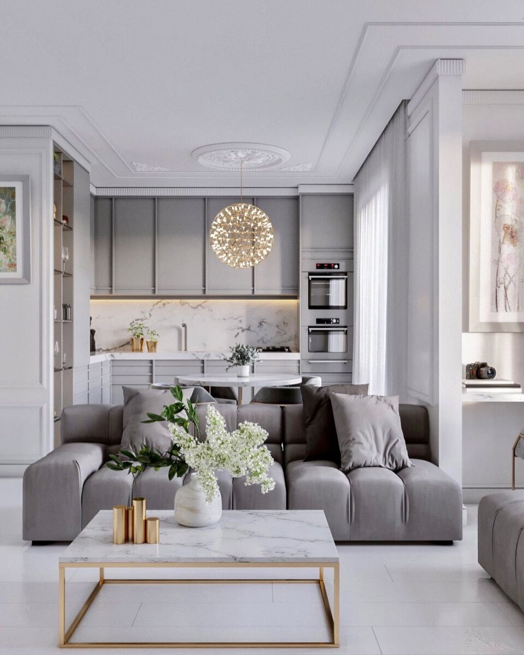 Кухня-гостиная 40 м2 в стиле Неоклассика
