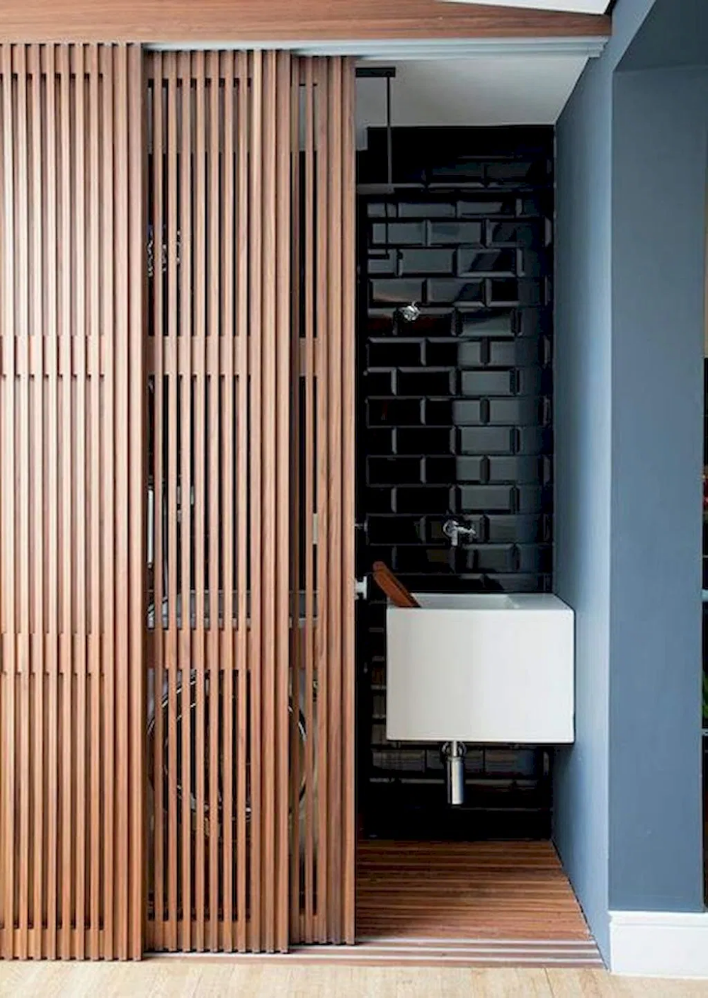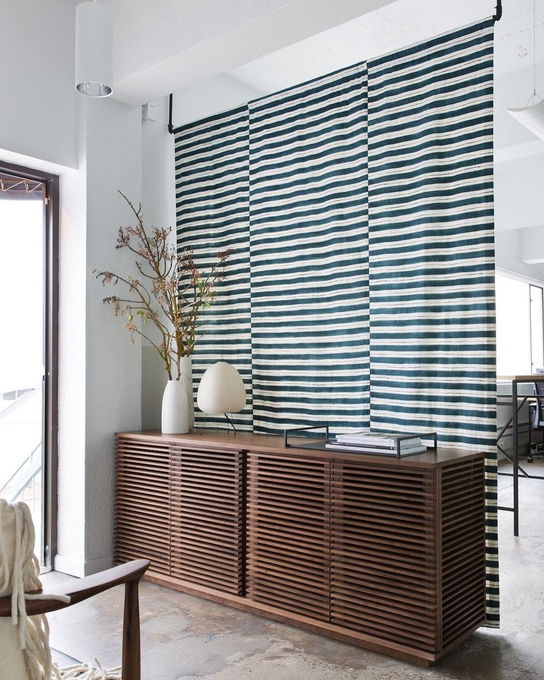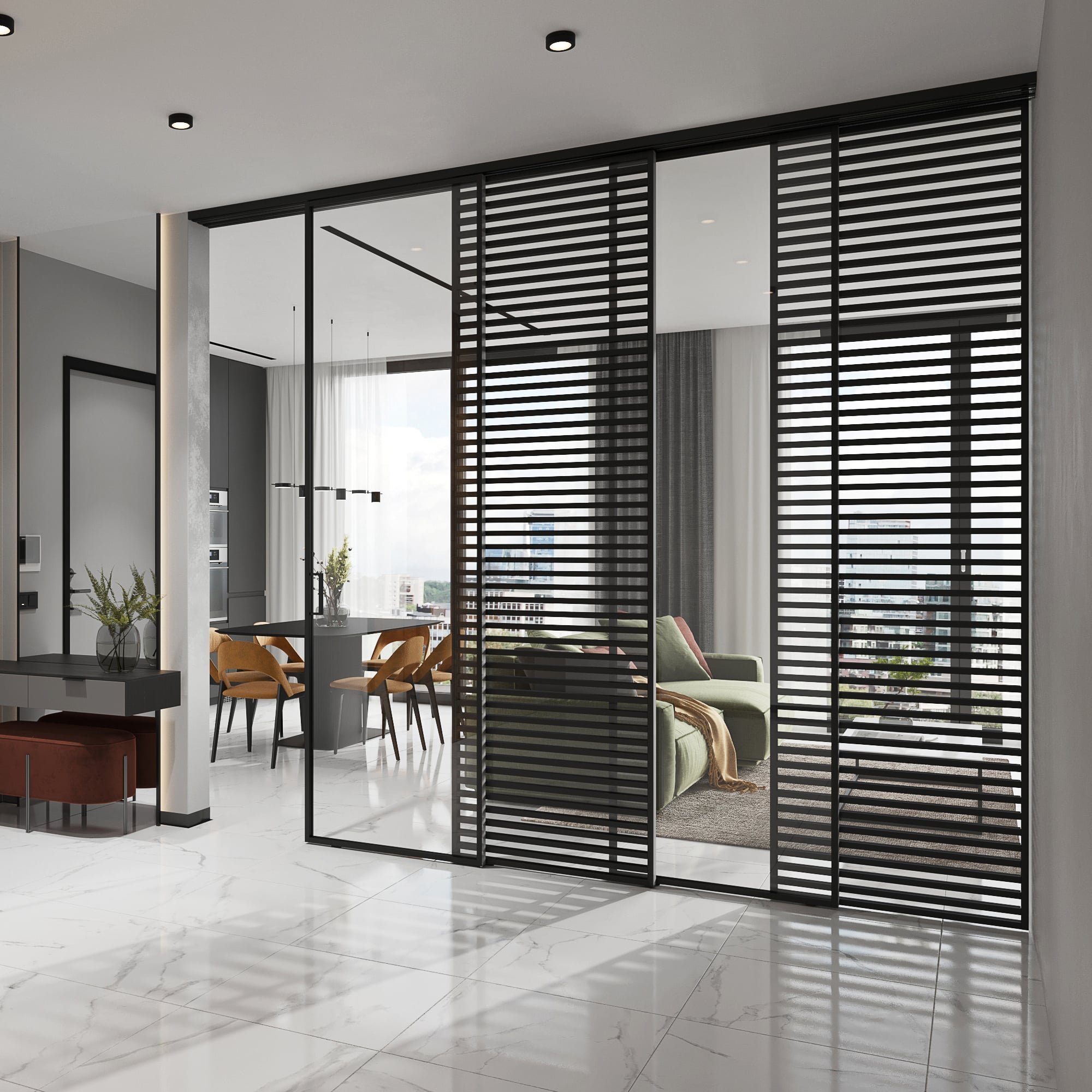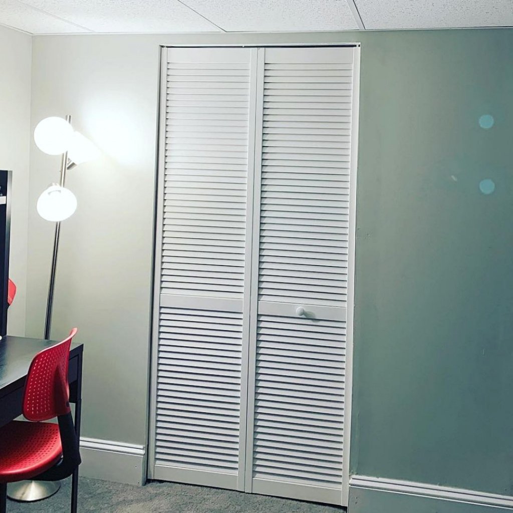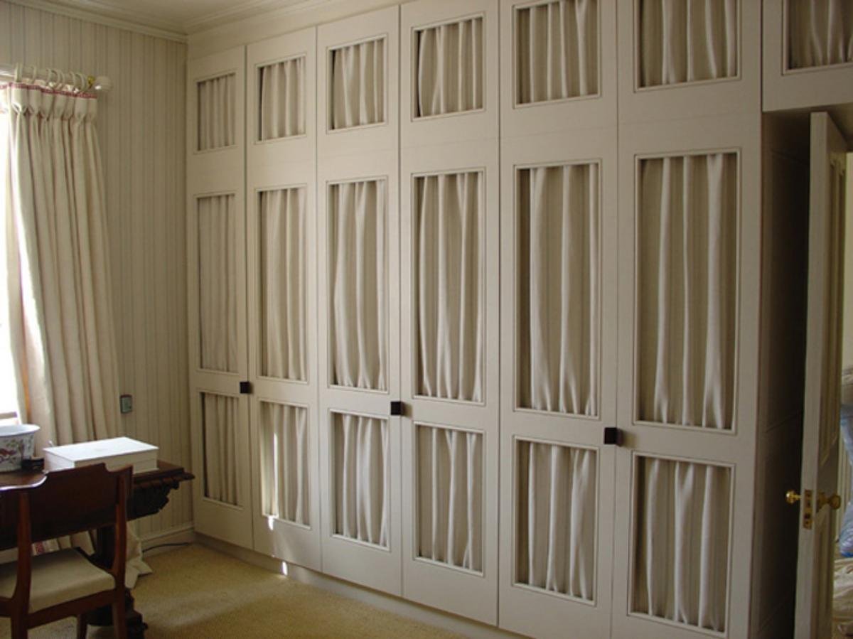 Жалюзийные дверцы в гостиной с местом под ТВ