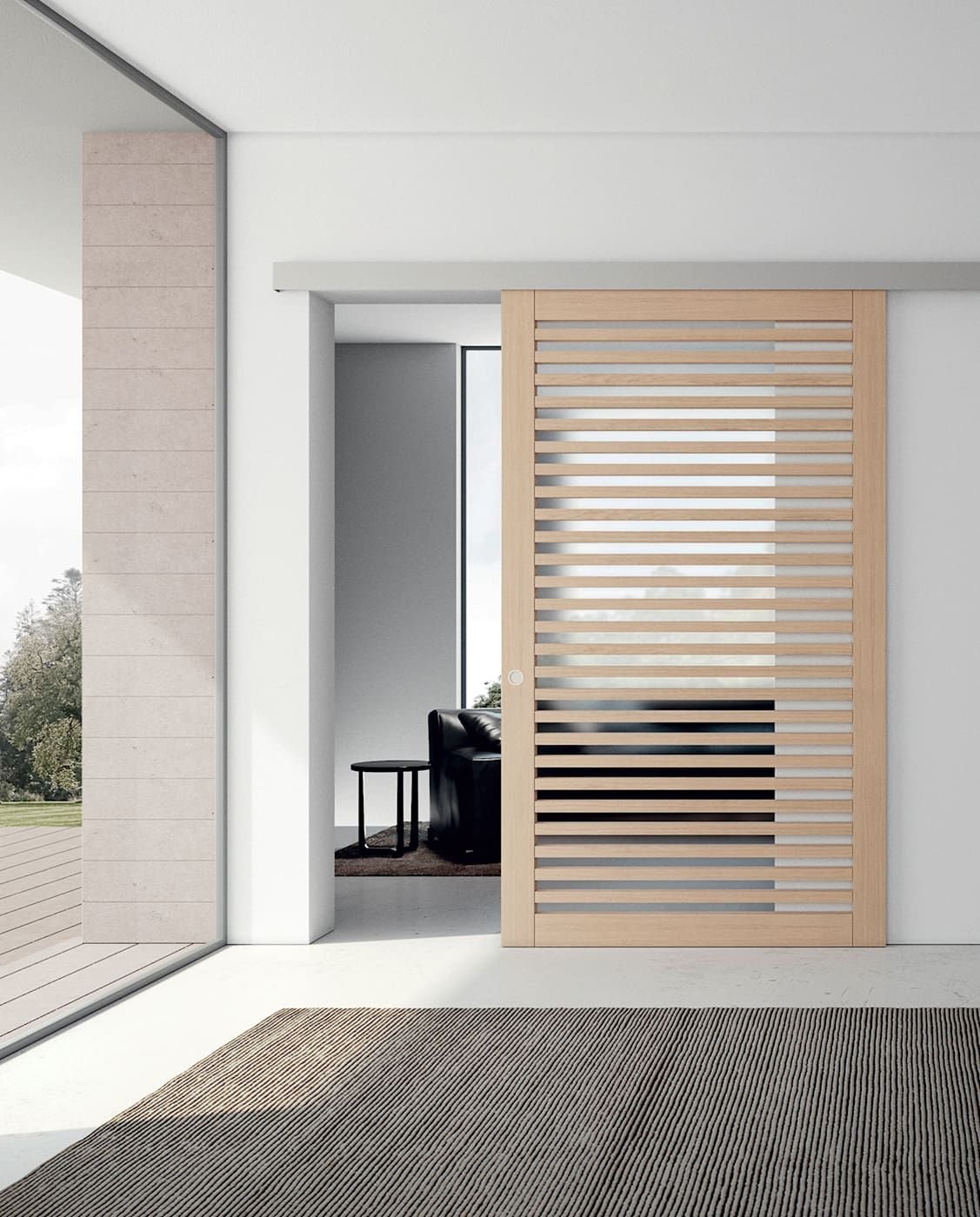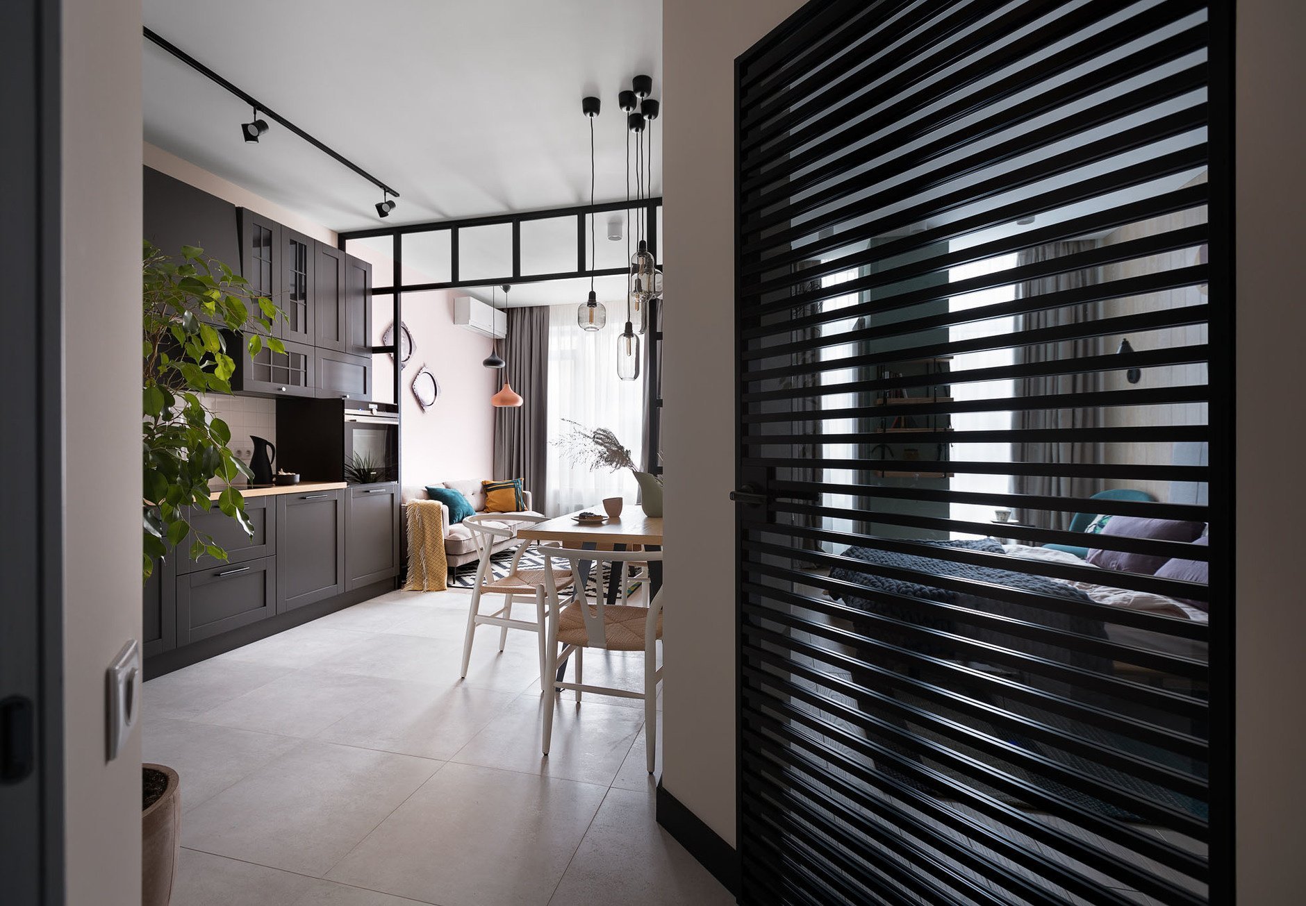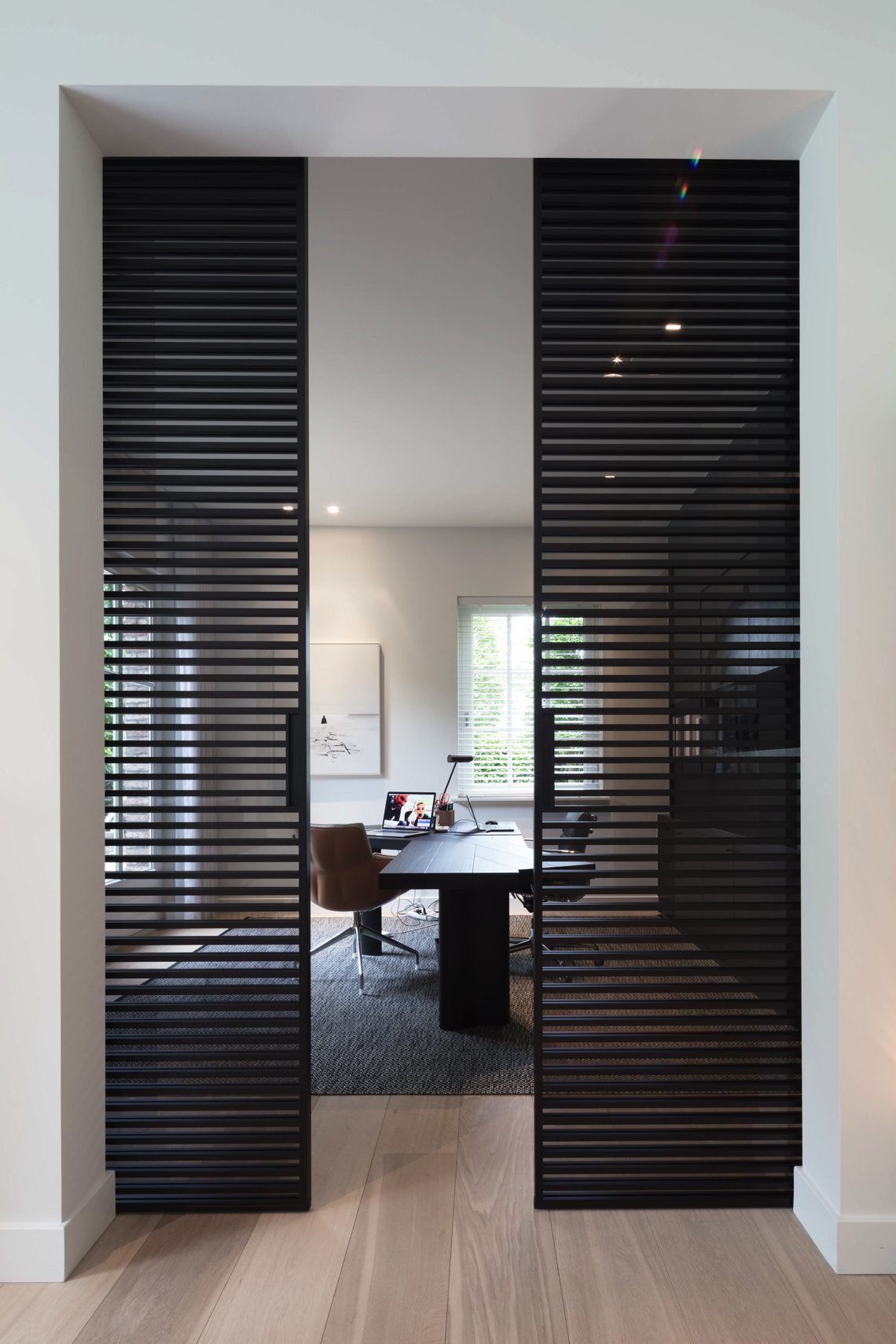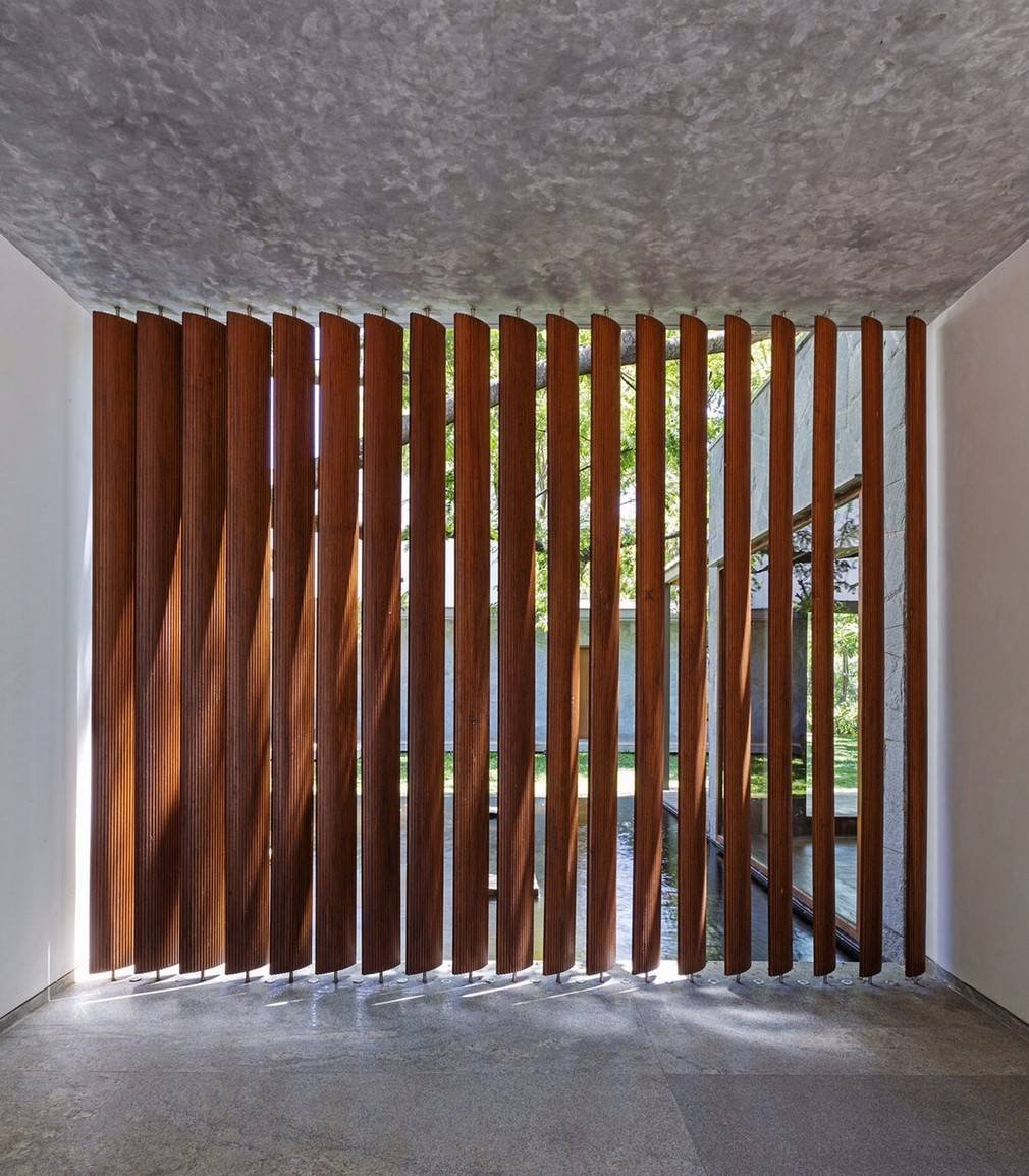 Жалюзийные дверцы в гостиной с местом под ТВ