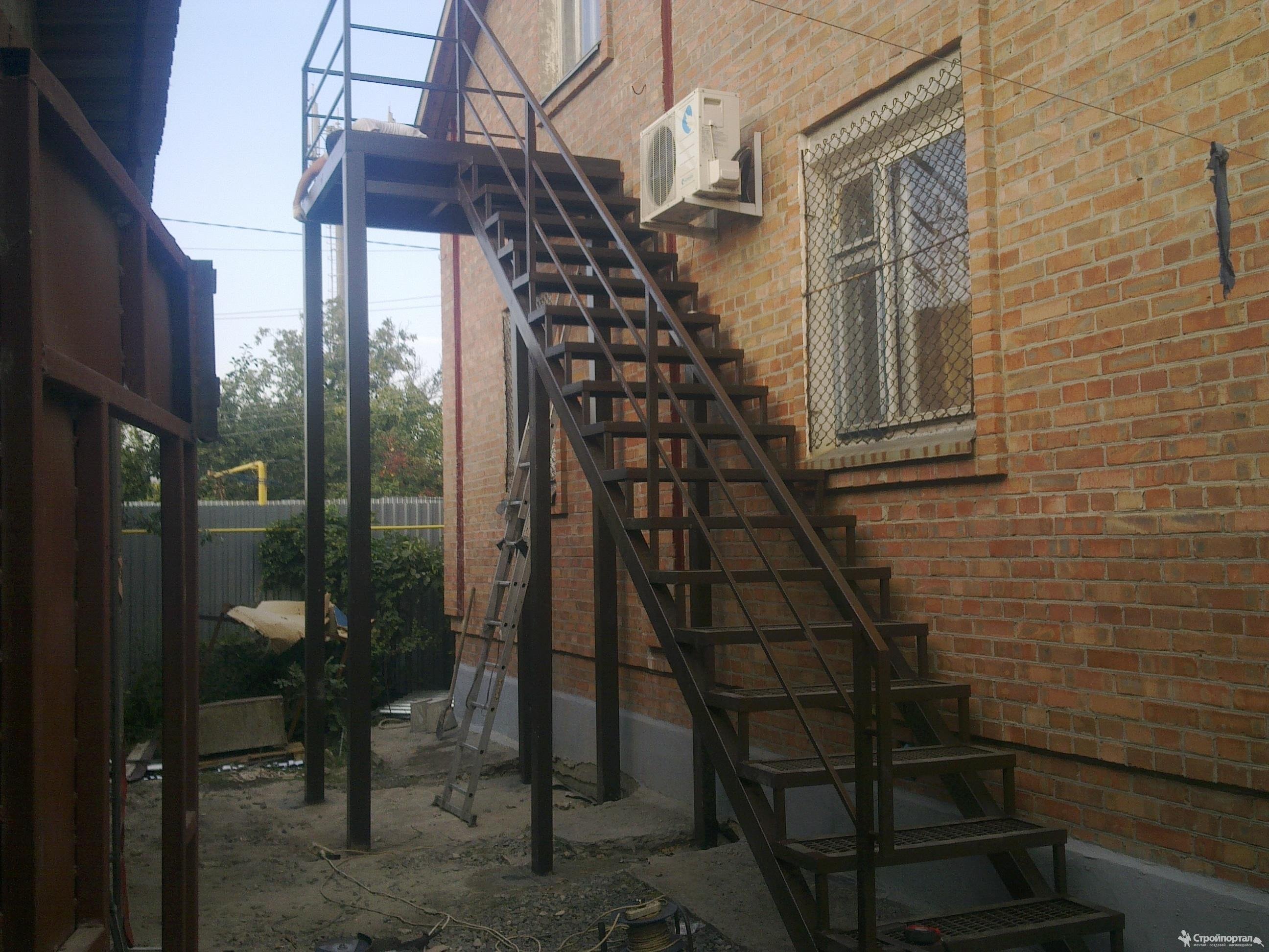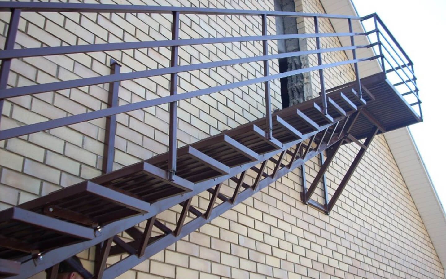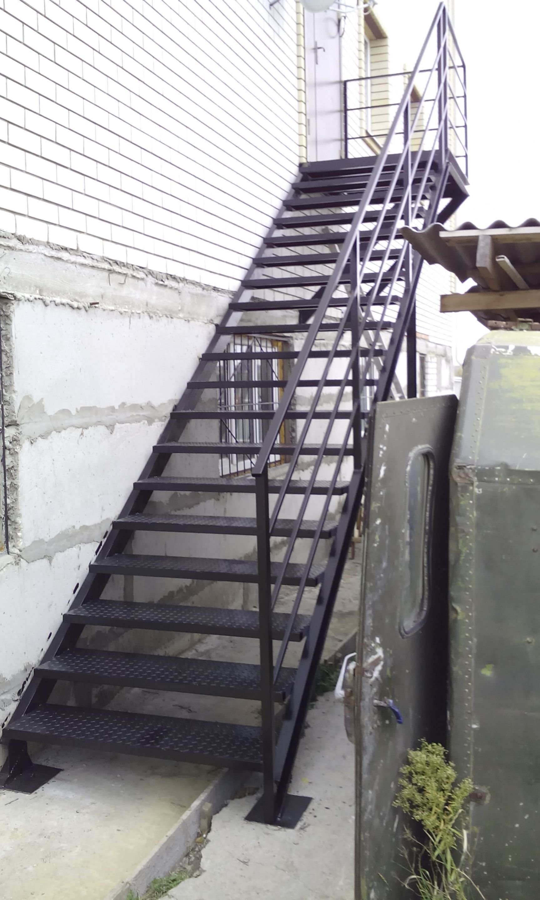 Лестница п-2 двухмаршевая наружная металлическая пожарная прямая