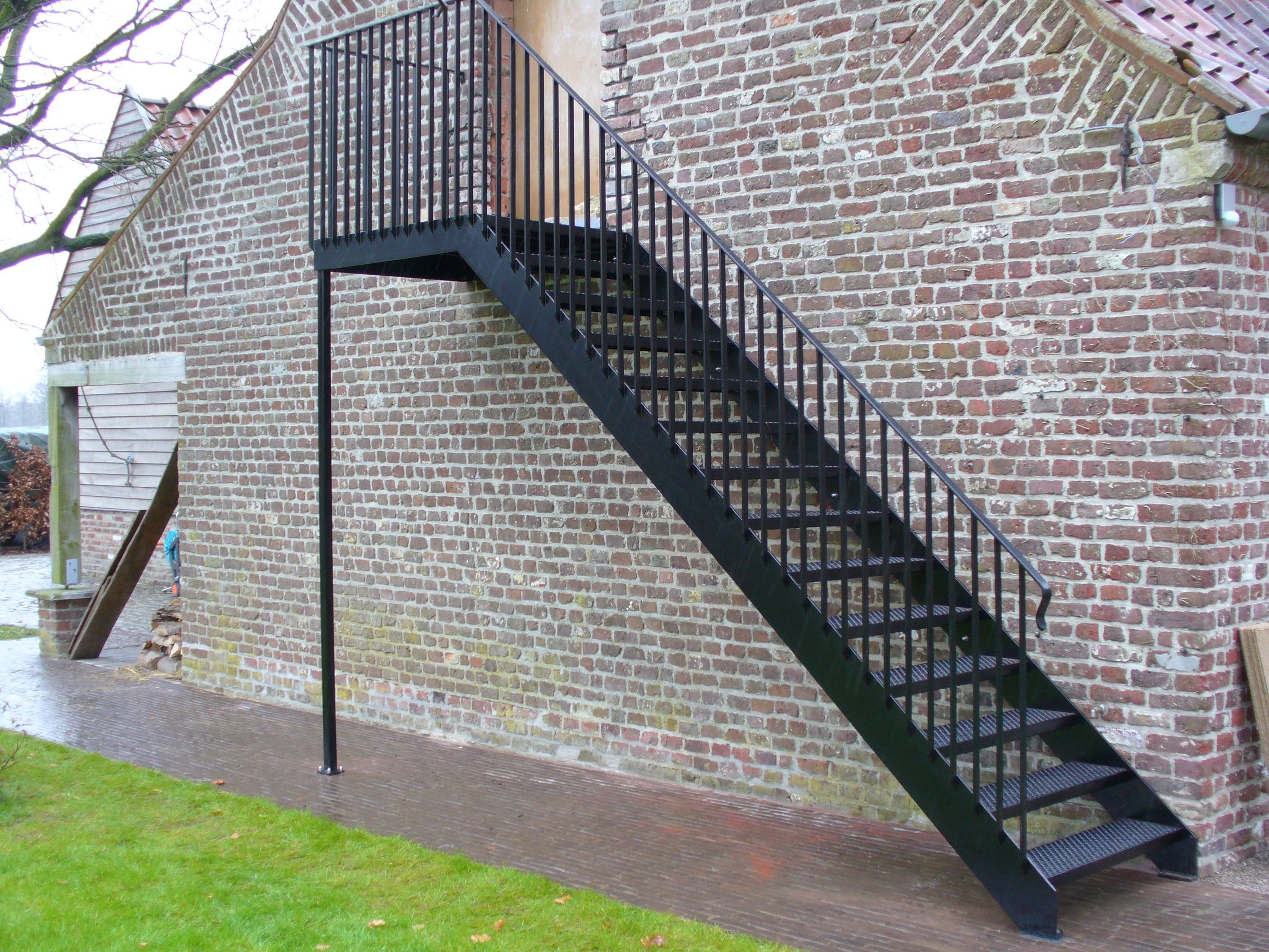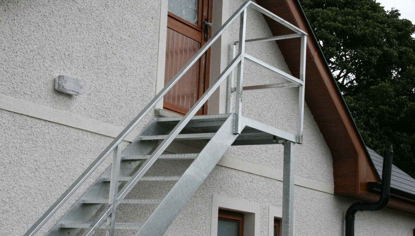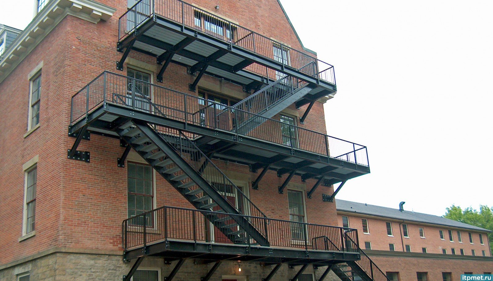 Лестница п-2 двухмаршевая наружная металлическая пожарная прямая