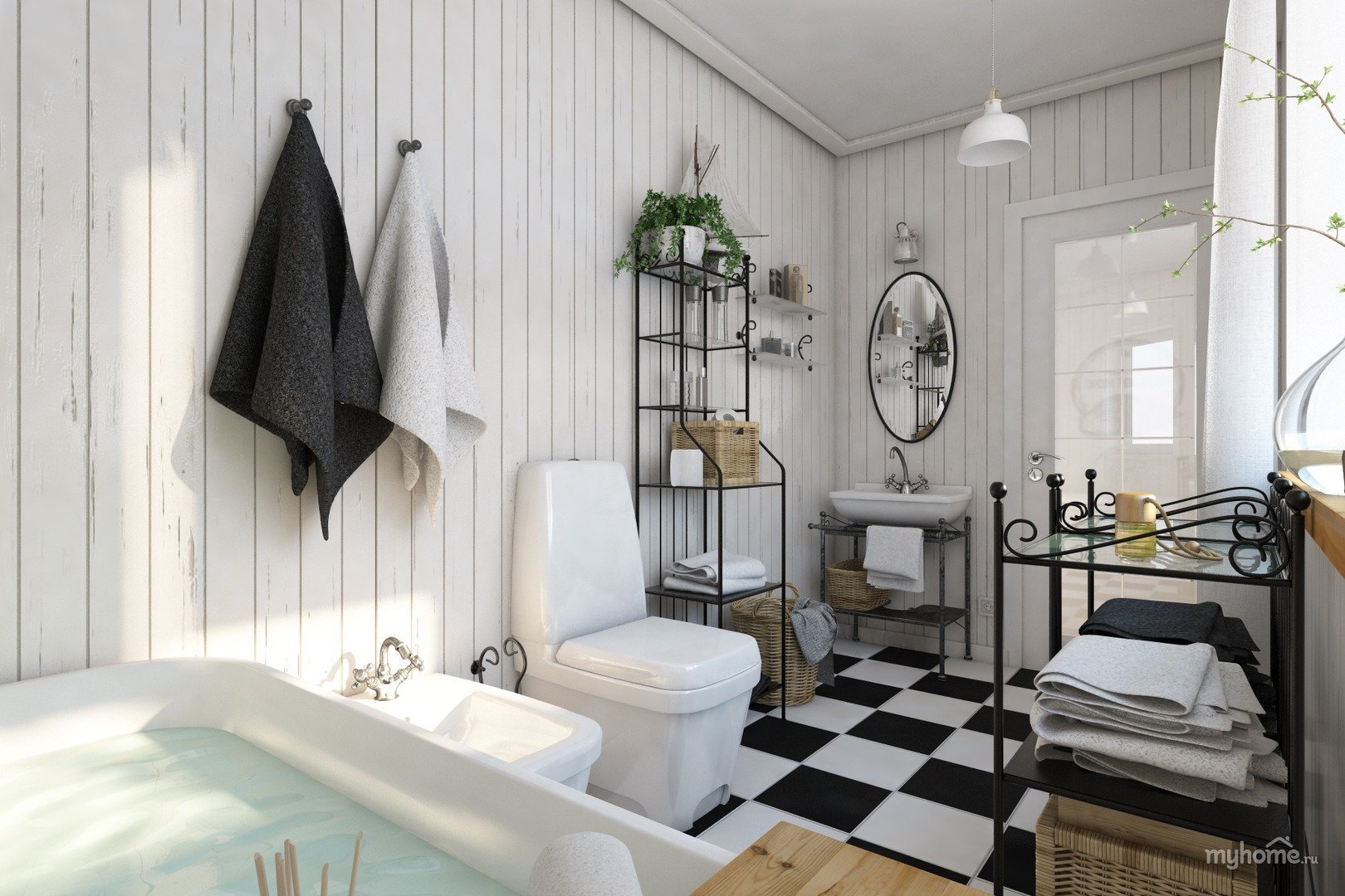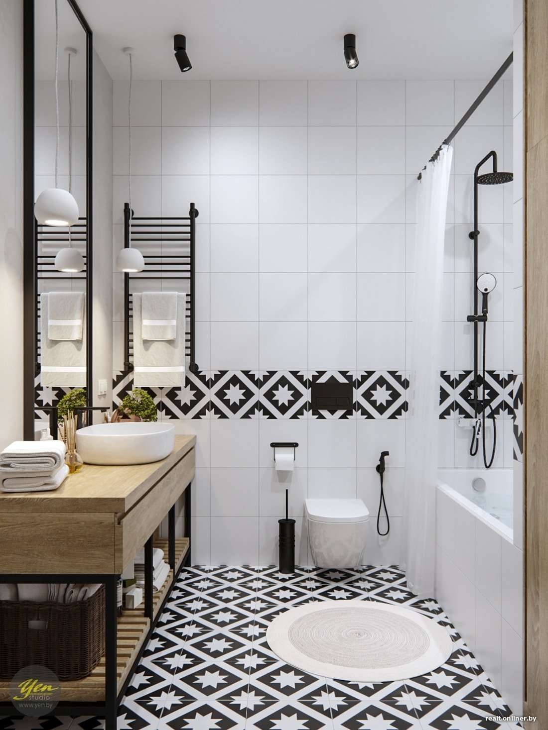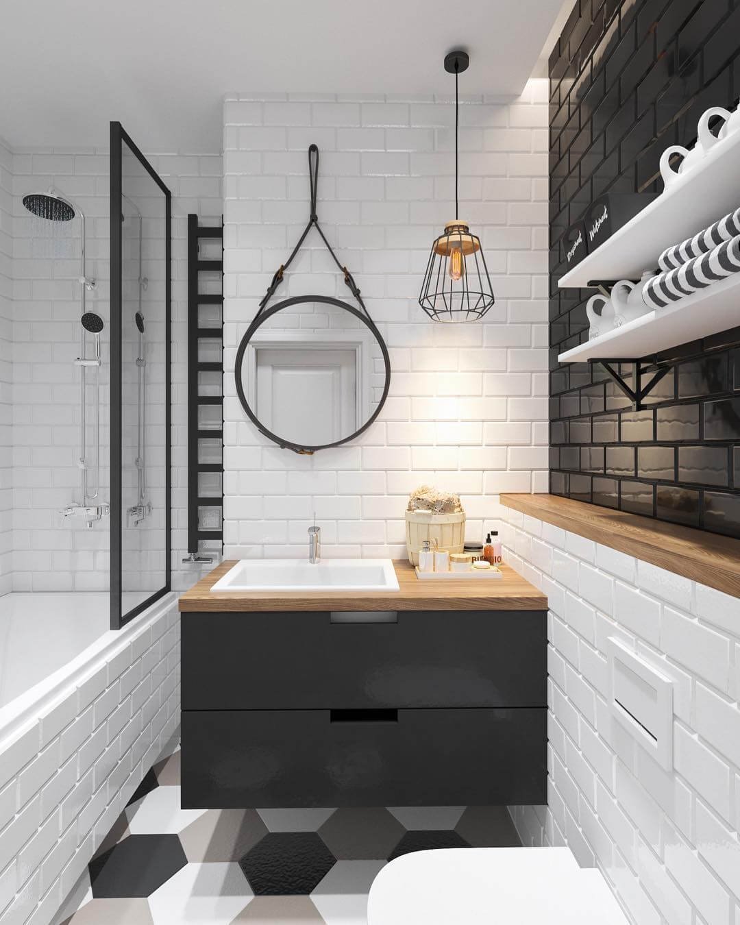 Ванная в скандинавском стиле черно белая