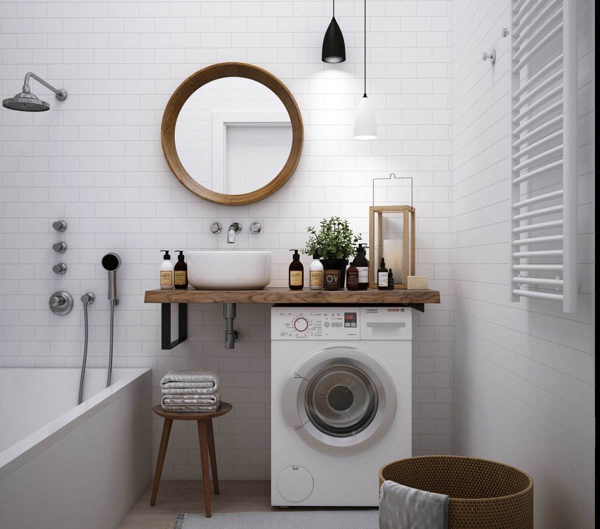 Компактная ванная в скандинавском стиле