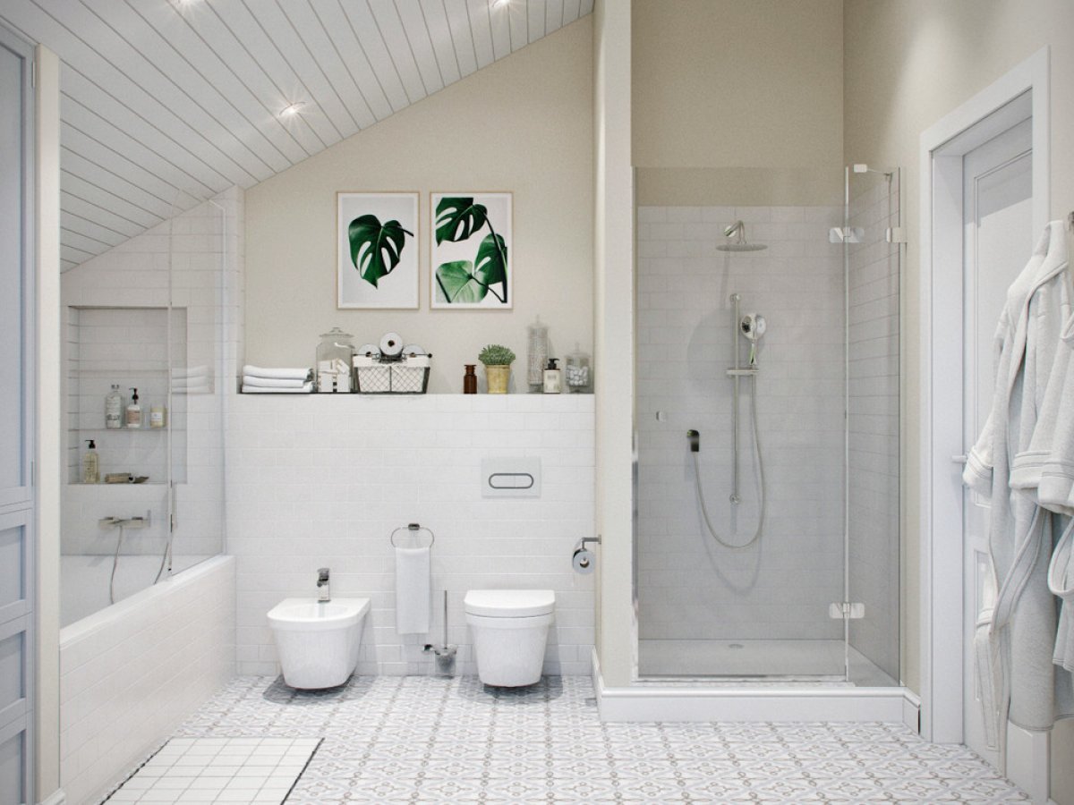 Ванная в скандинавском стиле с душем