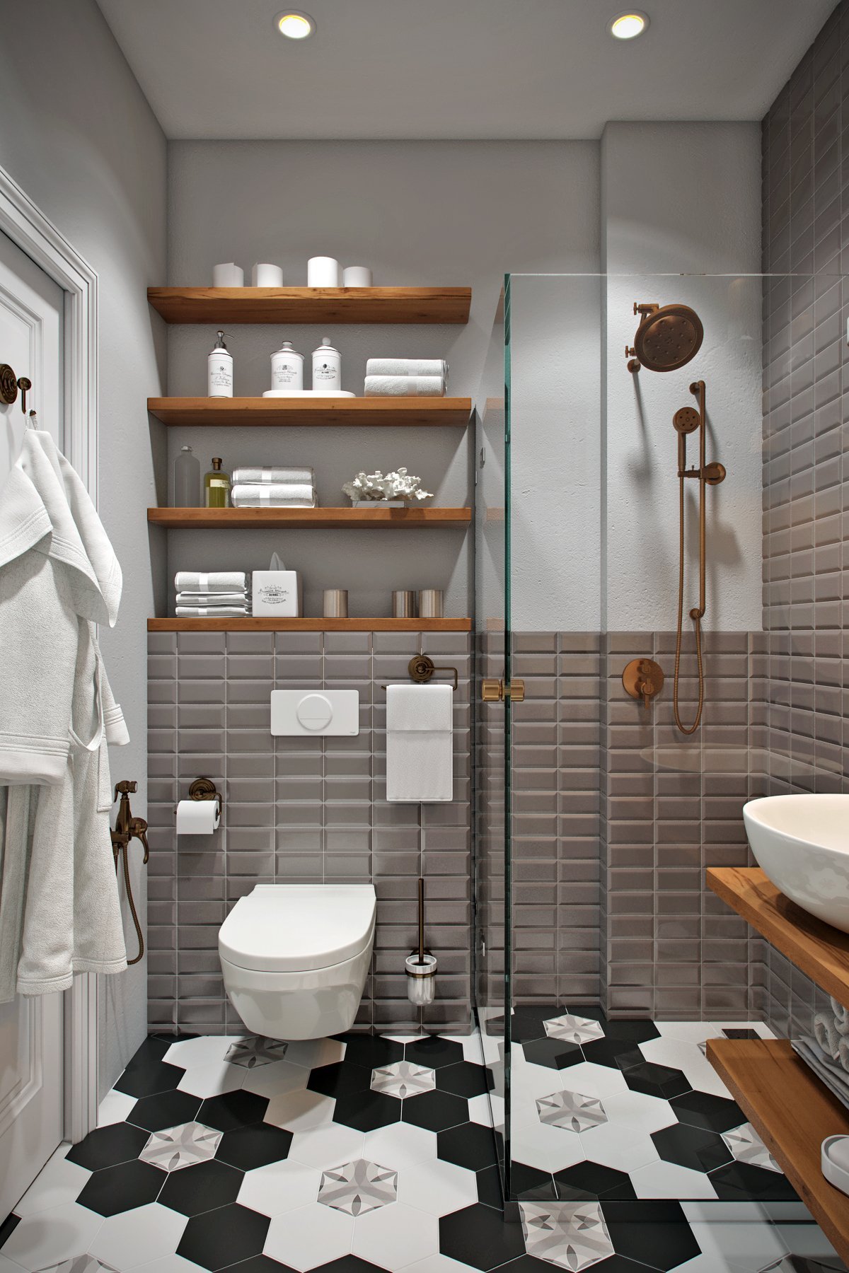 Ванна в скандинавском стиле в серых тонах
