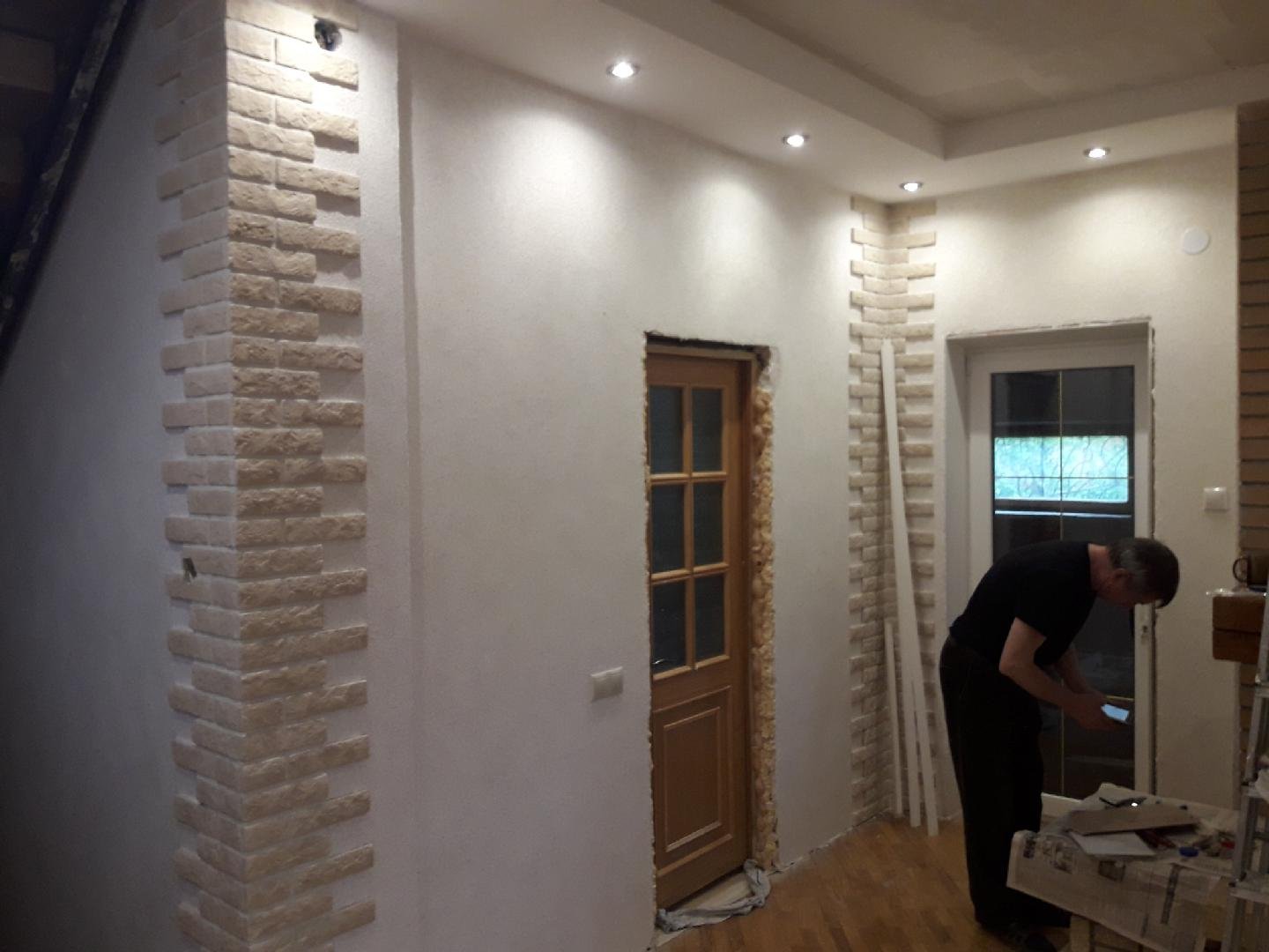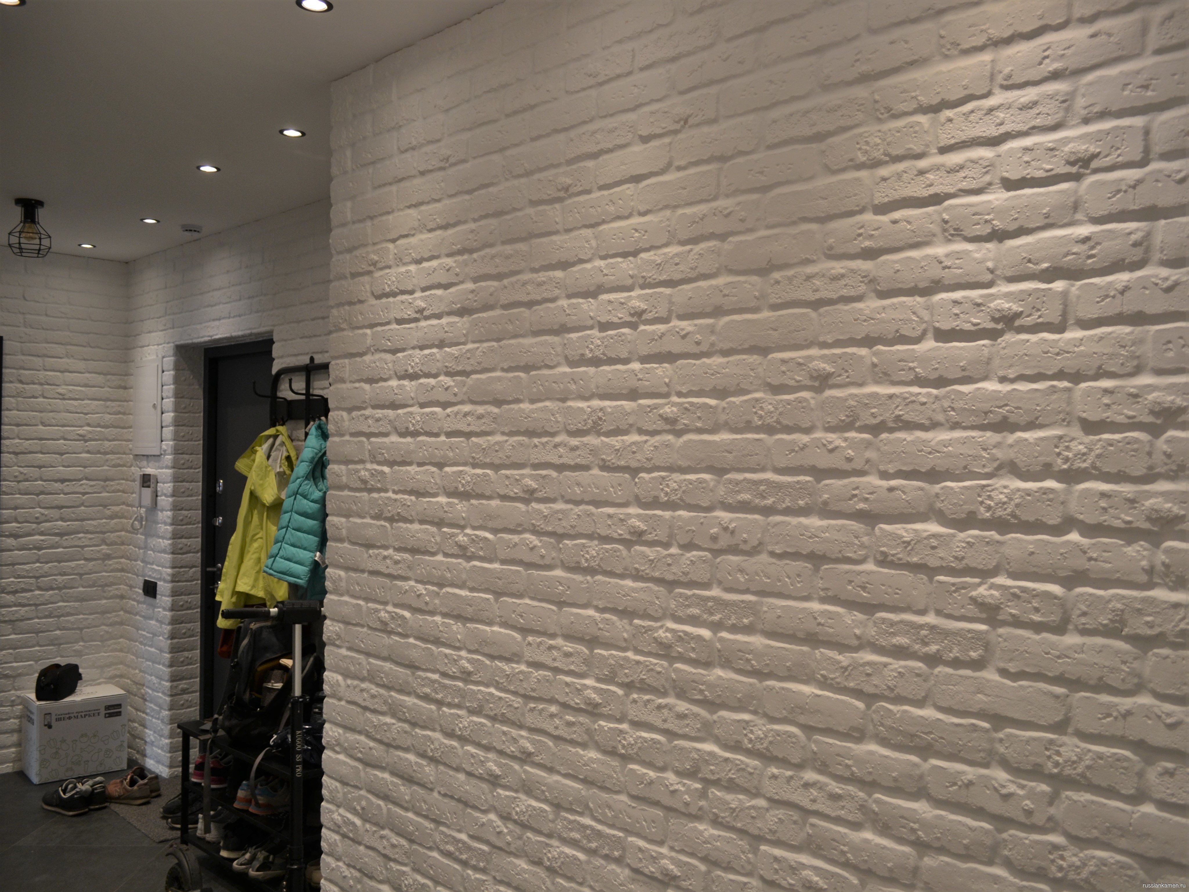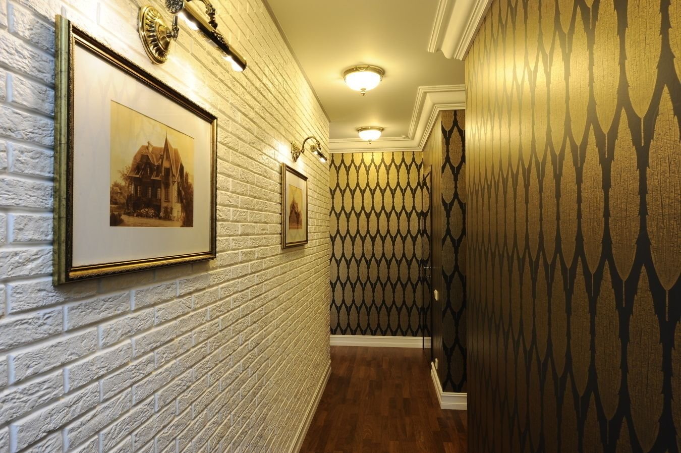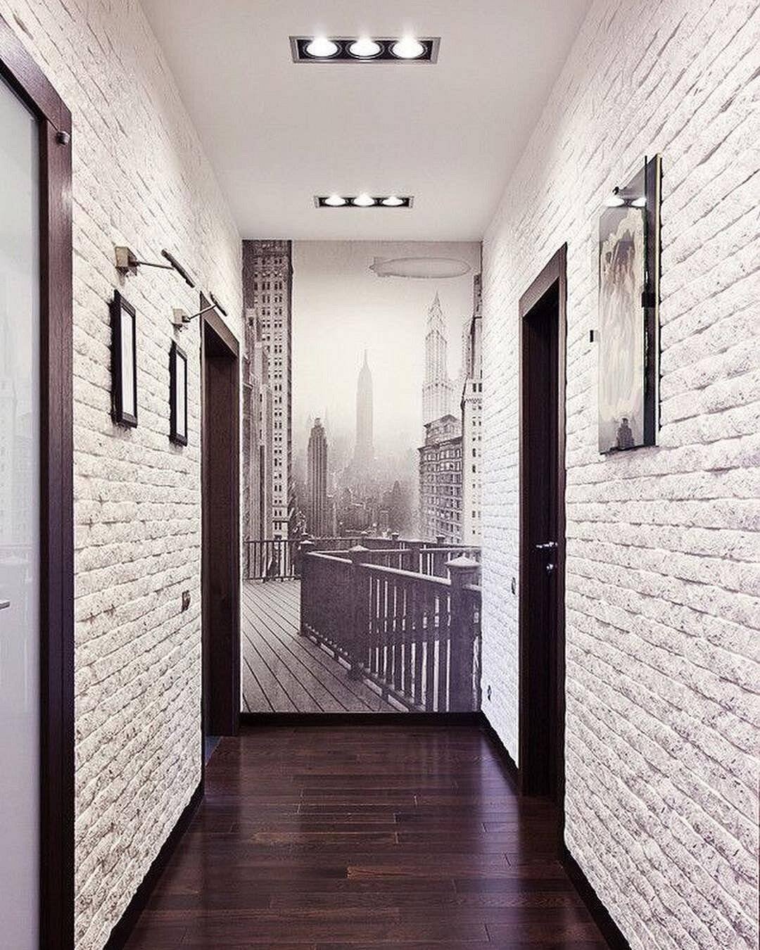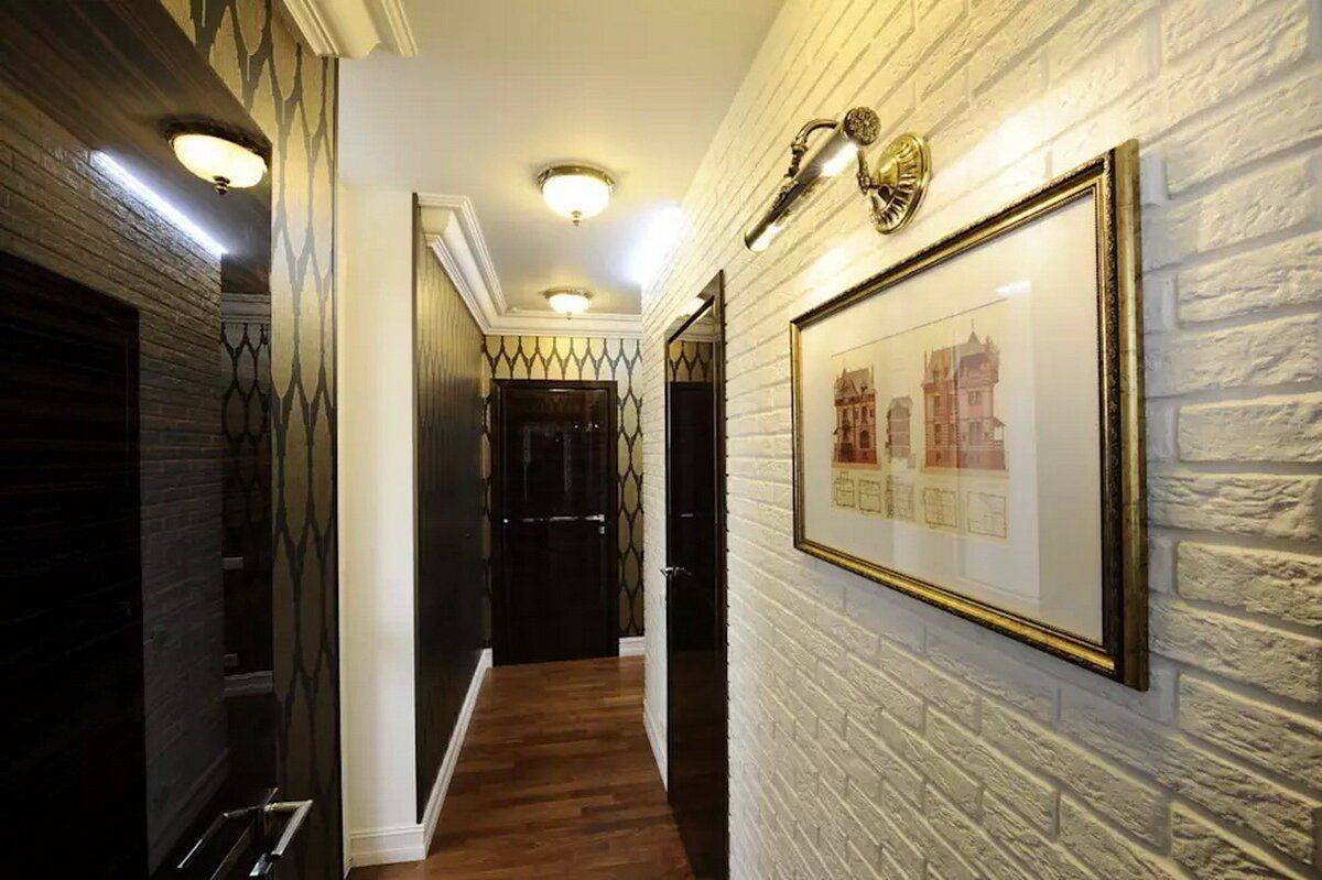 Ремонт длинного коридора гипсовый кирпич в квартире фото