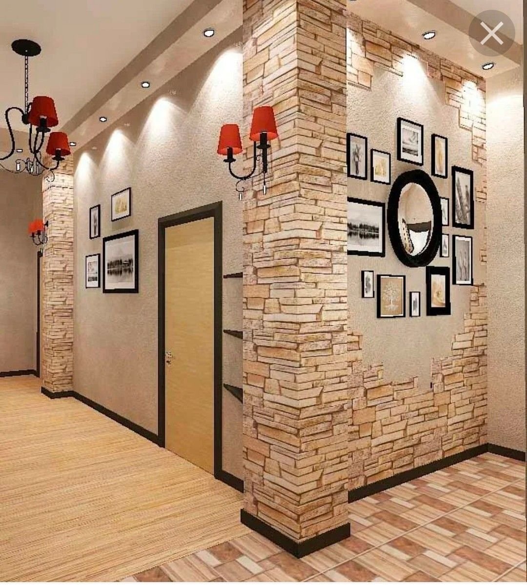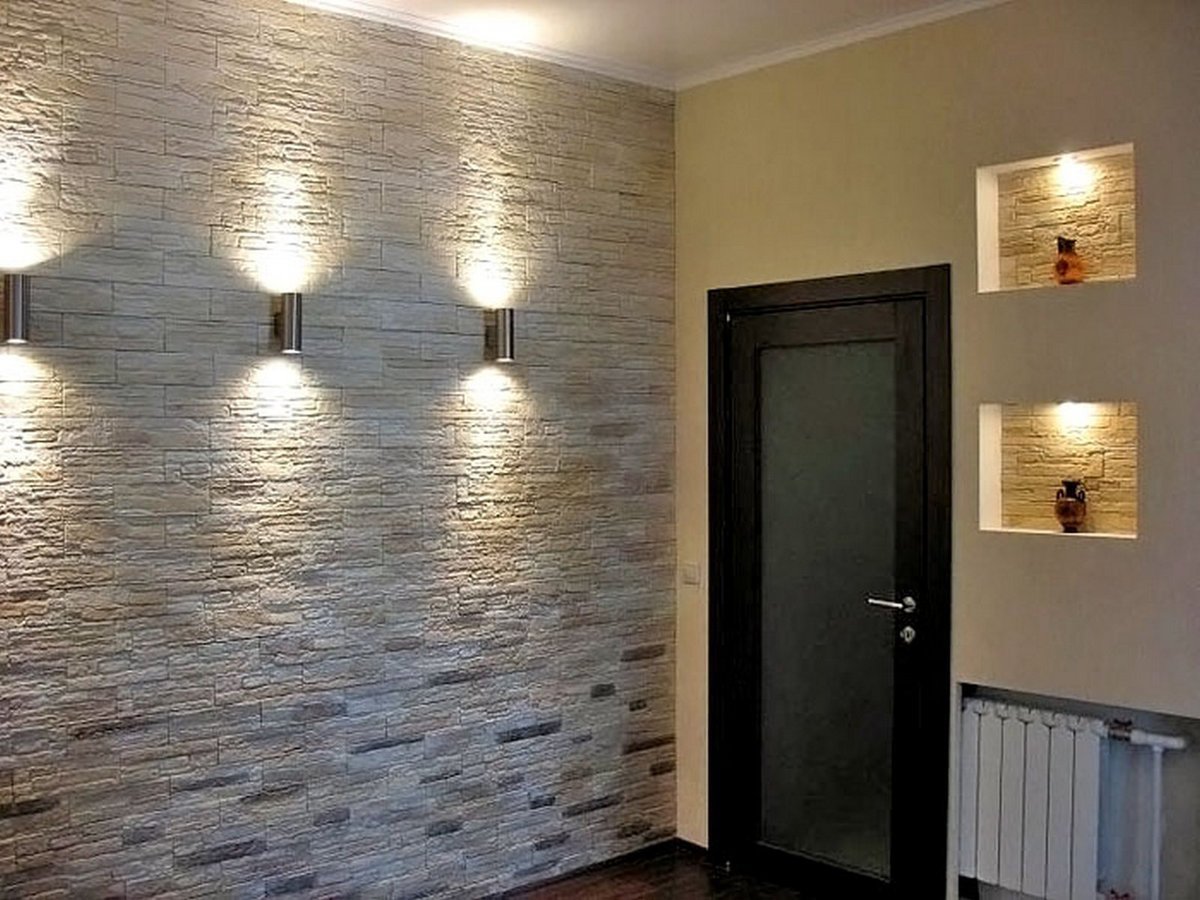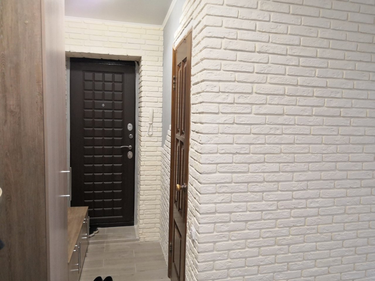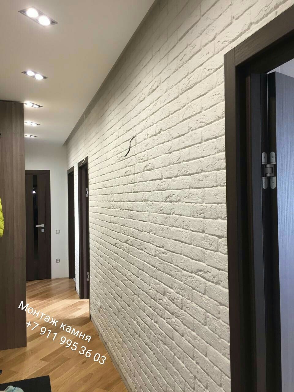 Ремонт длинного коридора гипсовый кирпич в квартире фото