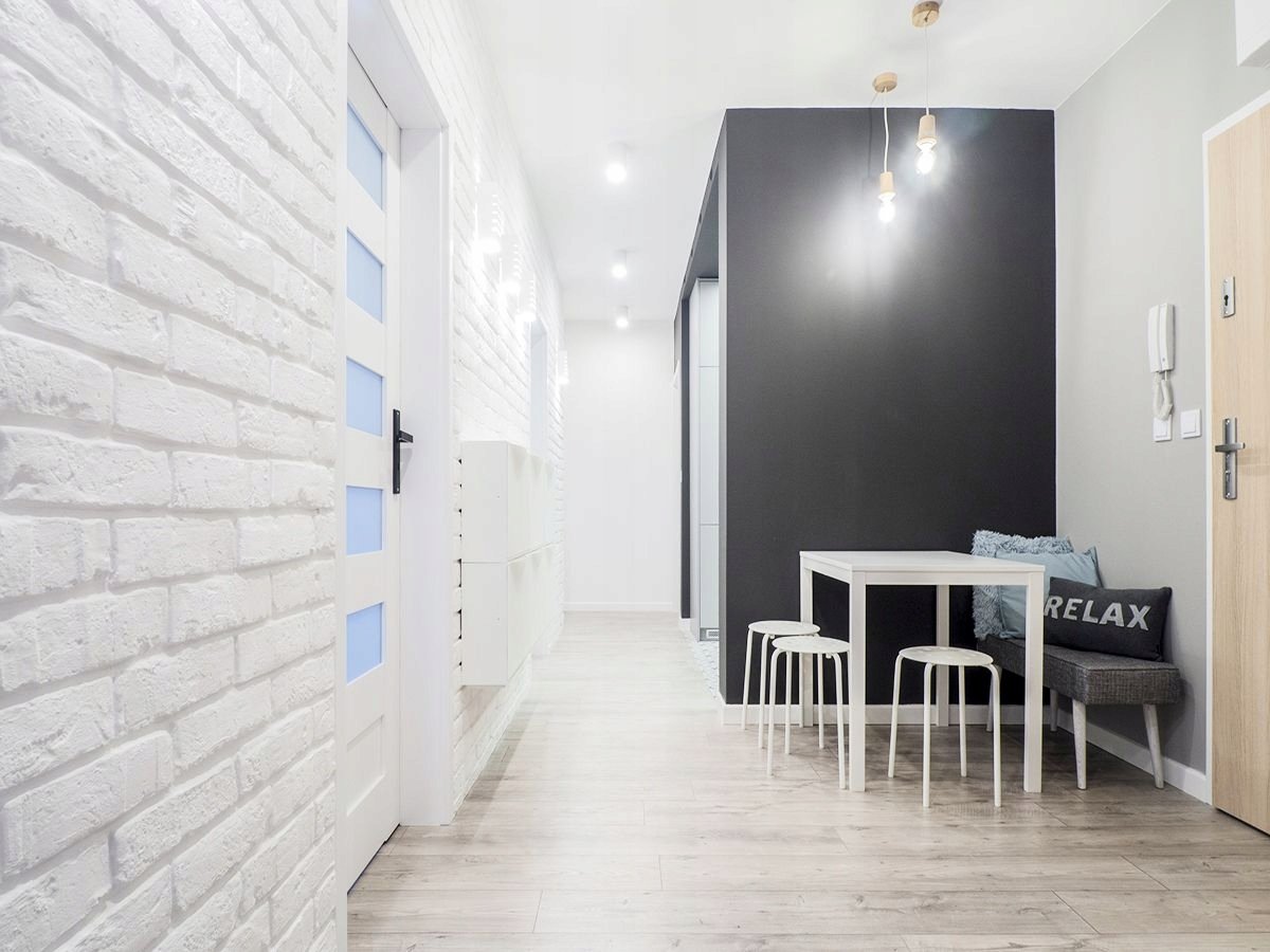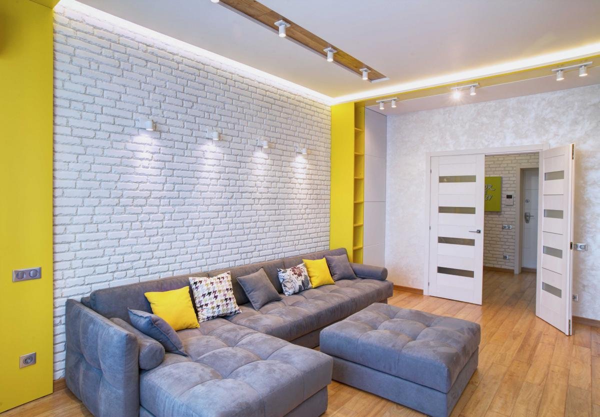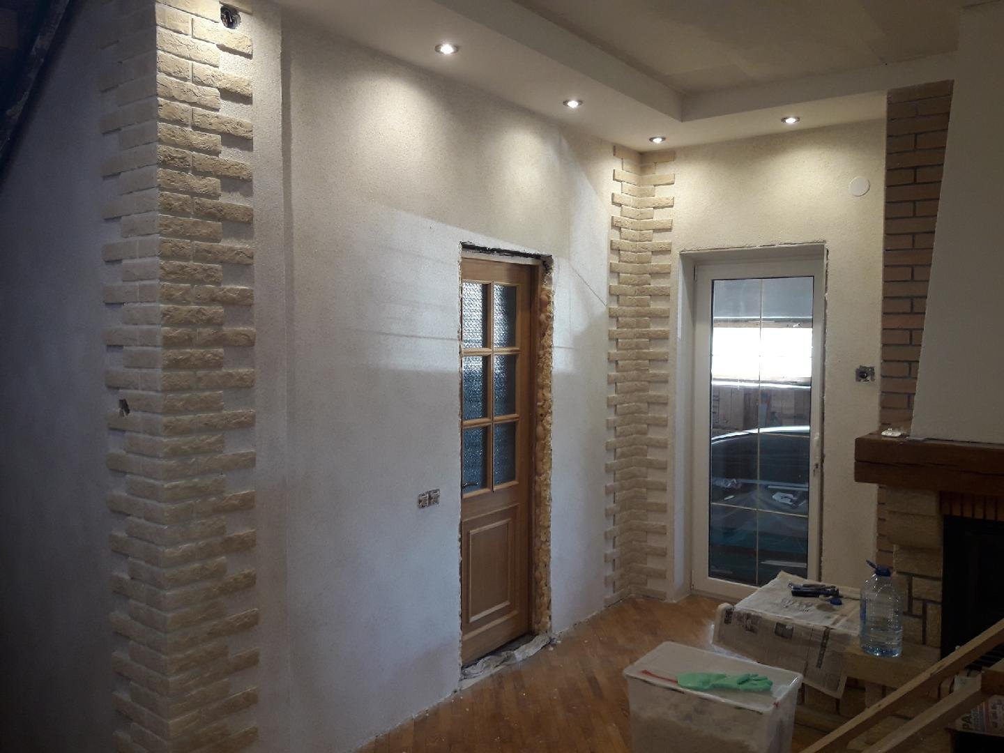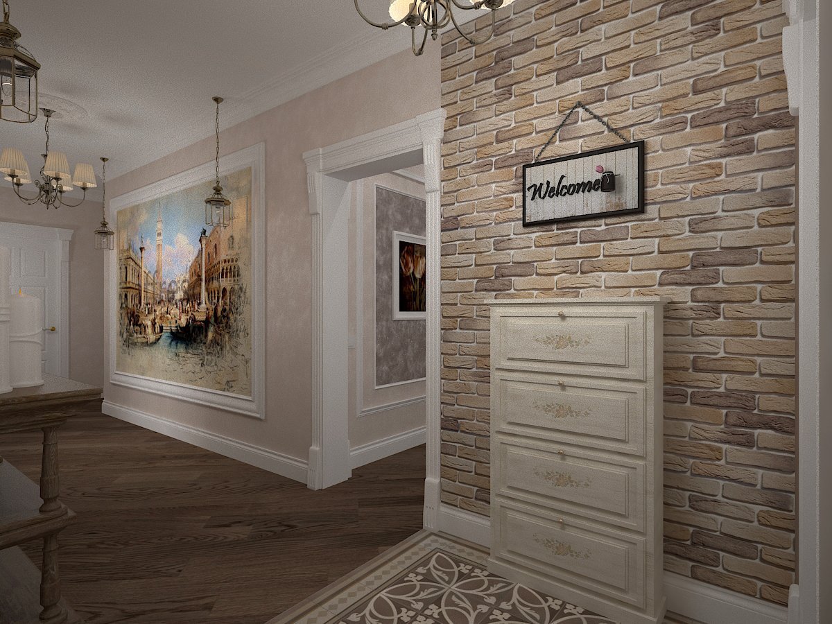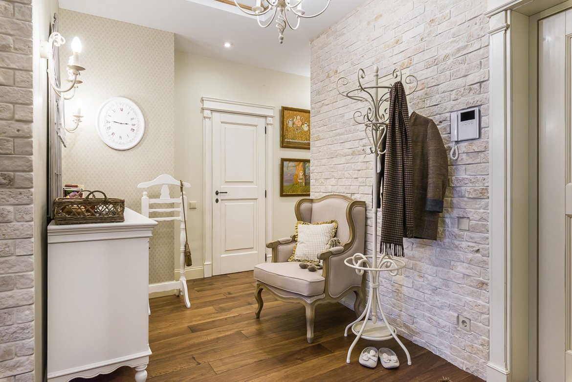 Ремонт длинного коридора гипсовый кирпич в квартире фото