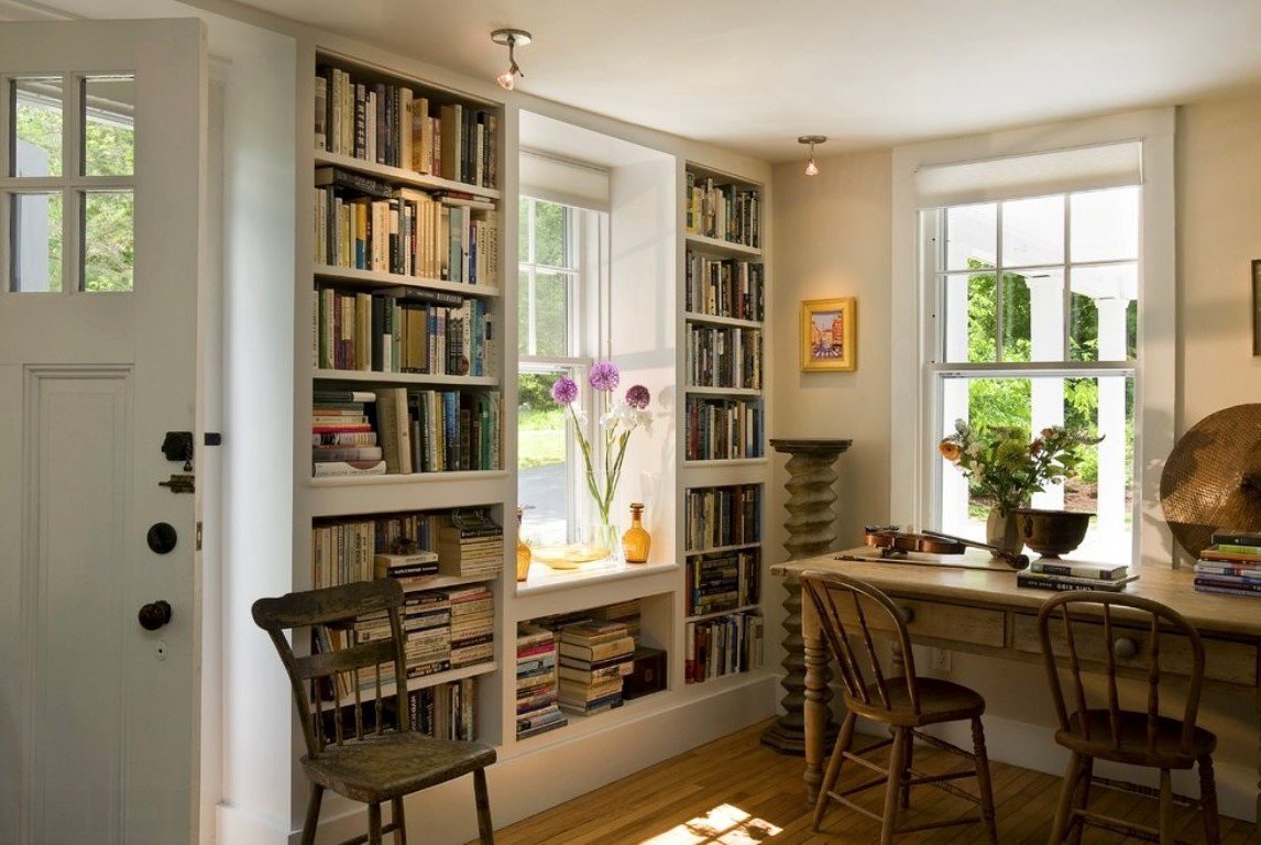 Книжный шкаф вокруг окна