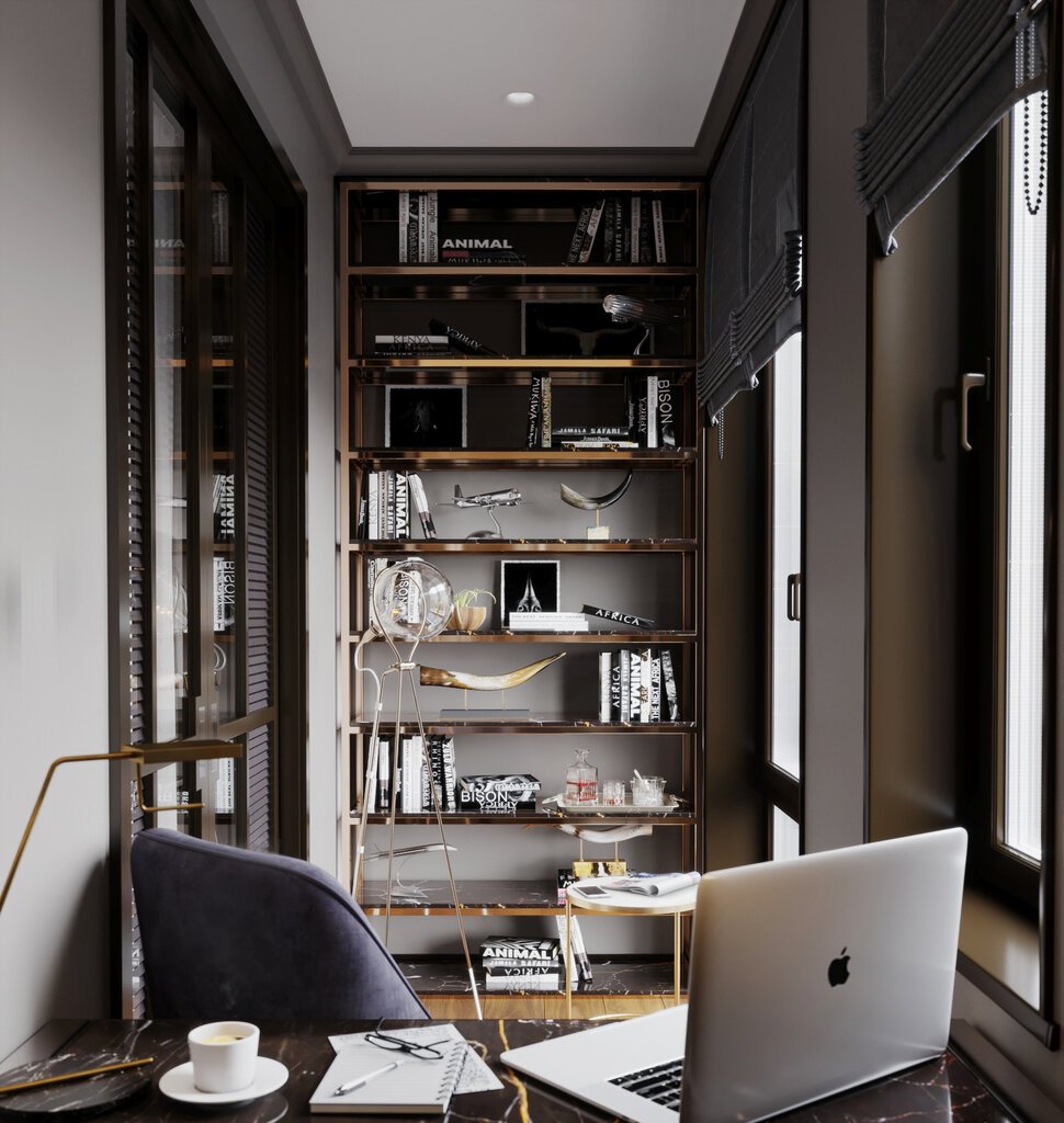 Кабинет на лоджии с библиотекой