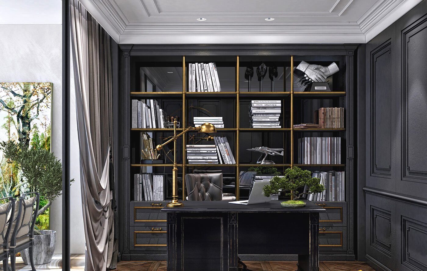 Кабинет с книжными полками