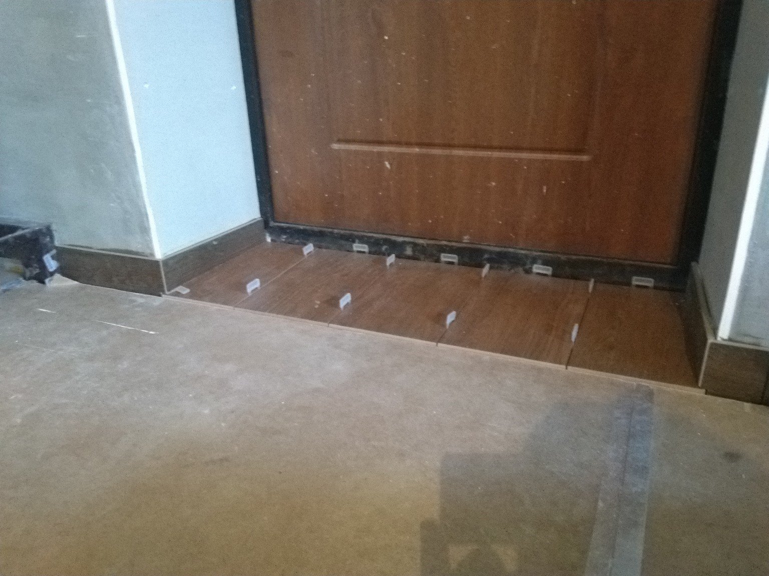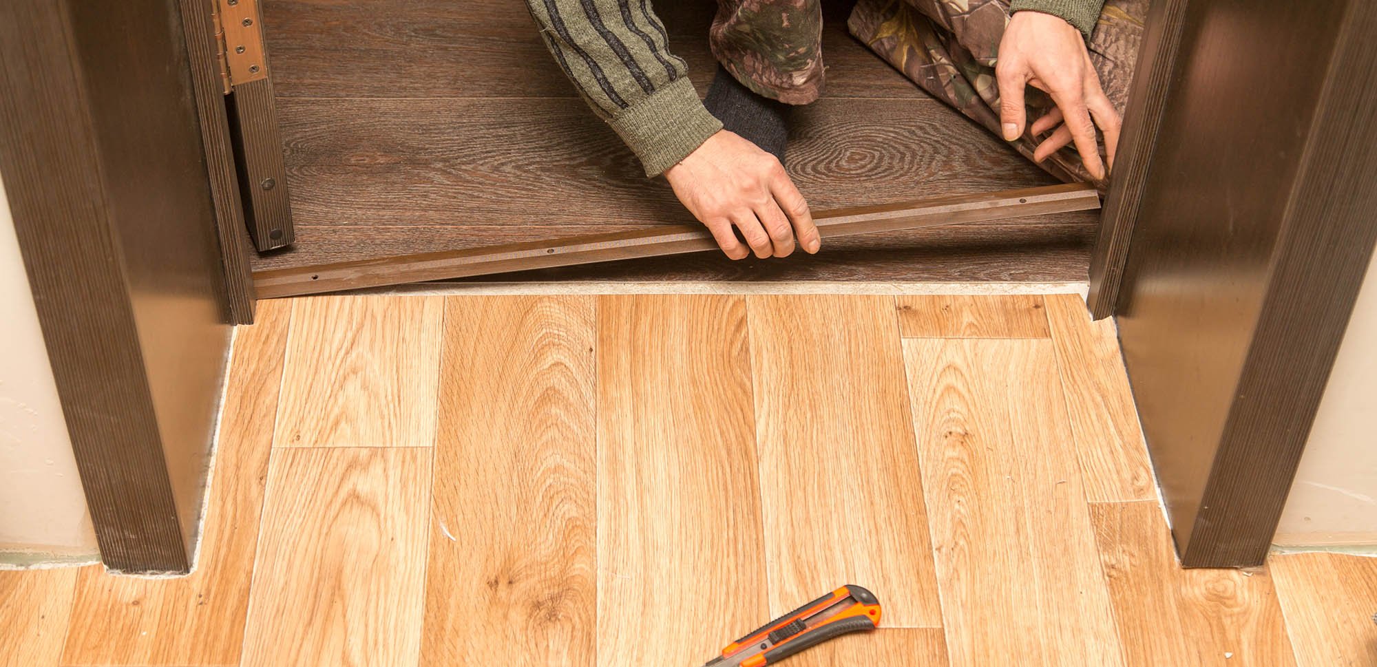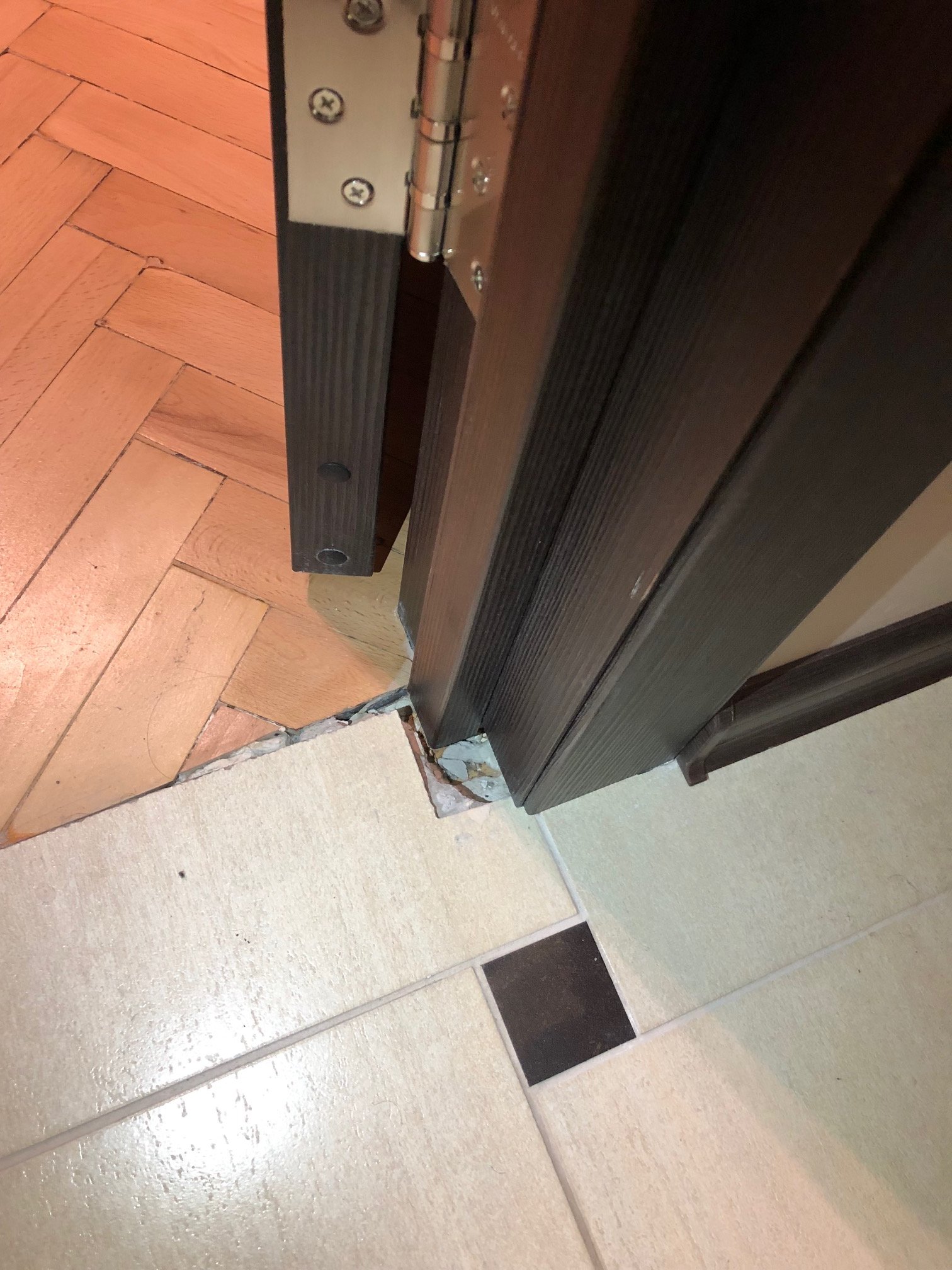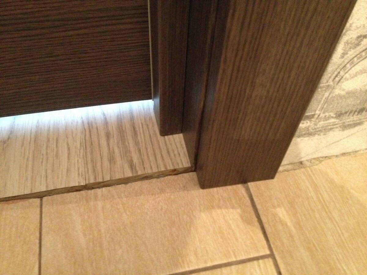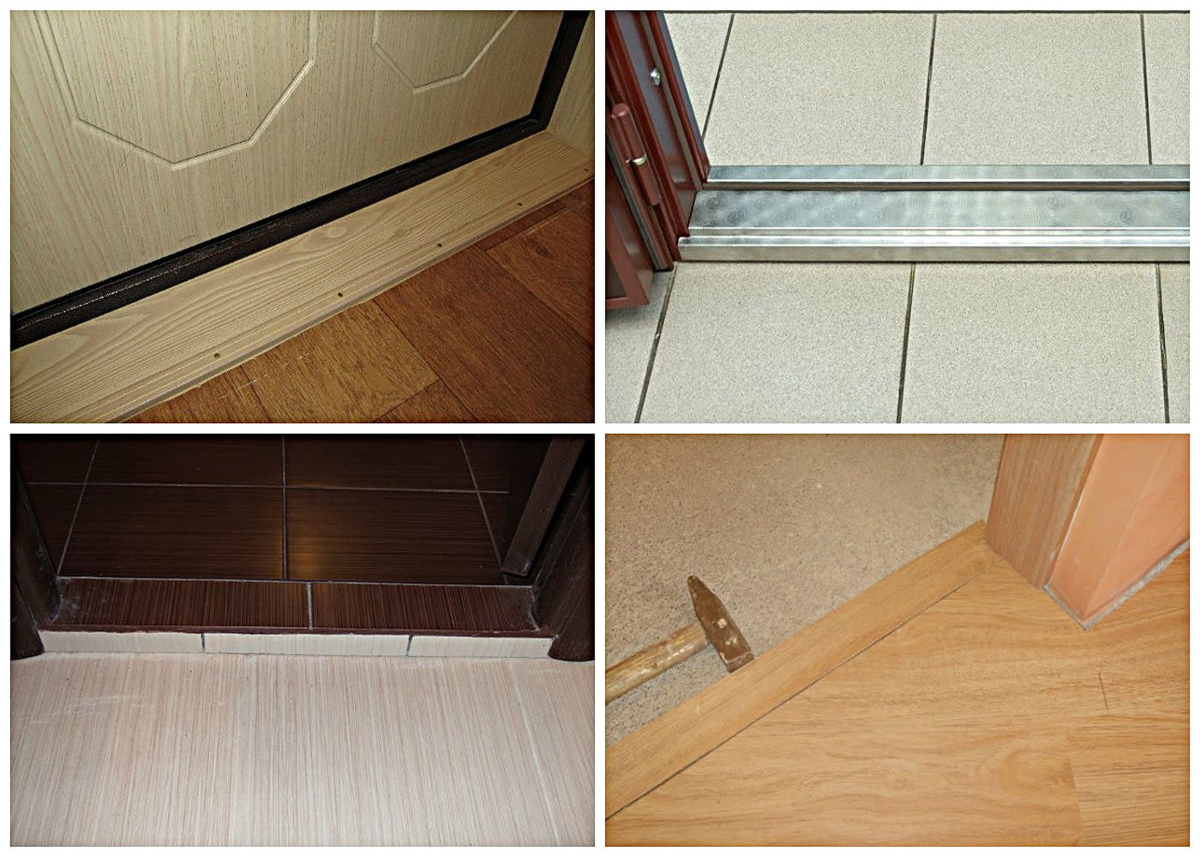 Стык плитки и ламината под дверью