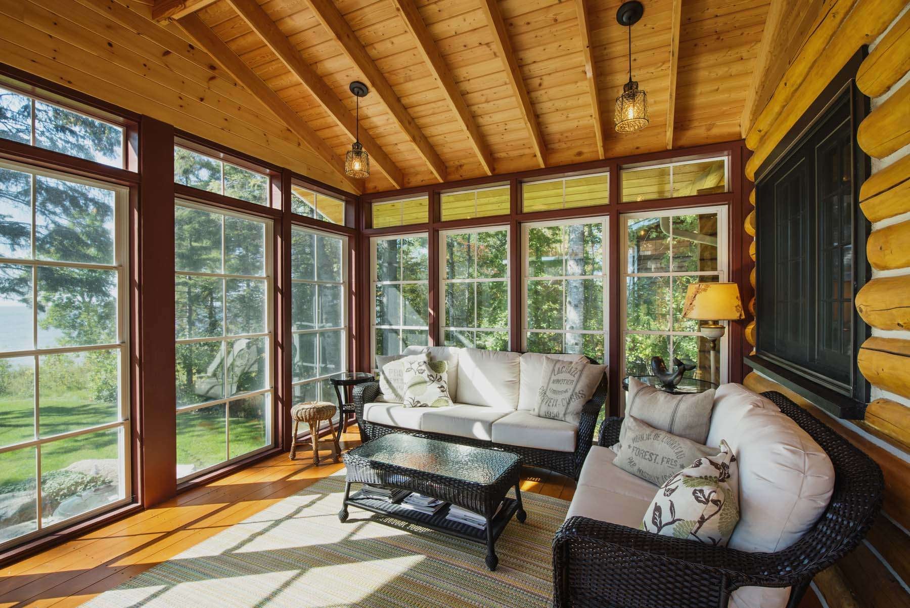 Остекленная веранда в деревянном доме
