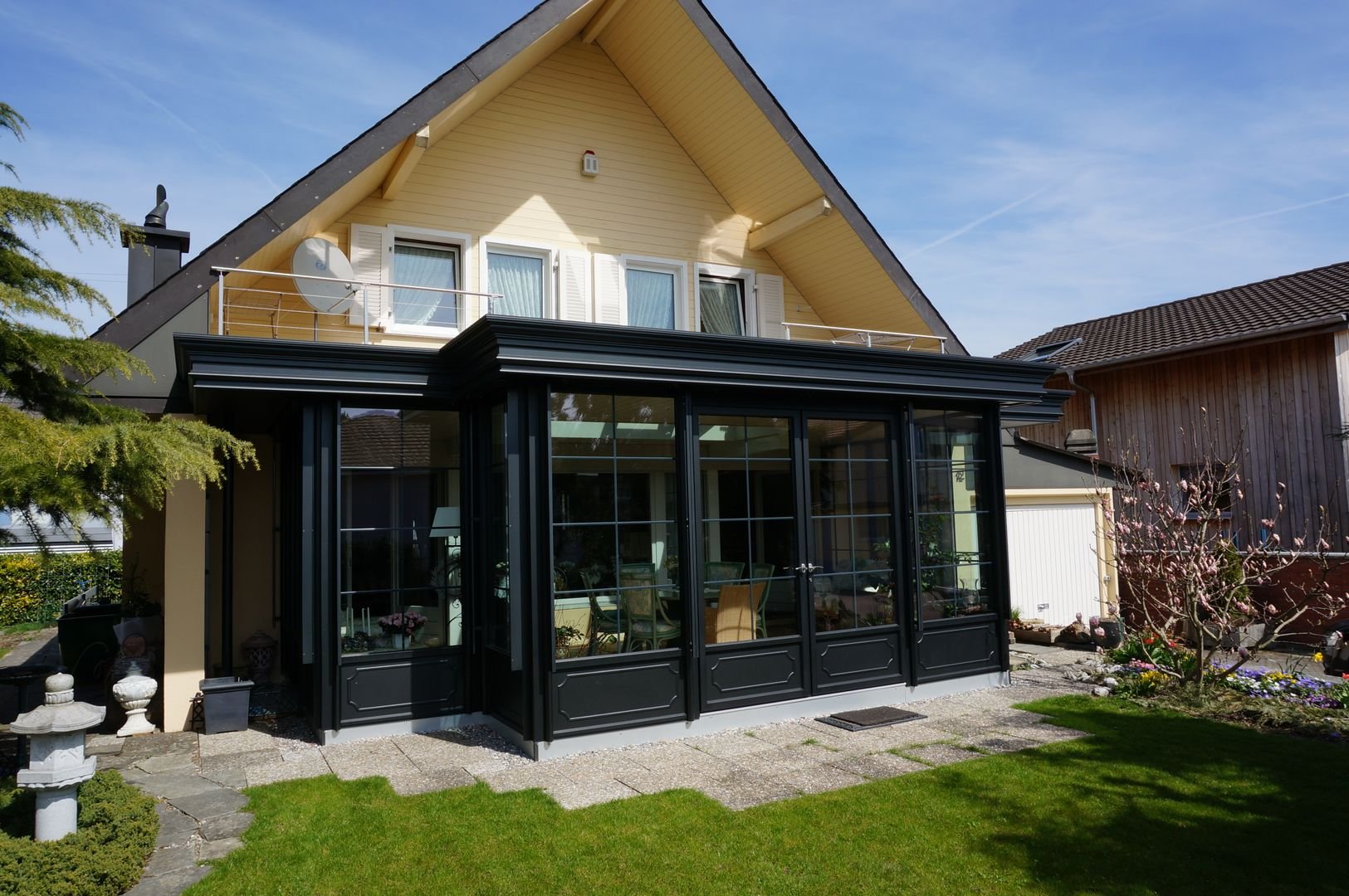 Пристройка к дому с панорамными окнами