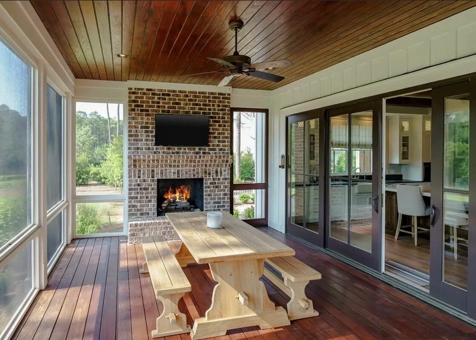 Застекленная веранда с камином
