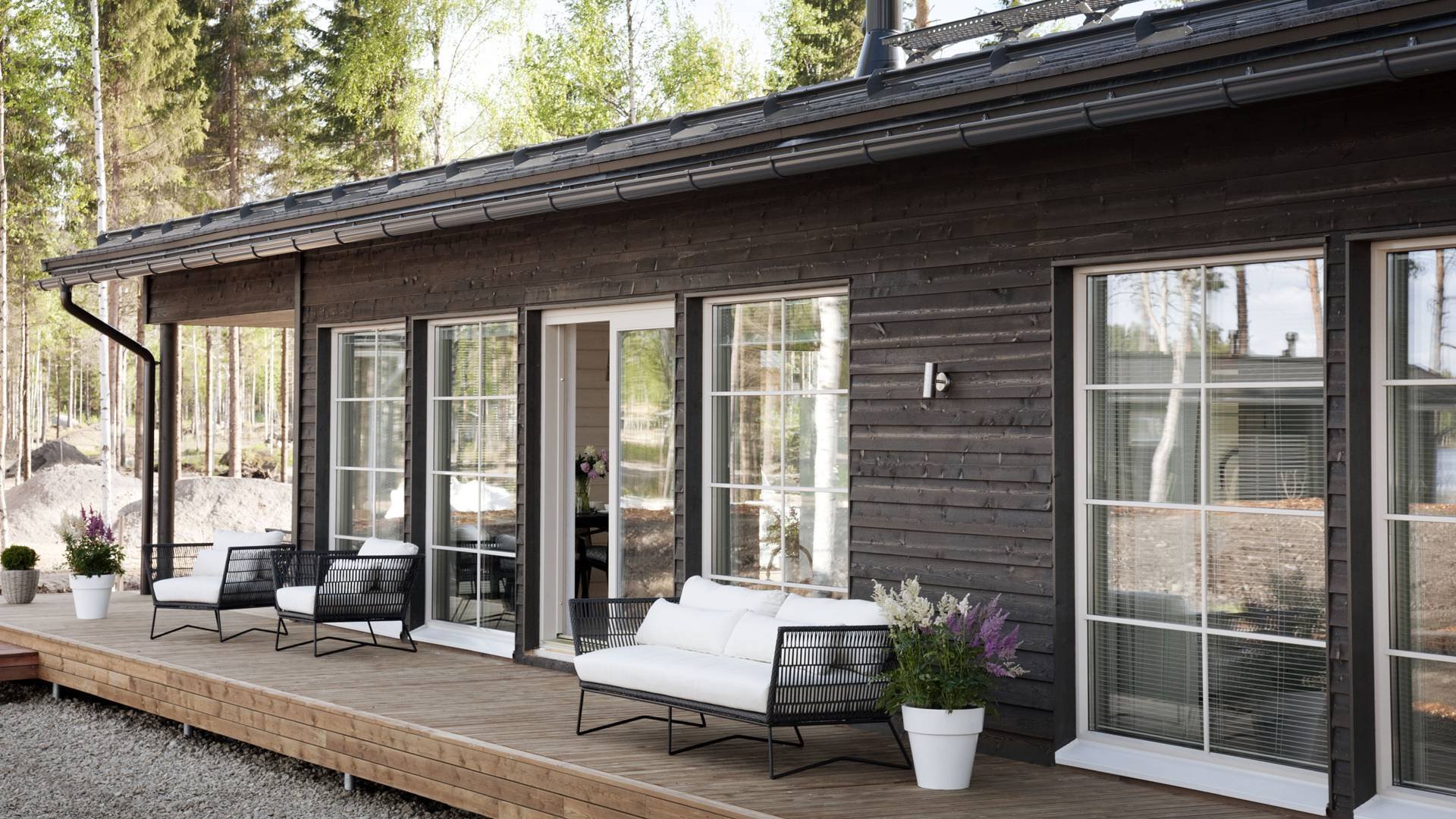 Дом с панорамными окнами и террасой