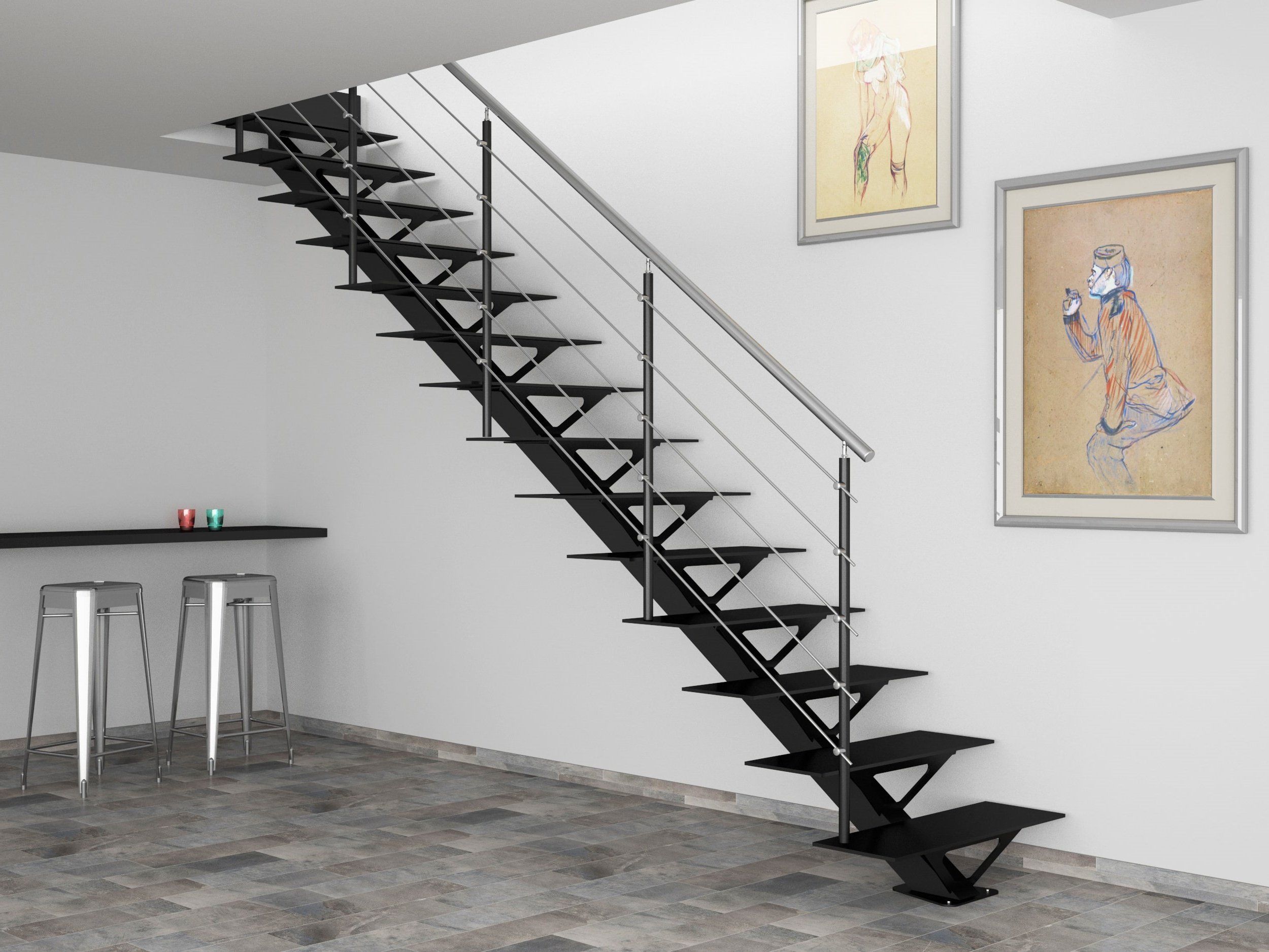 Лестница на металлическом косоуре чертеж