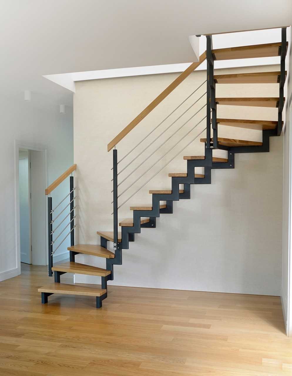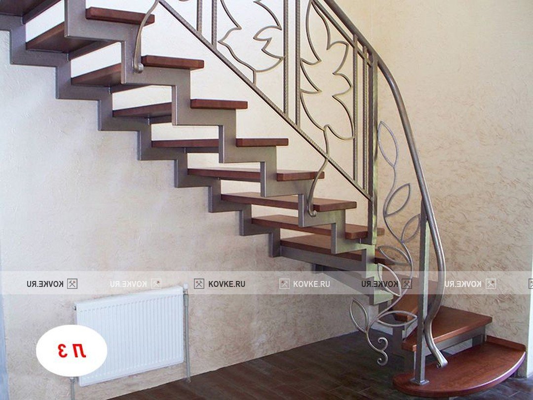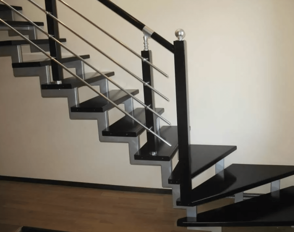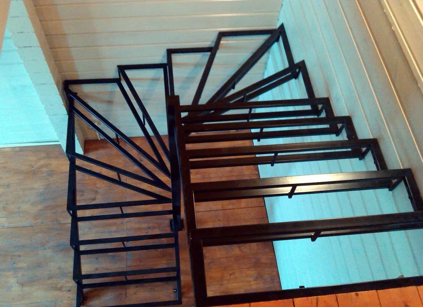 Лестница из профильной трубы на второй этаж с забежными ступенями