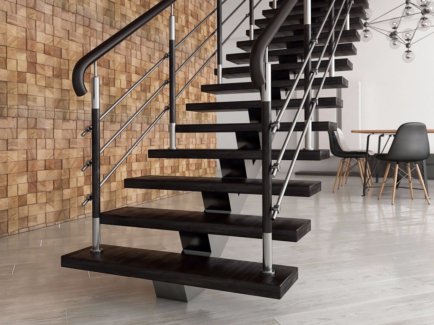 Одномаршевая лестница на тетиве