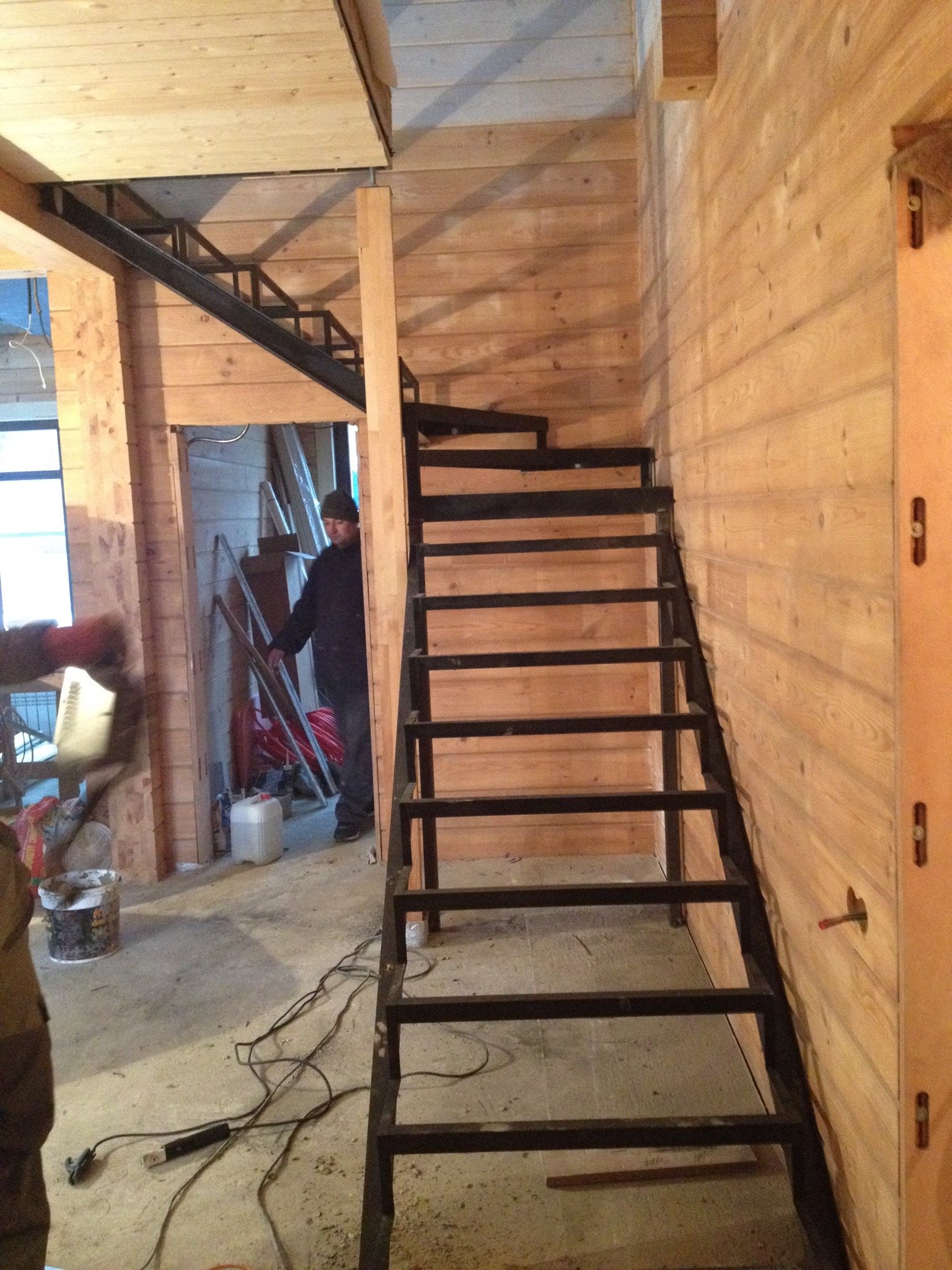 Металлическая лестница в деревянном доме