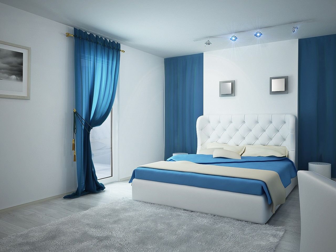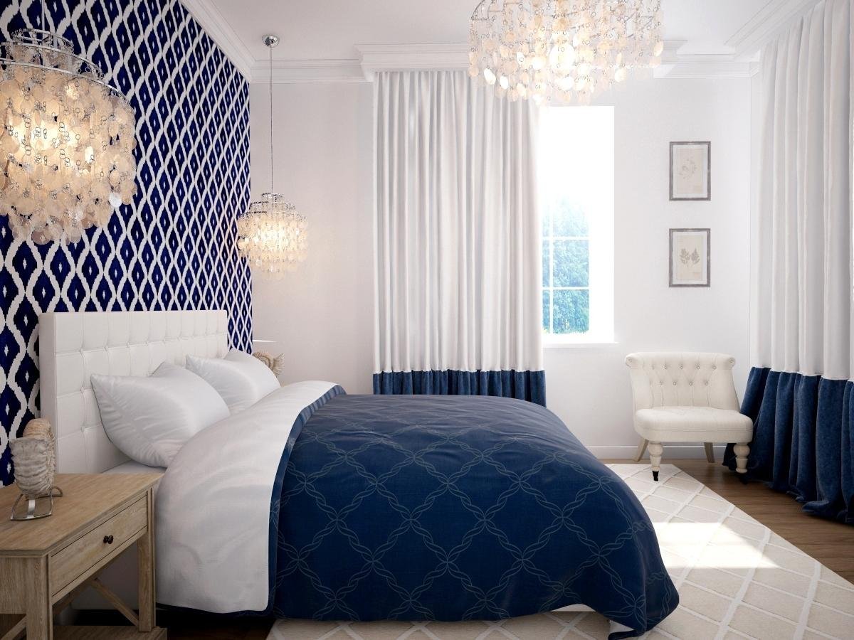 Спальня в сине белых тонах