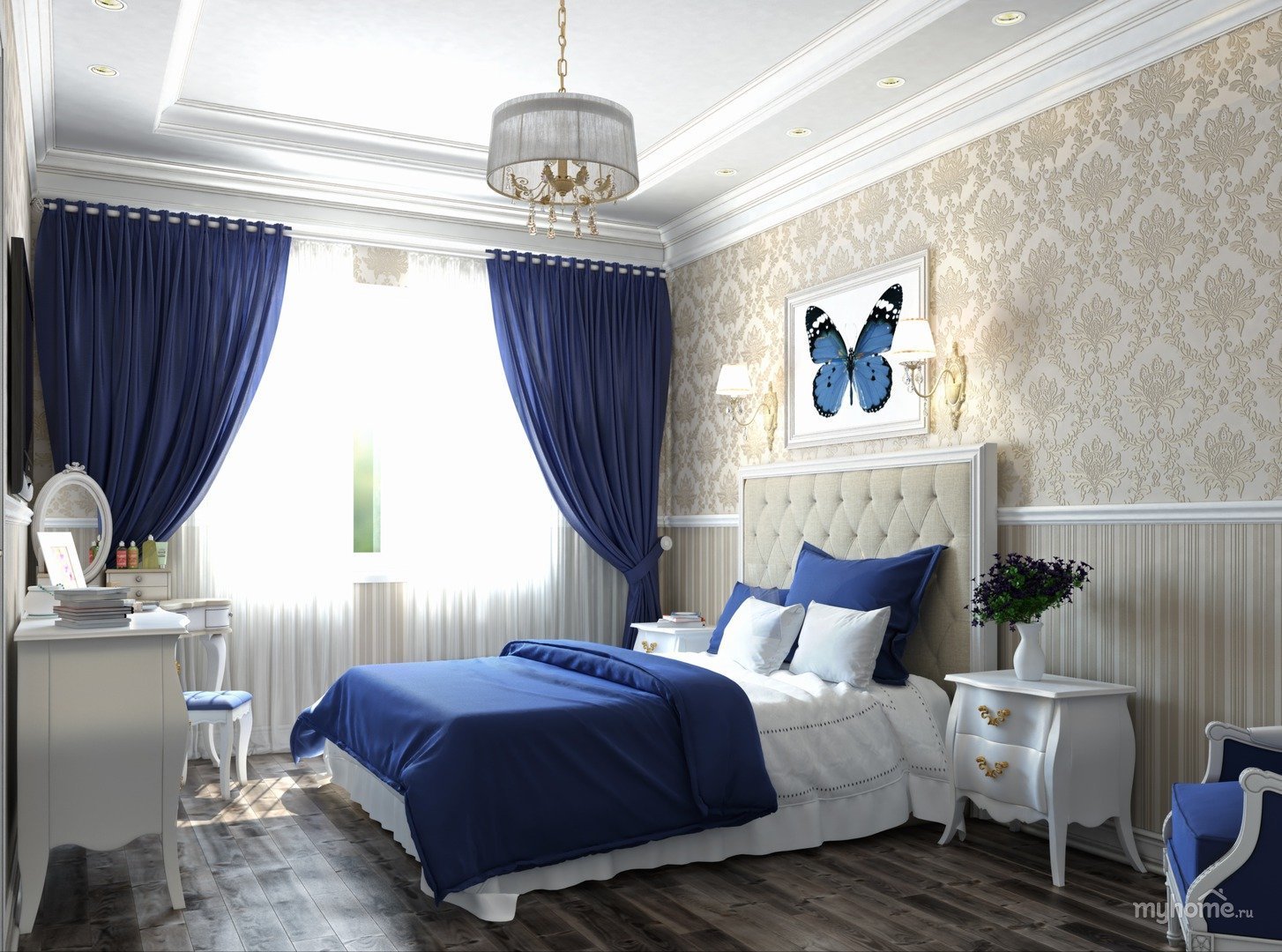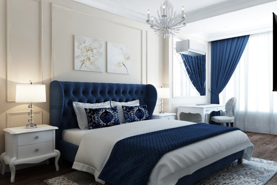 Спальни в синих тонах в стиле Неоклассика