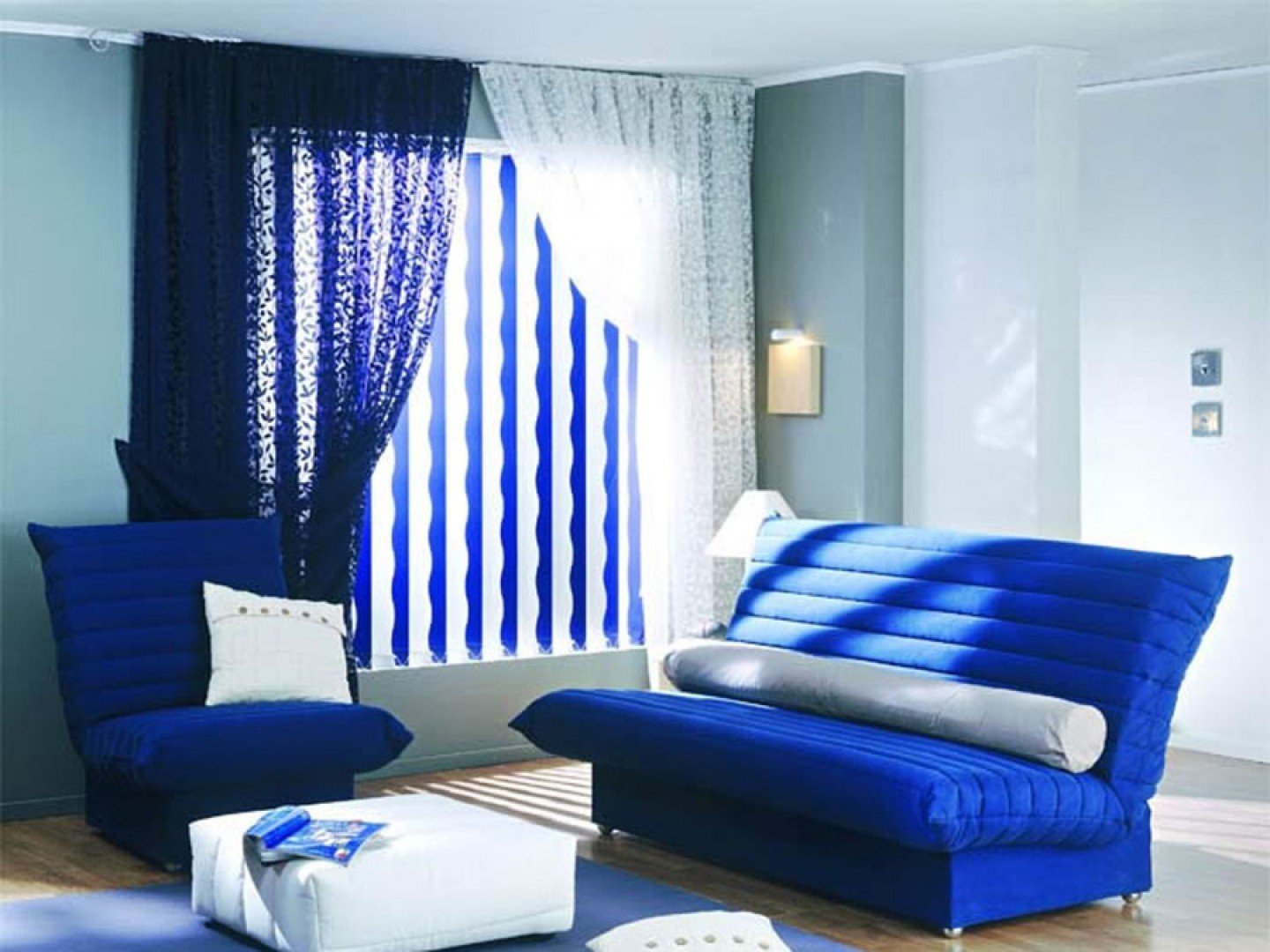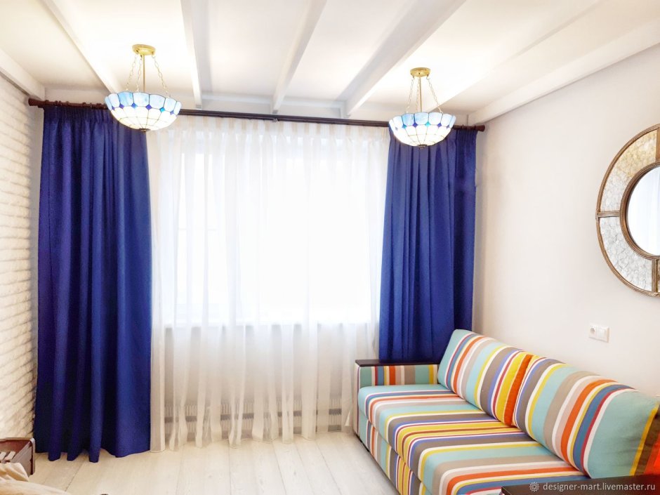 Синие шторы в интерьере
