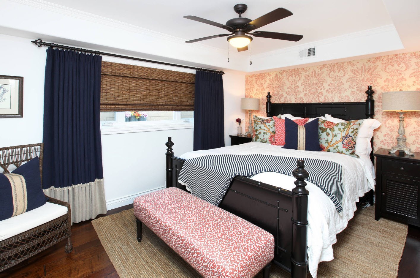 Жалюзи темно-синие в интерьере спальни