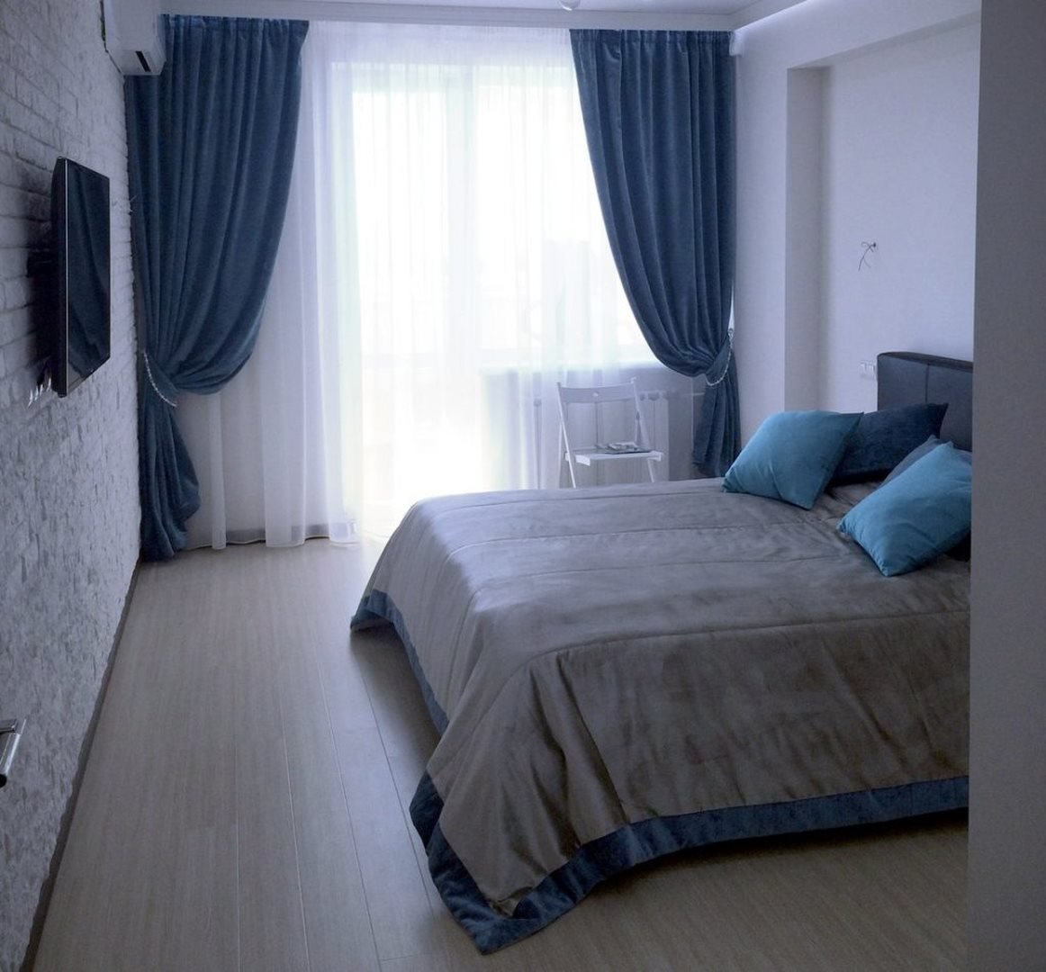 Голубые шторы в спальне