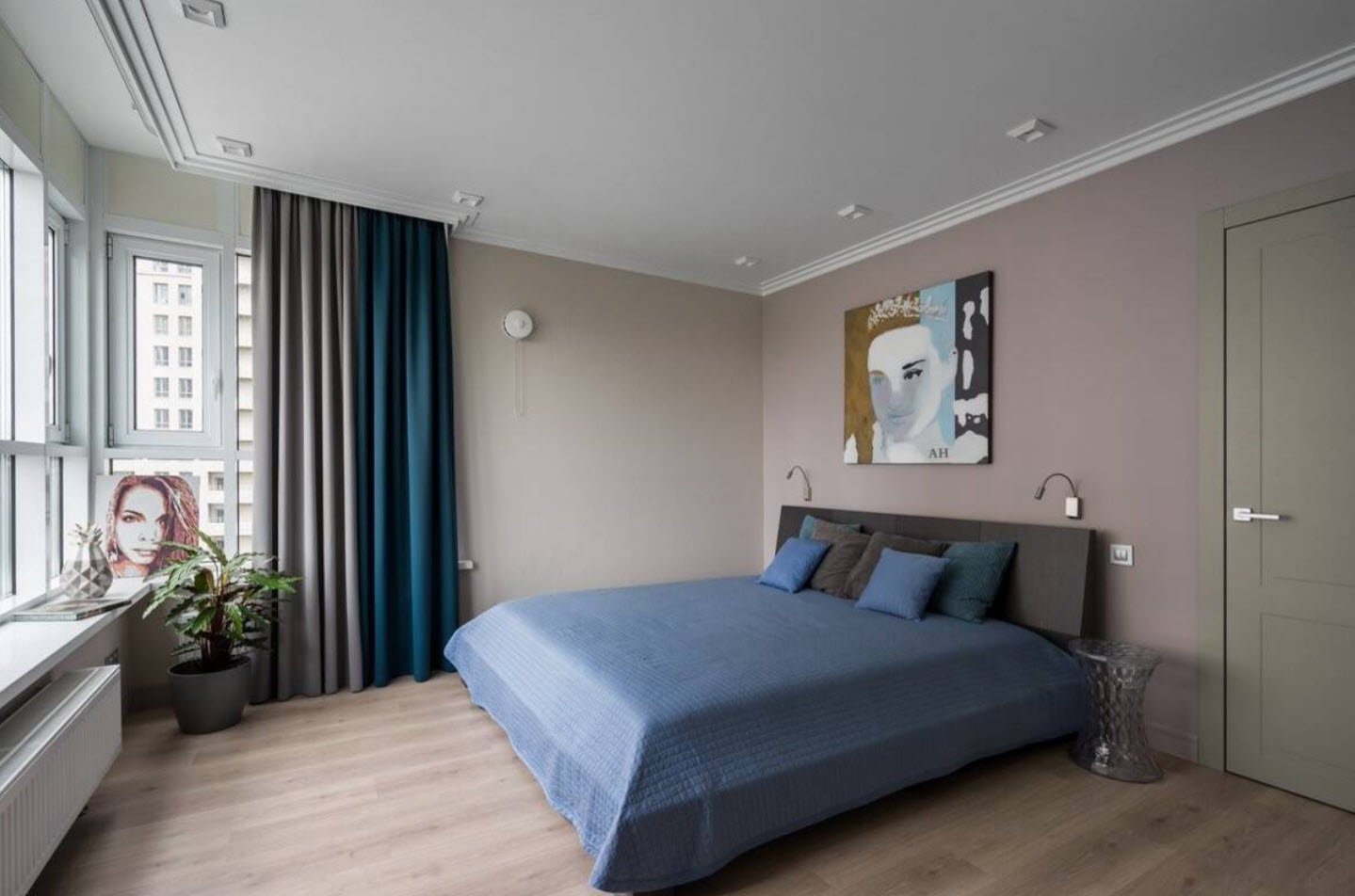 Сине бежевая спальня