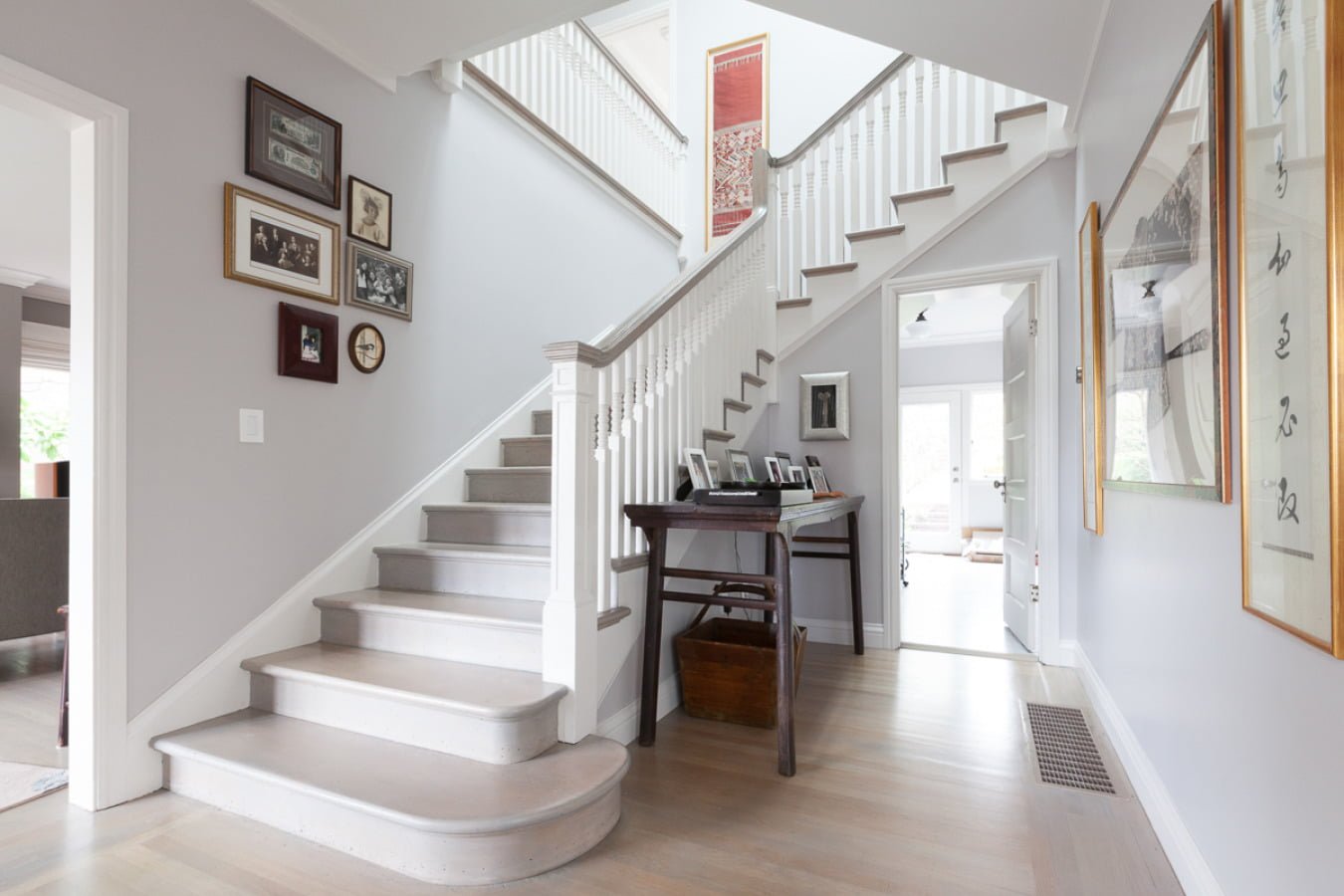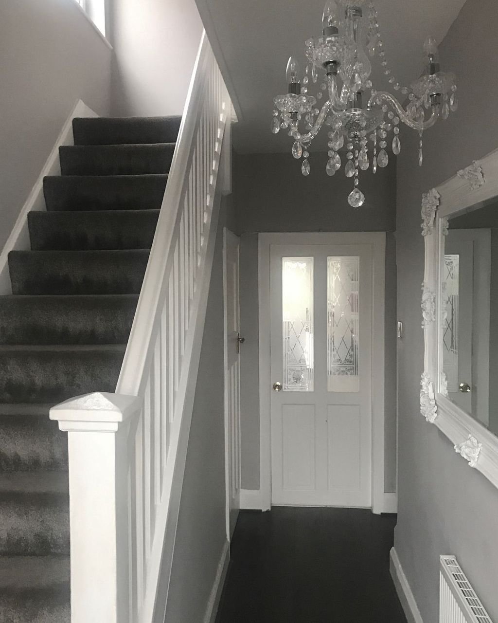 Прихожая с лестницей в серых тонах