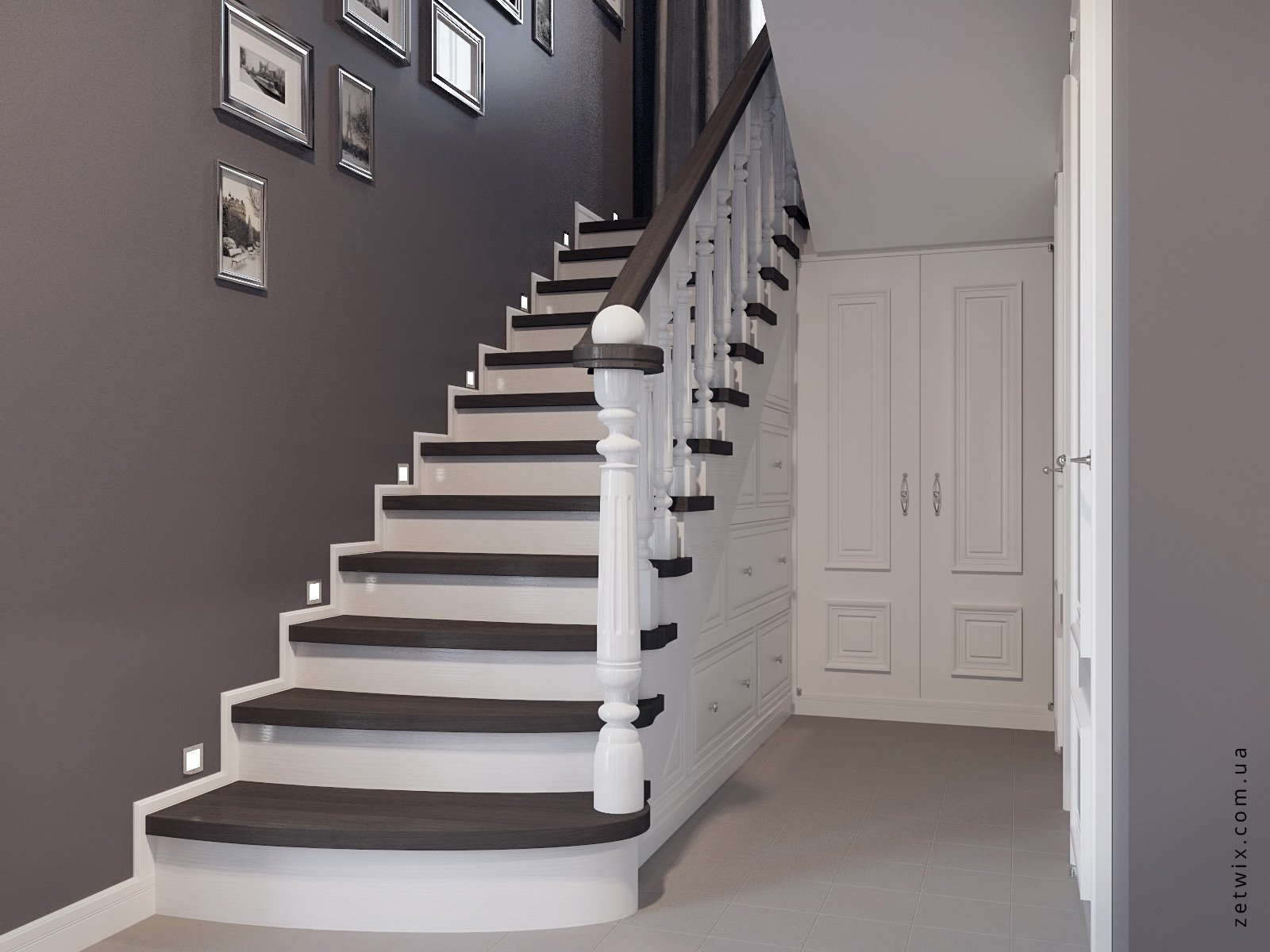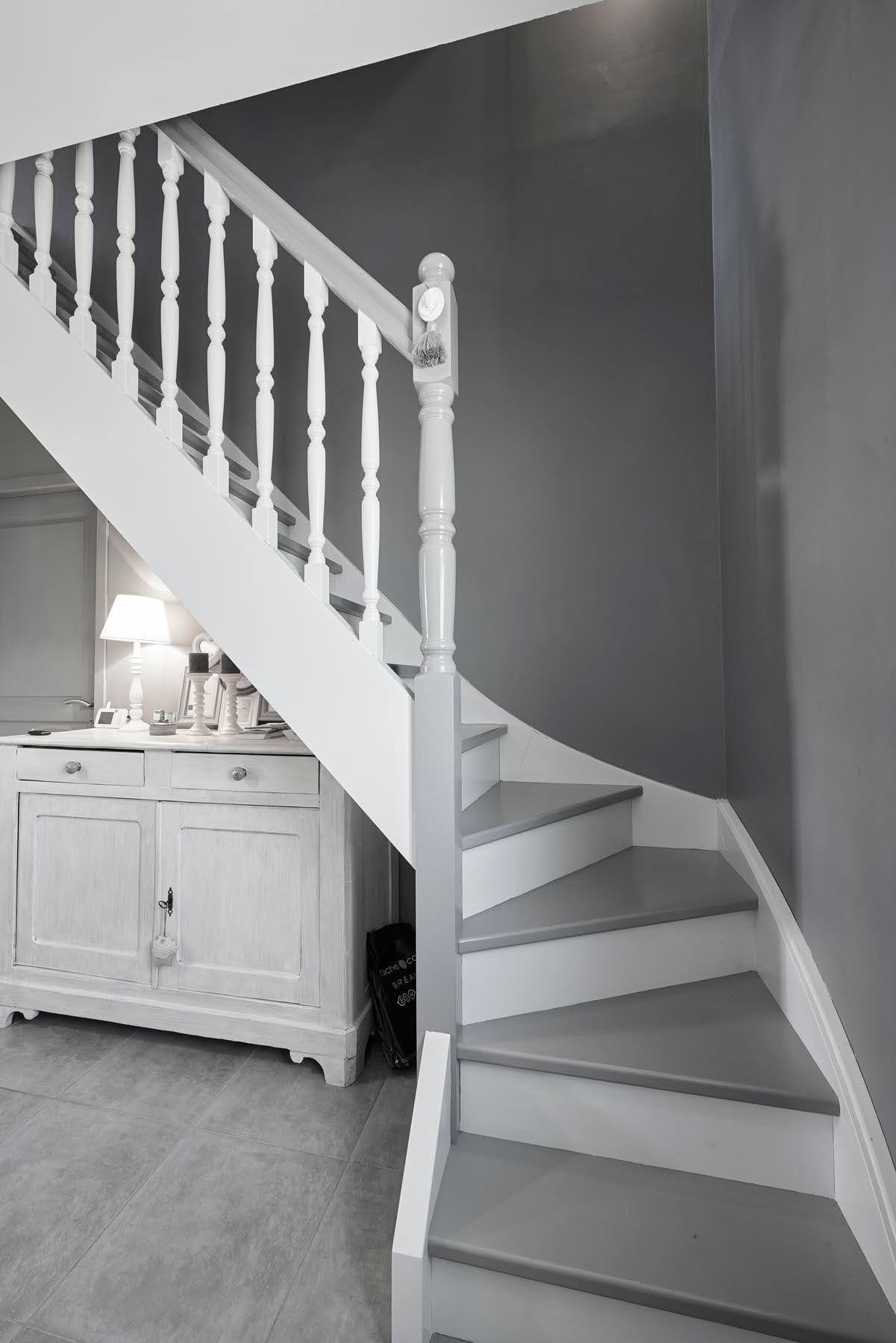 Лестница серая с белым