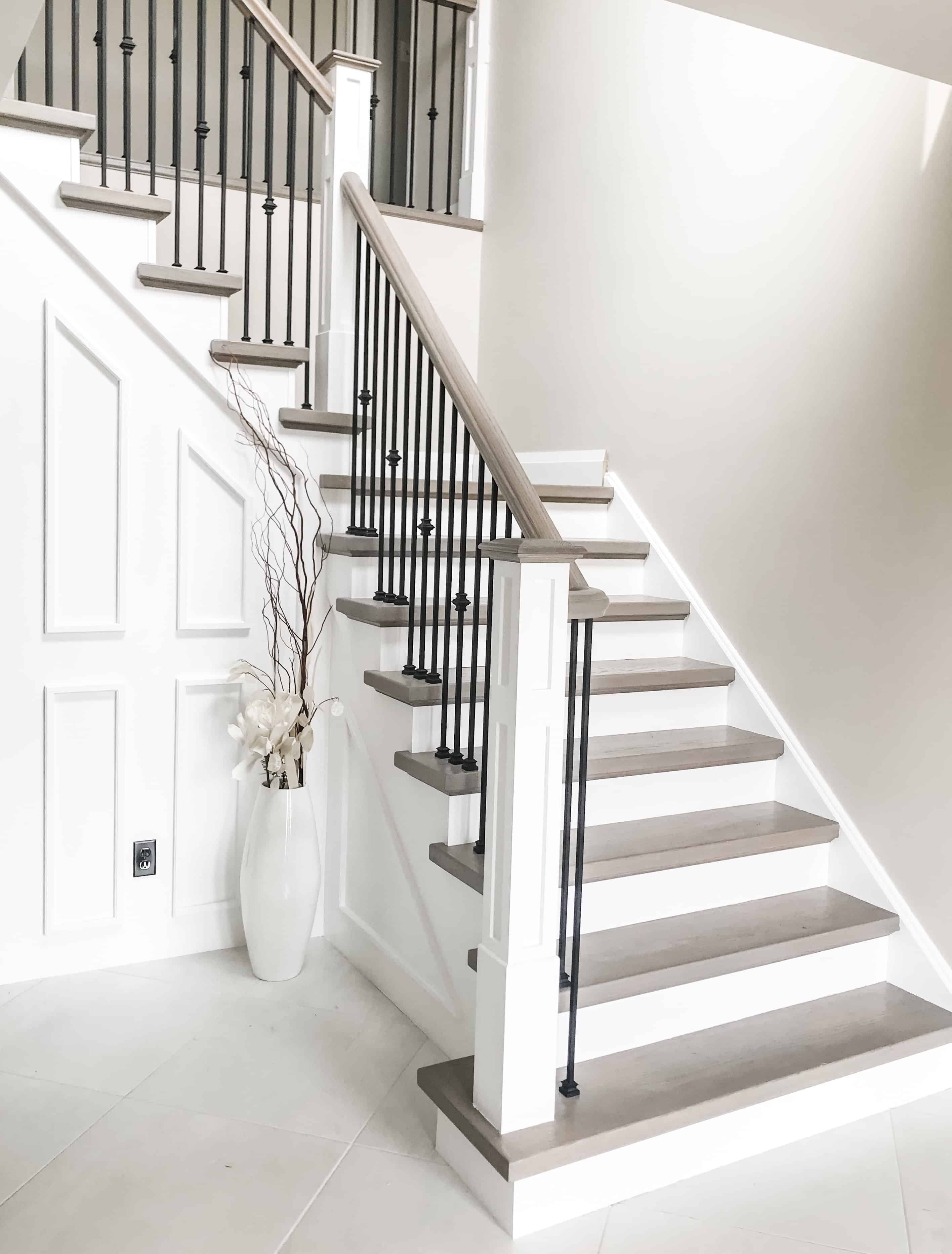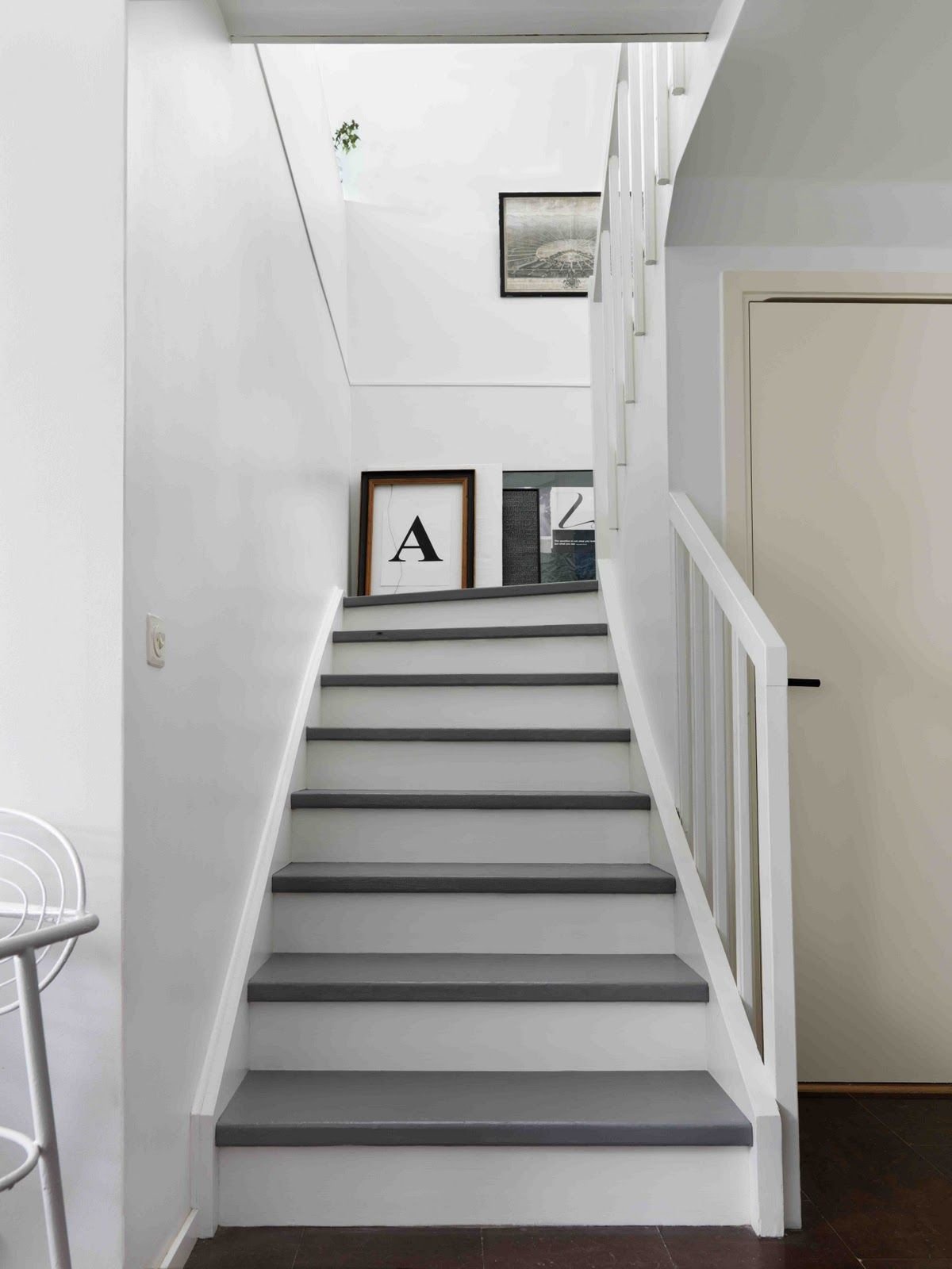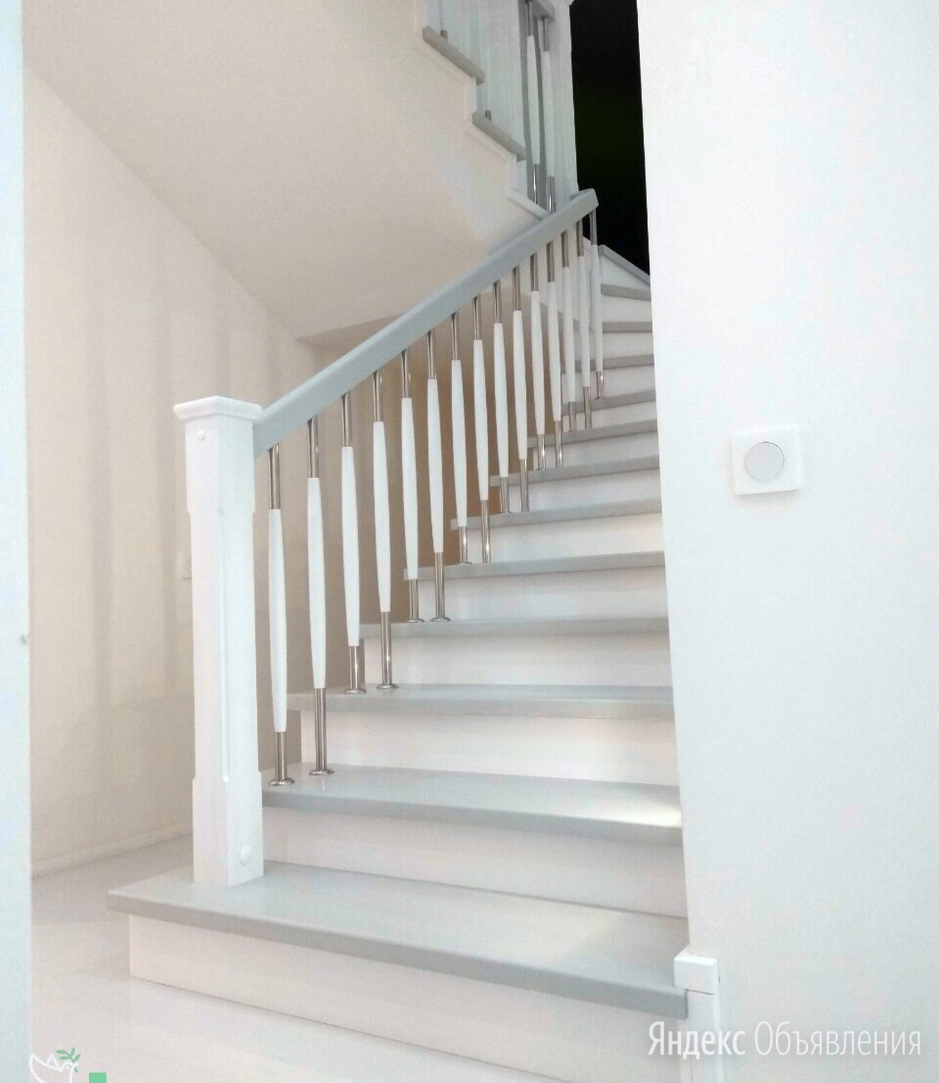 Белая лестница с серыми ступенями