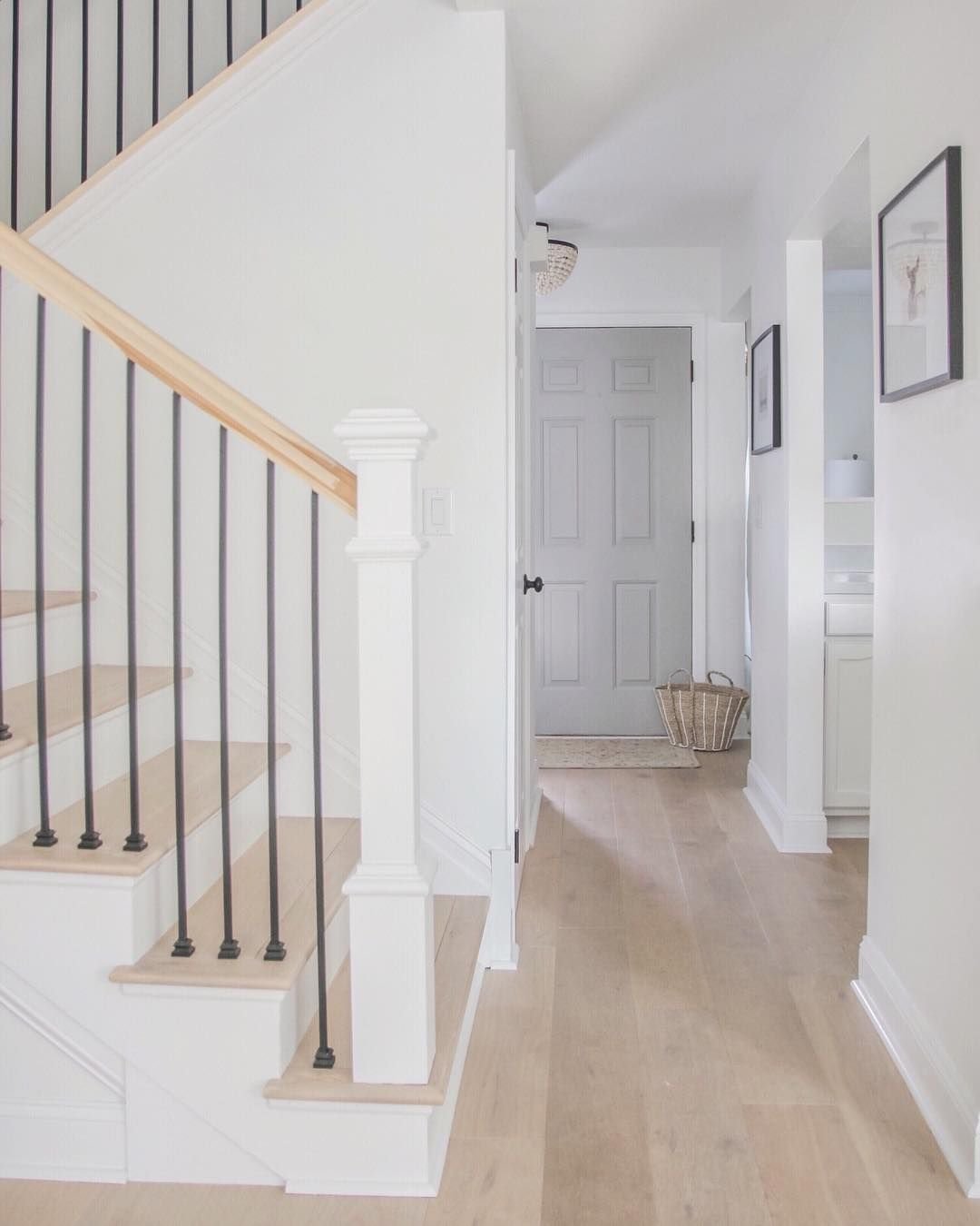 Белая лестница серый пол