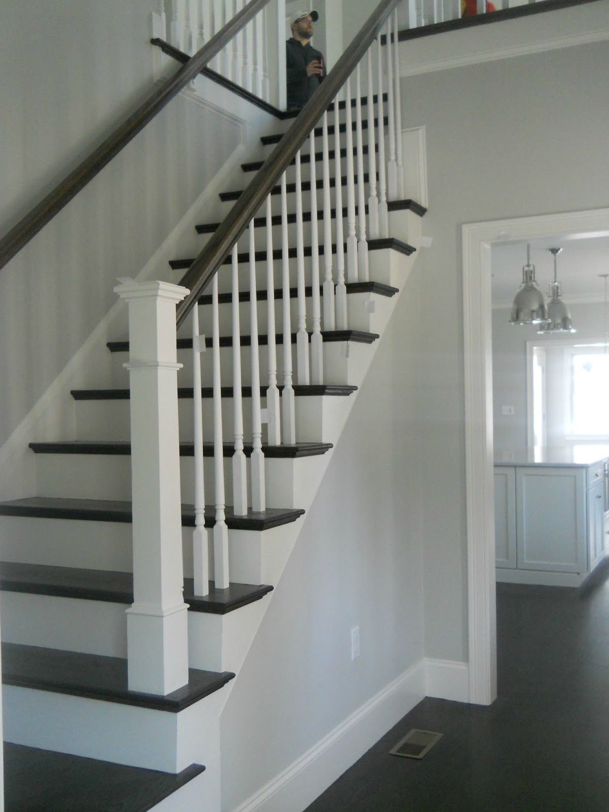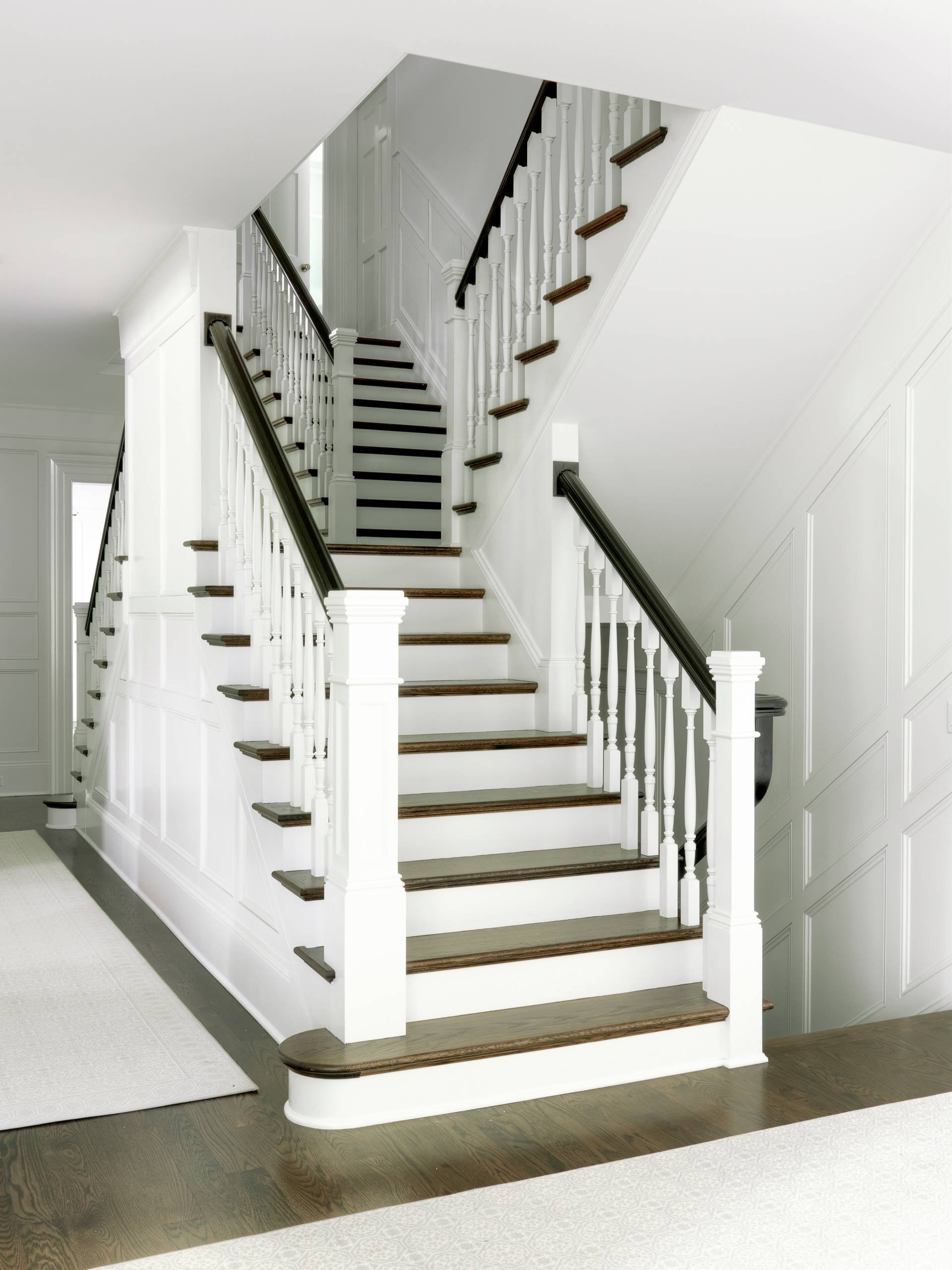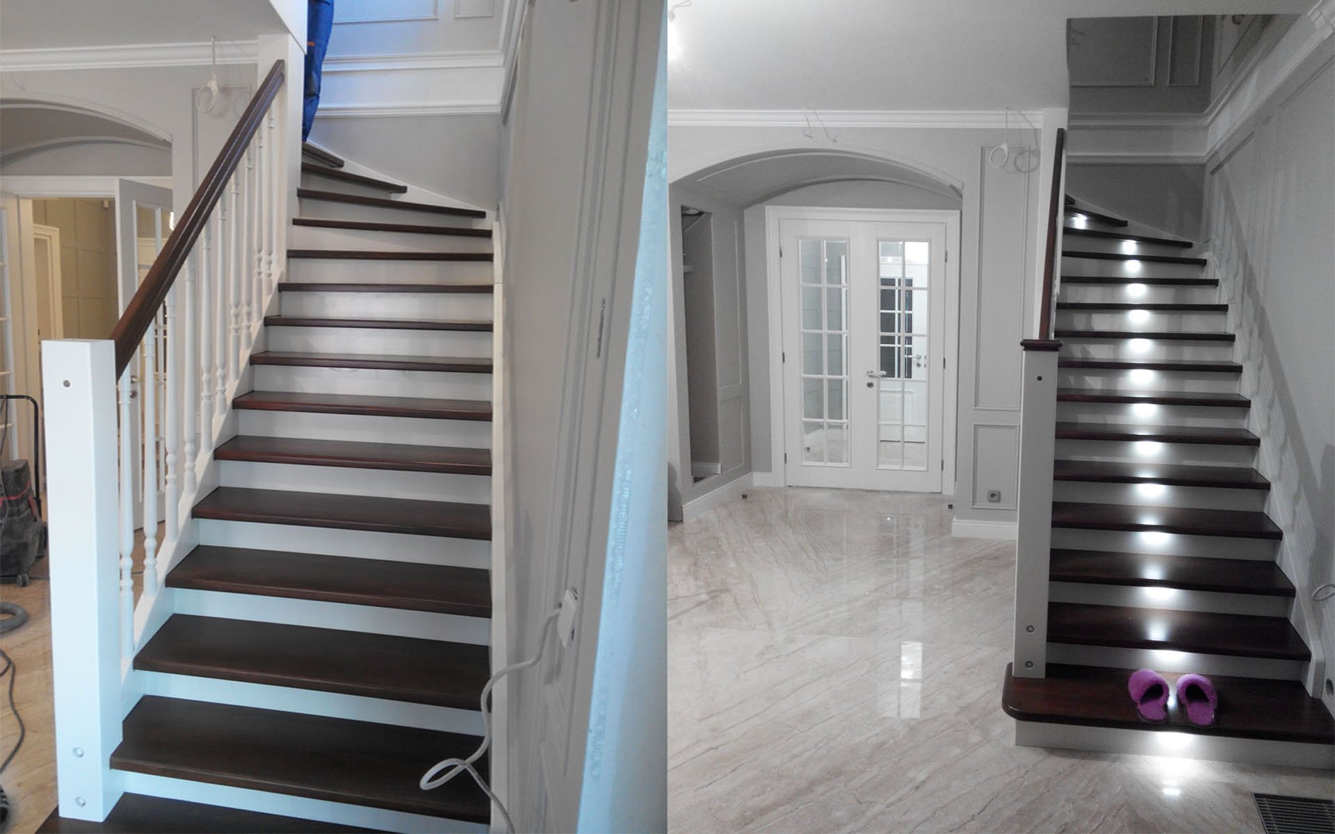 Лестница белые ступени темные подступенки