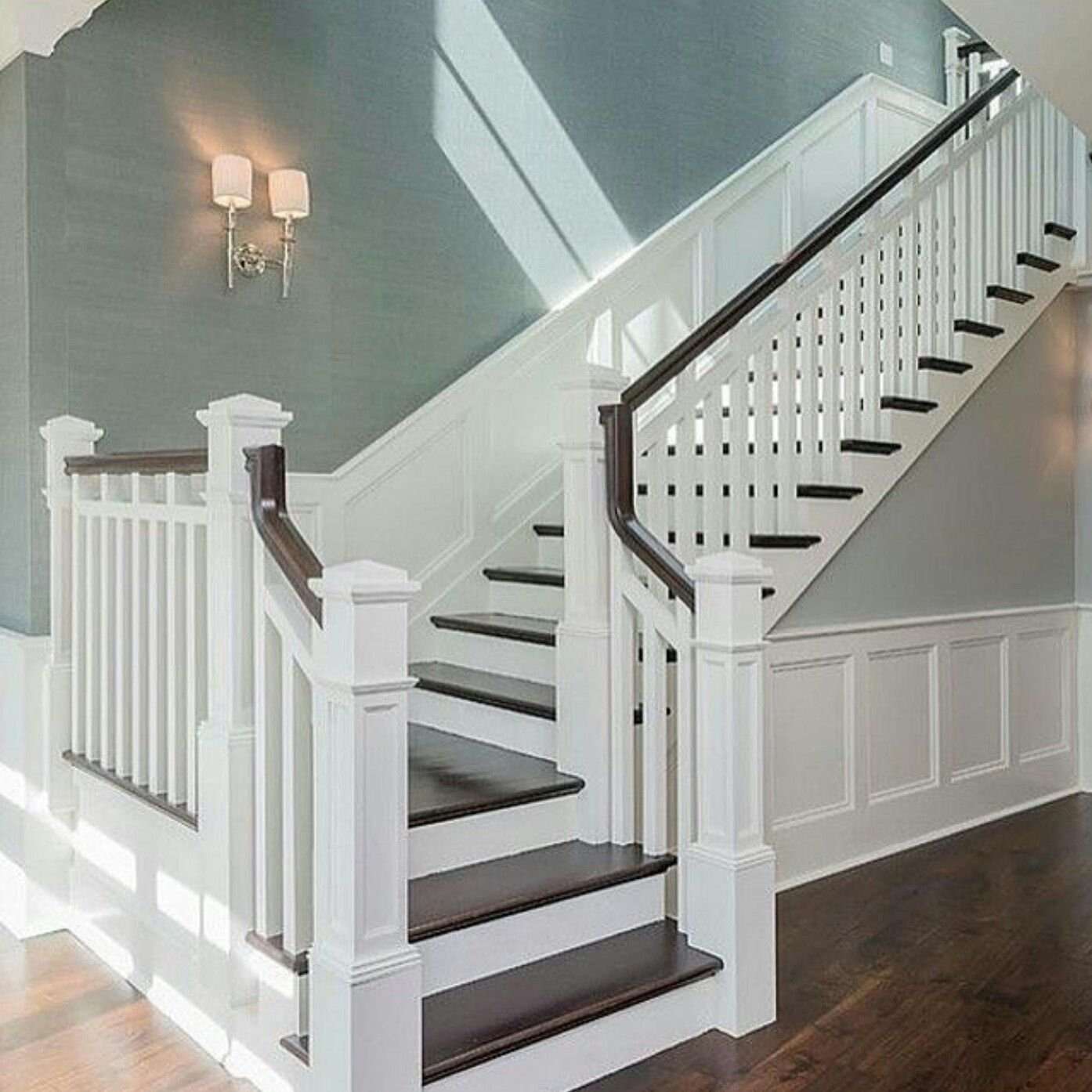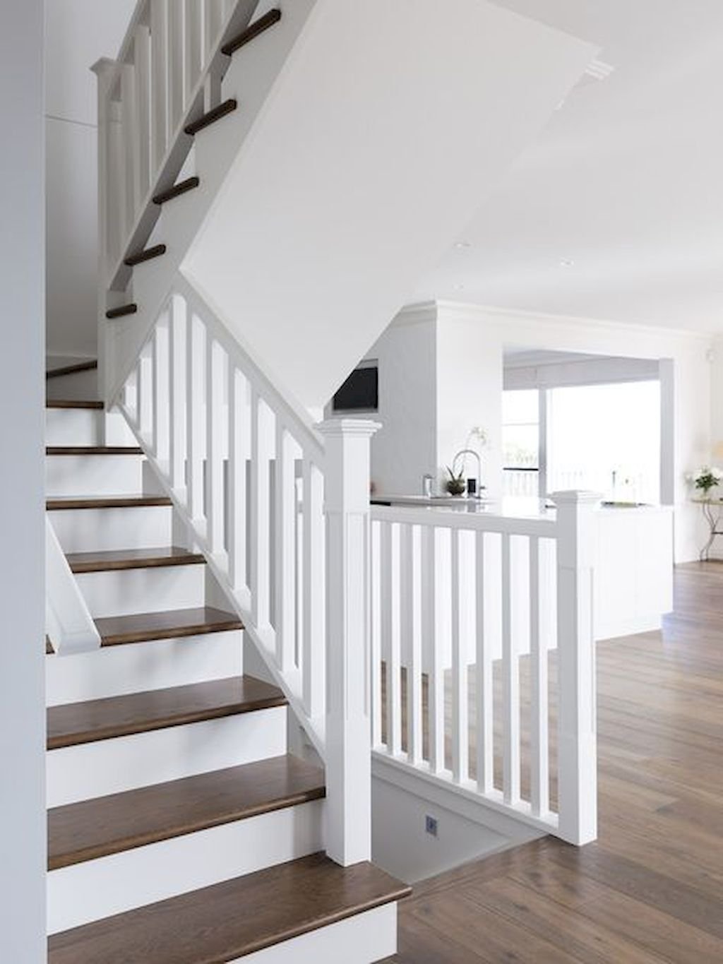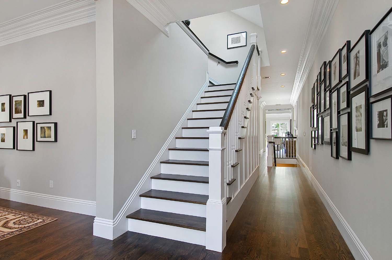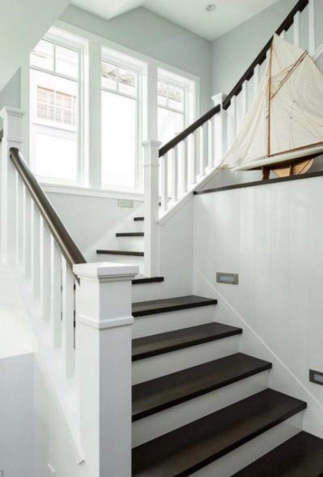 Лестница белые ступени темные подступенки