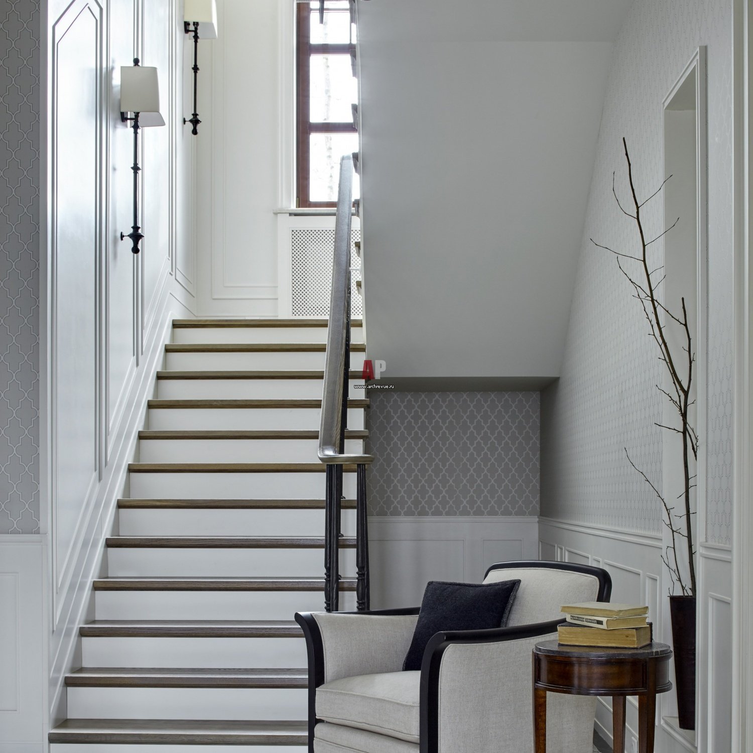 Белая лестница в интерьере