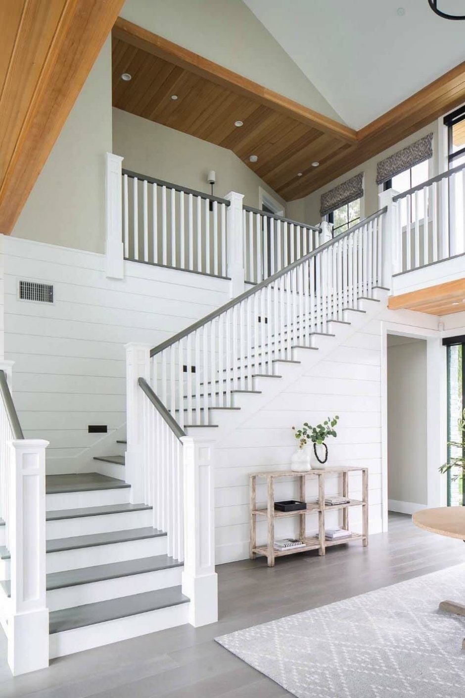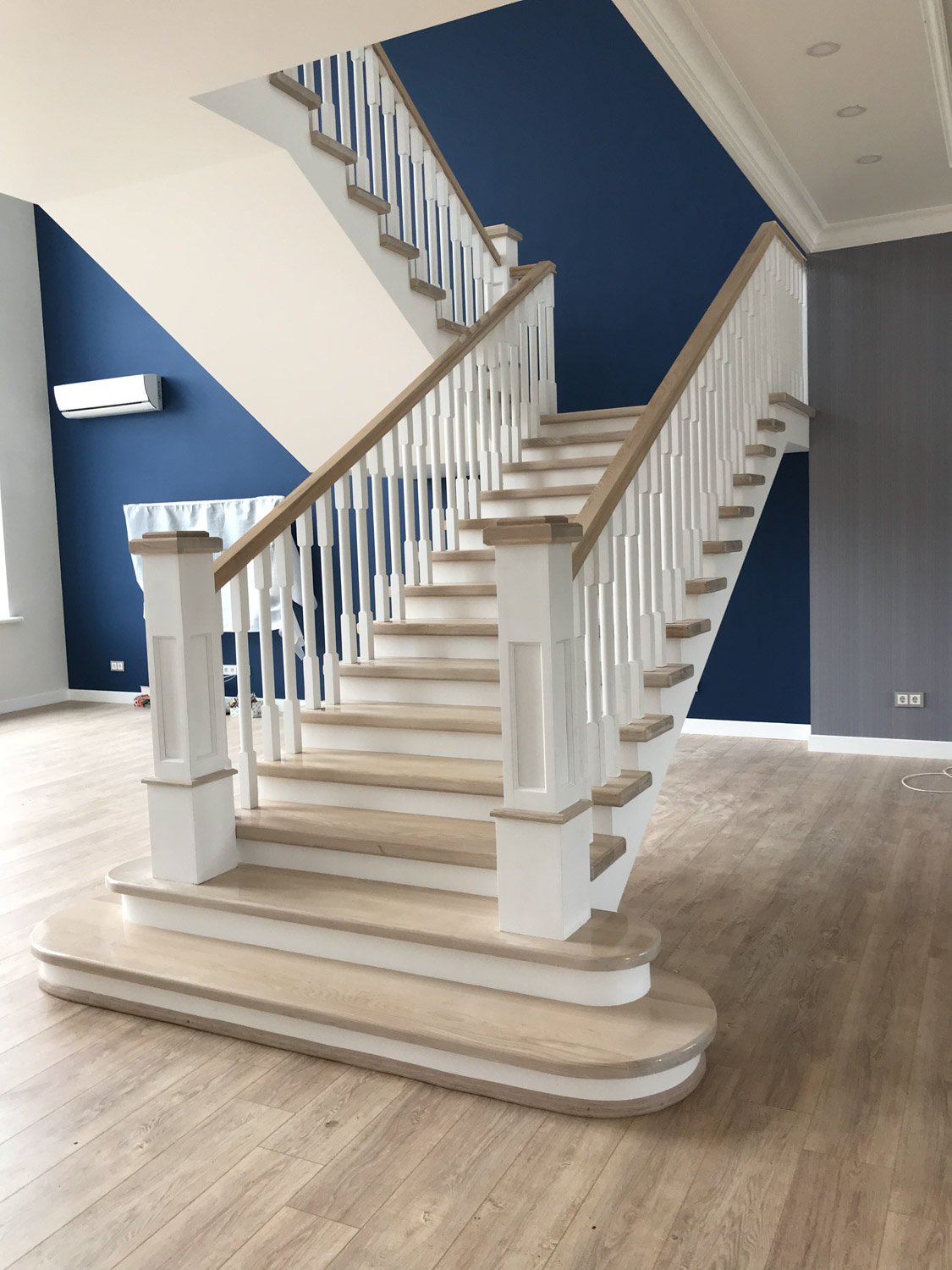 Лестница серо белая деревянная