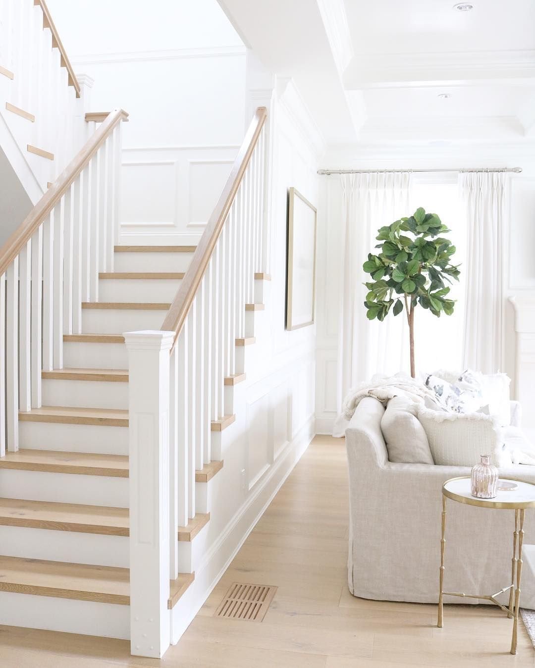 Белая деревянная лестница в интерьере