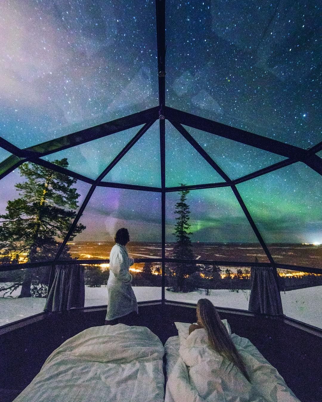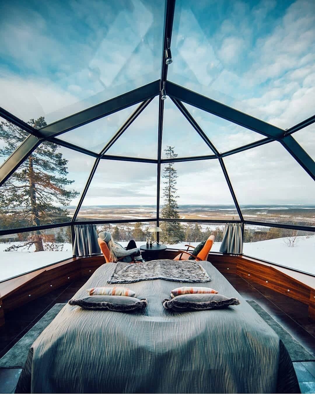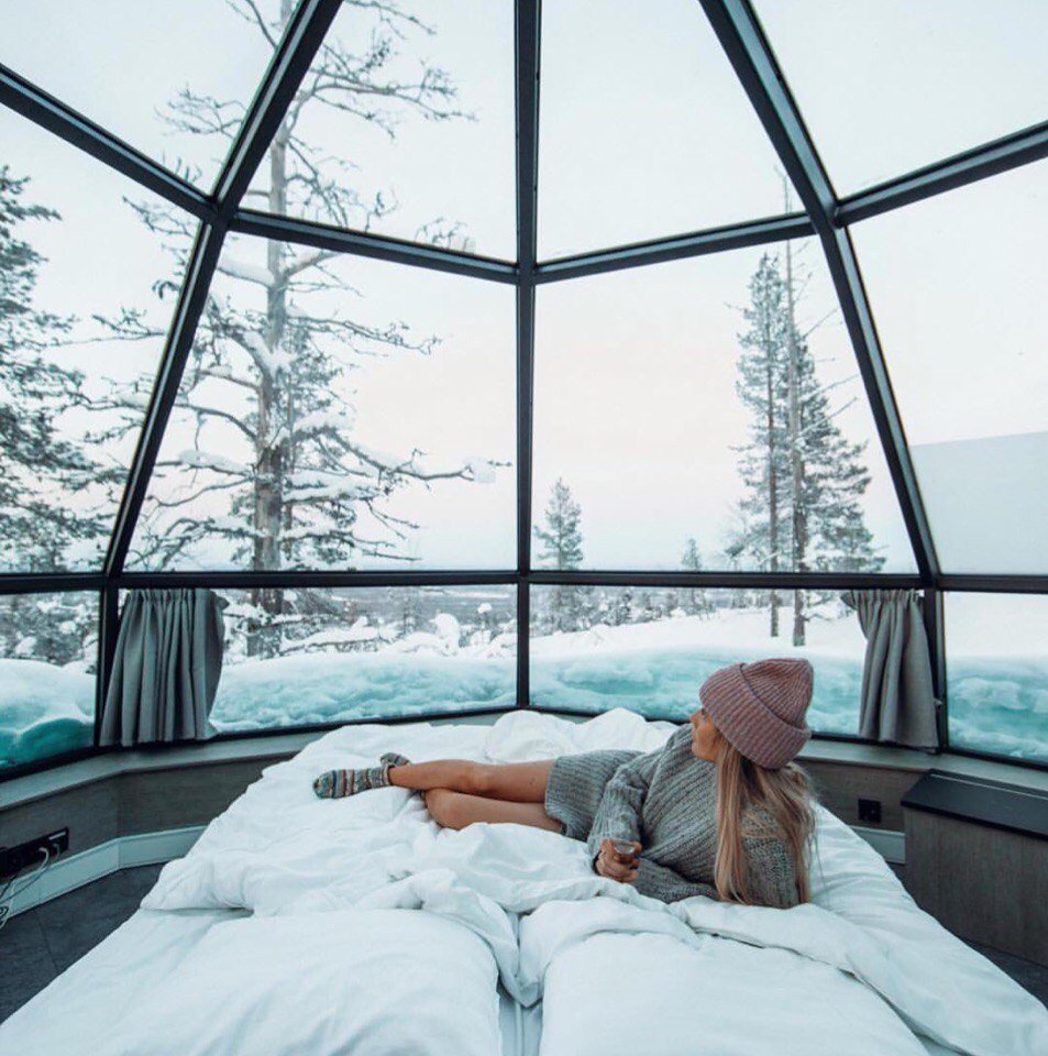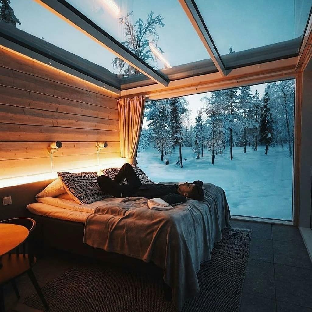 Домики с панорамными окнами зима