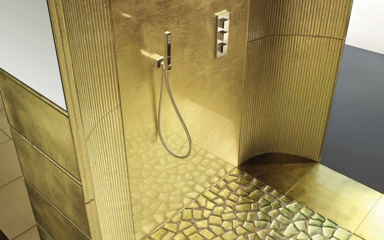 Плитка в душевой мозаика золото