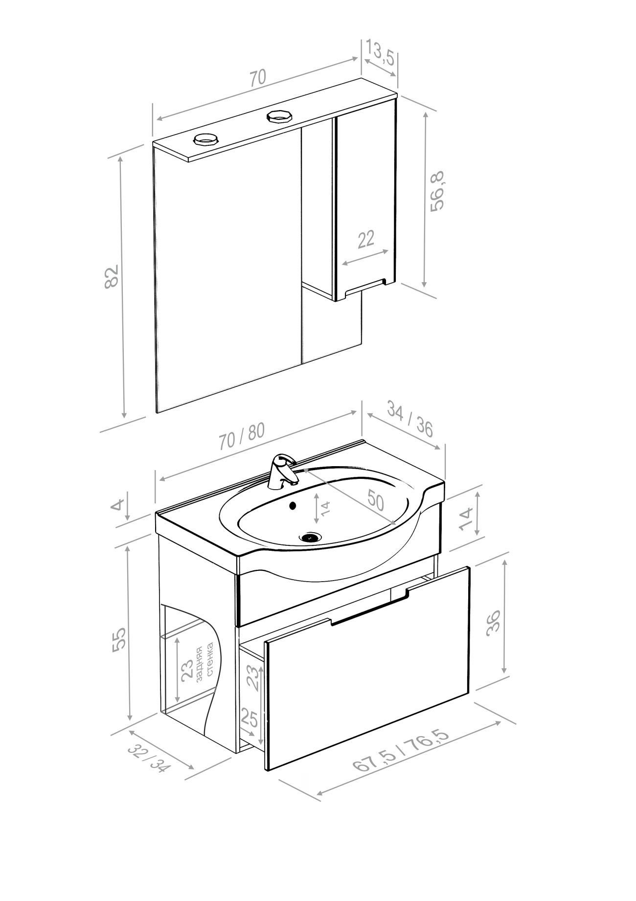 Раковина над стиральной машиной solo Blues 80x55 с узкой тумбой