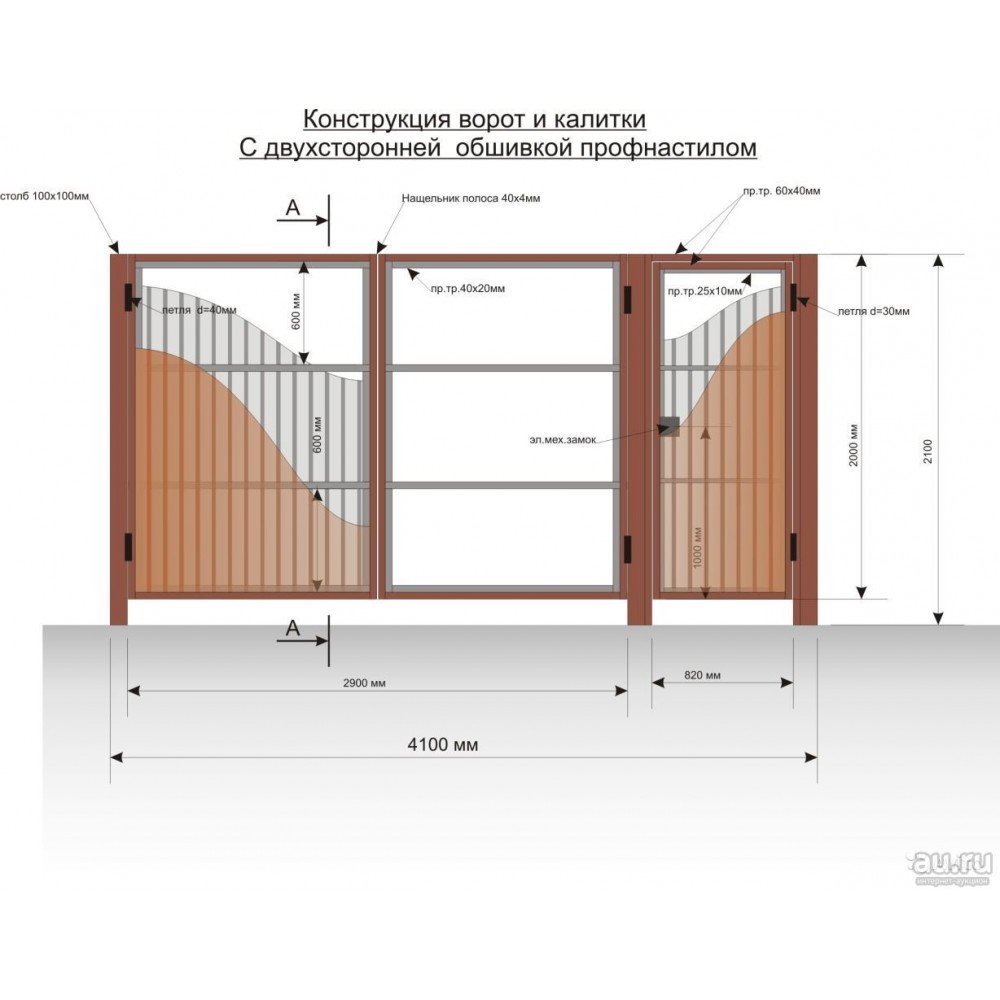Ворота из профиля 40х20 профлиста с калиткой чертежи