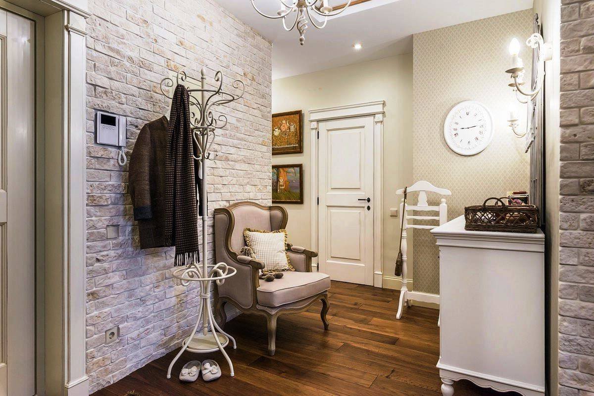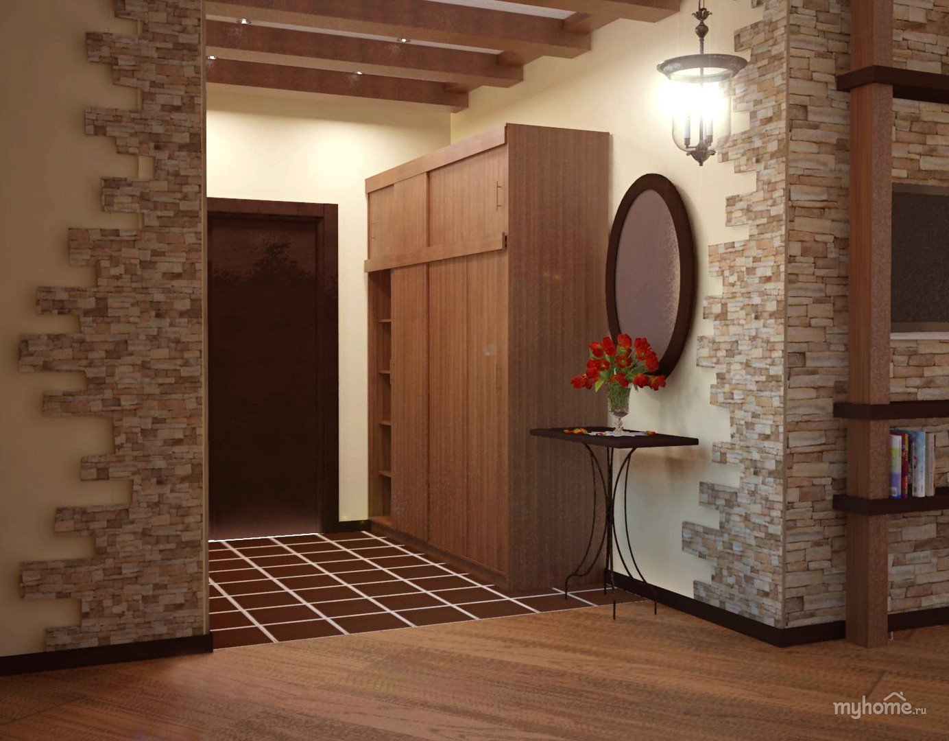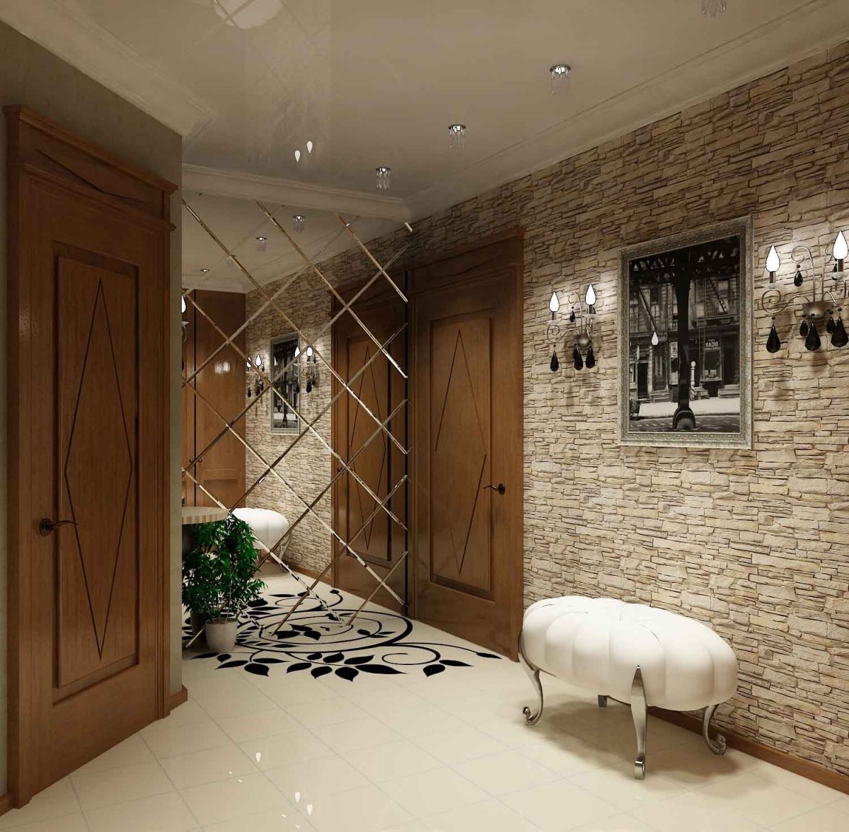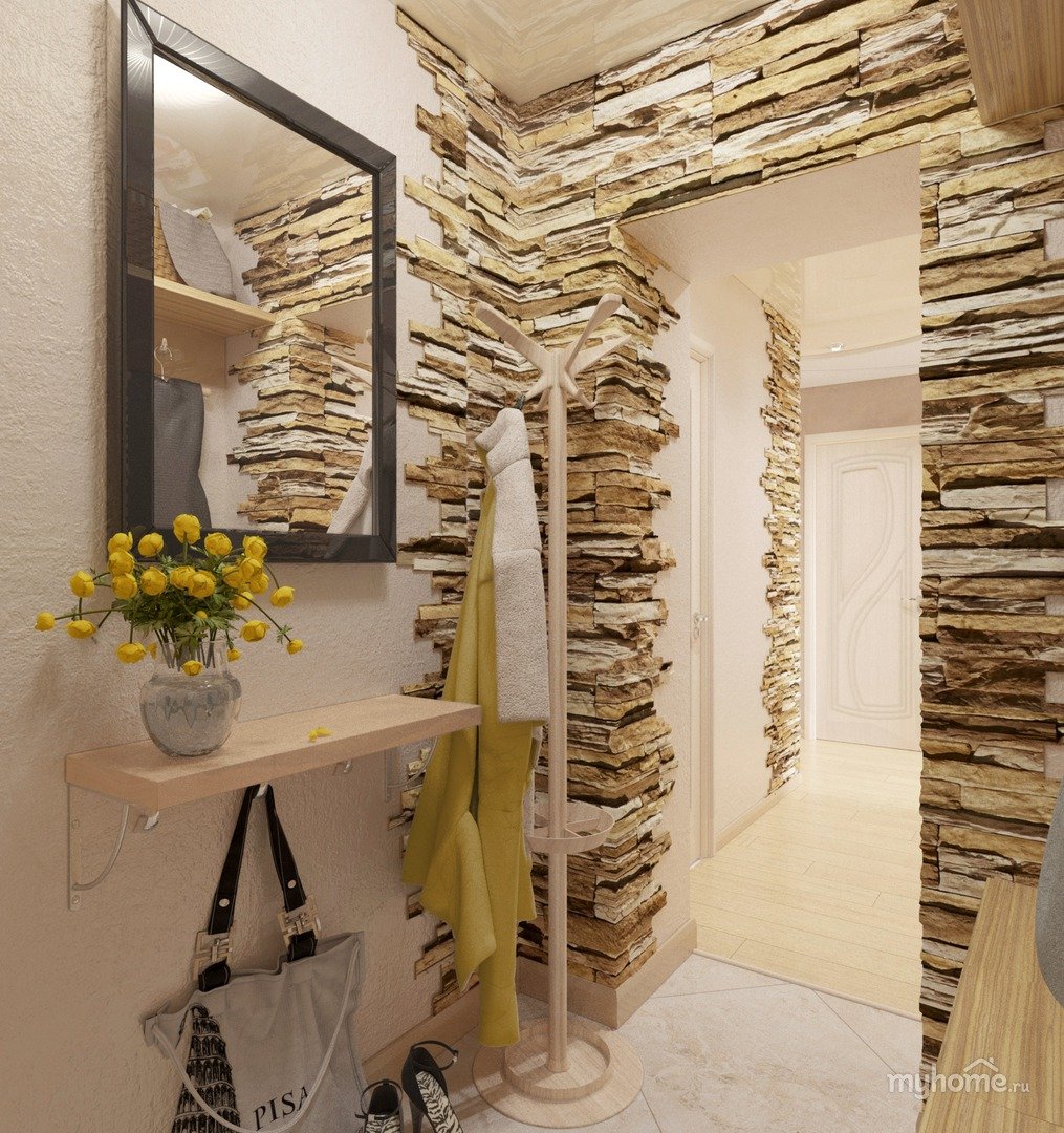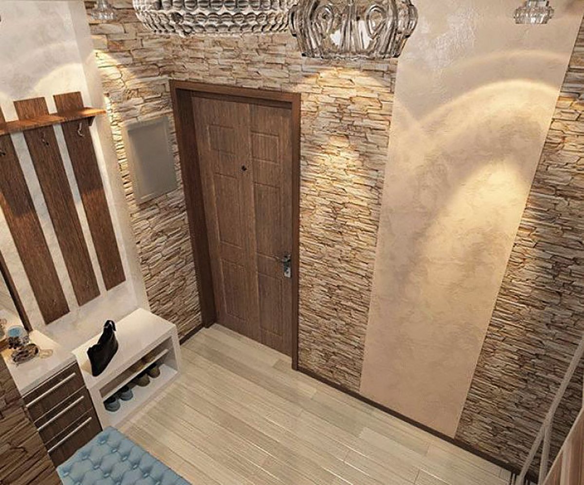 Прихожая с декоративным камнем и декоративной штукатуркой