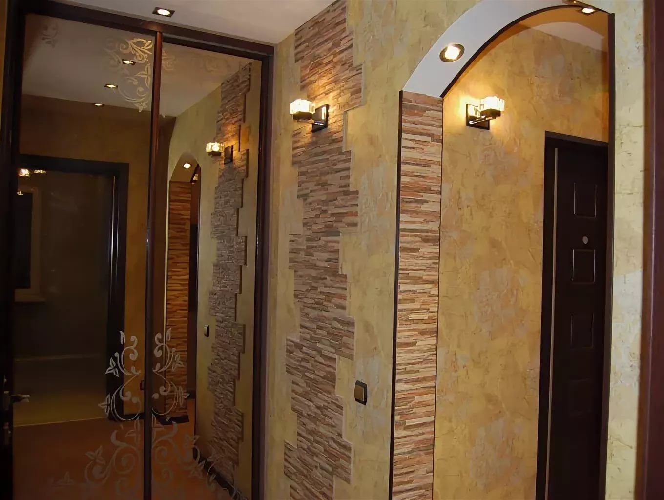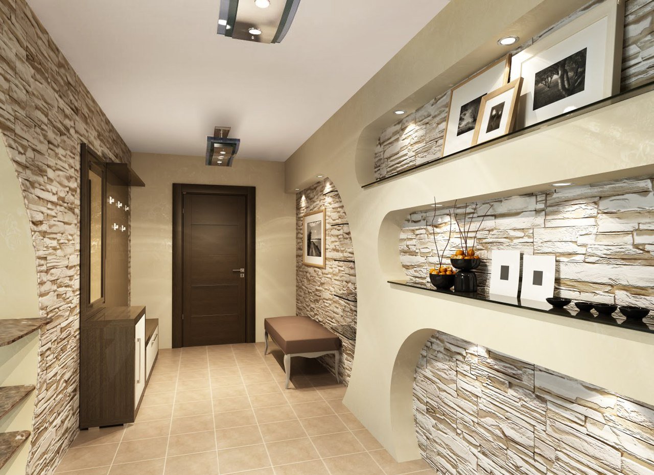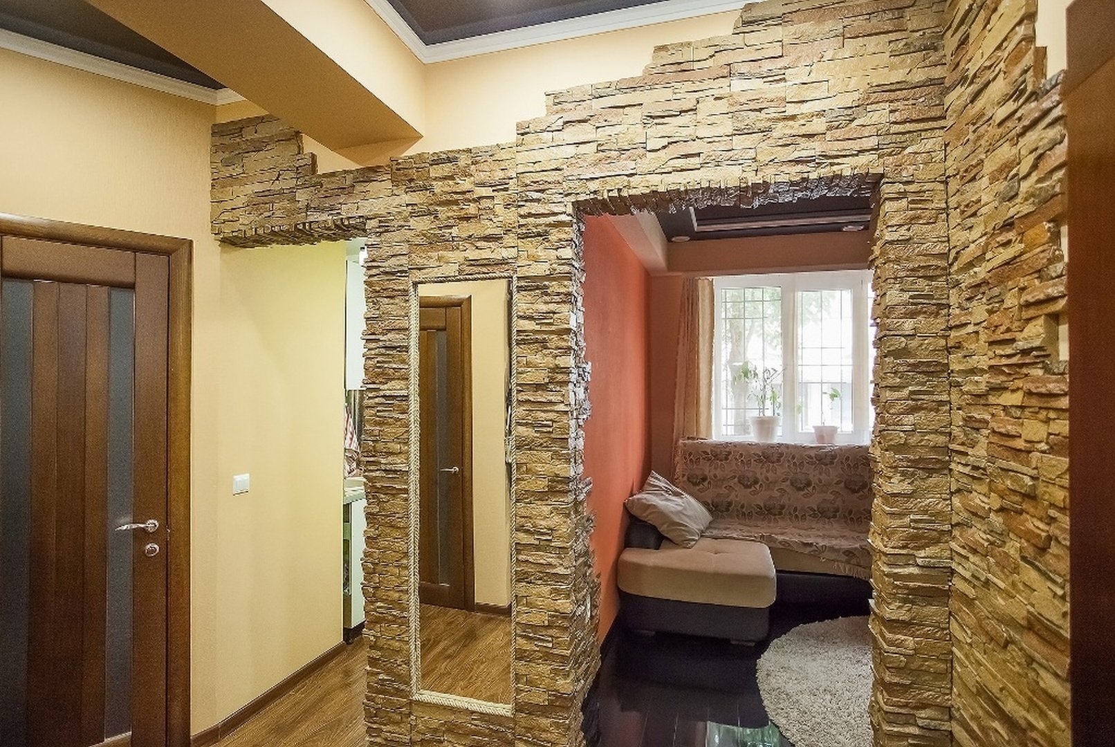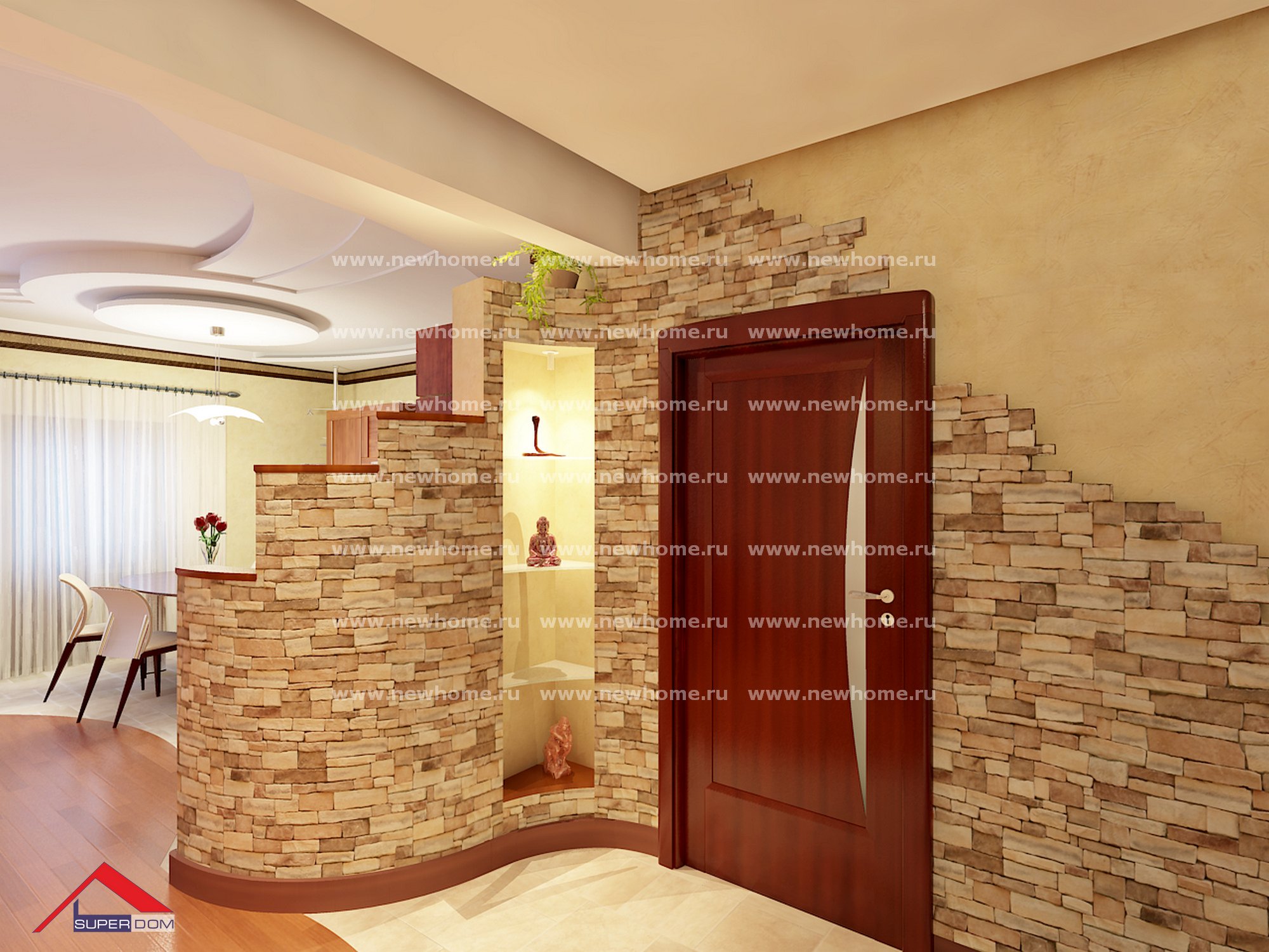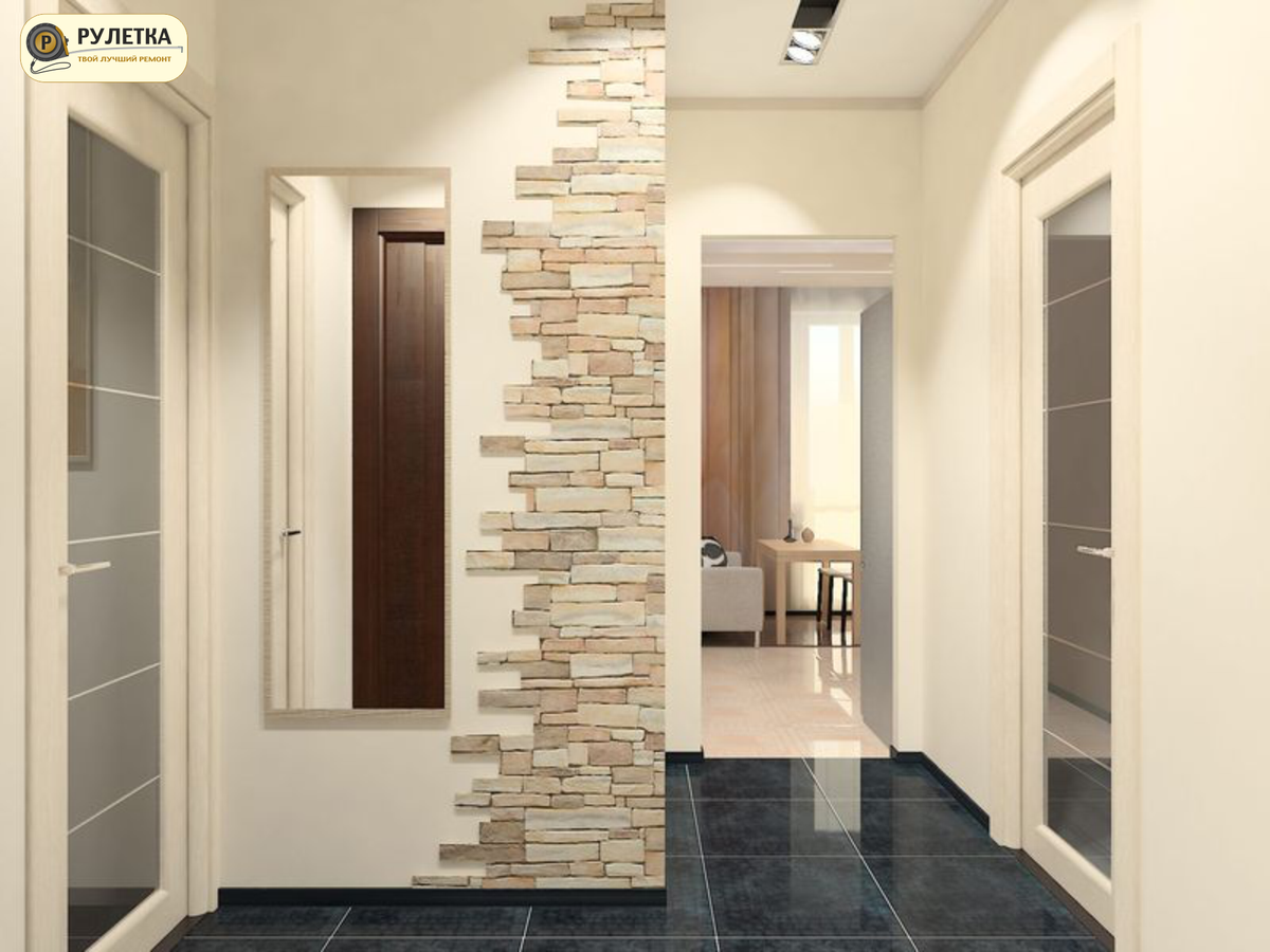 Прихожая с декоративным камнем и декоративной штукатуркой