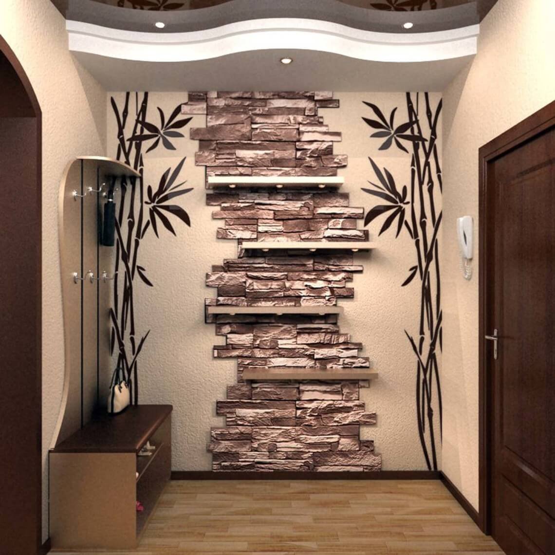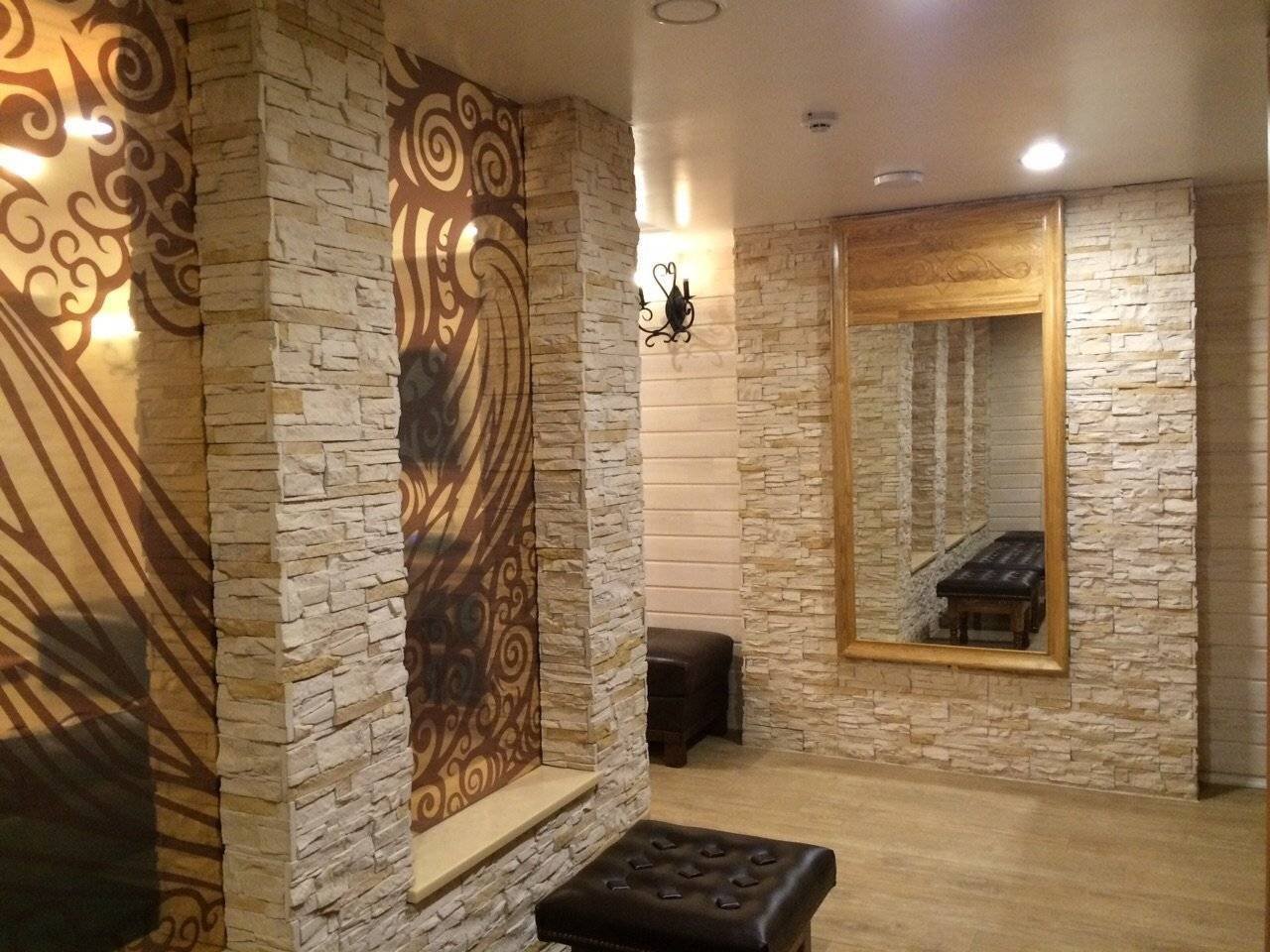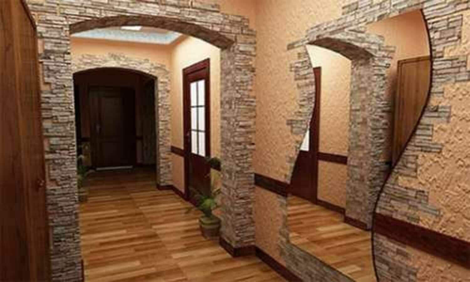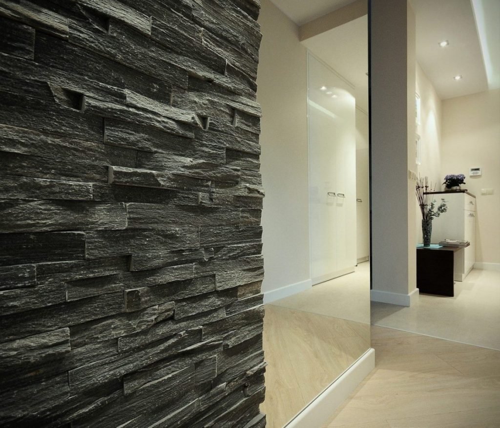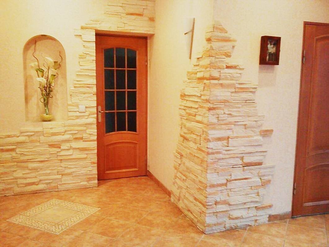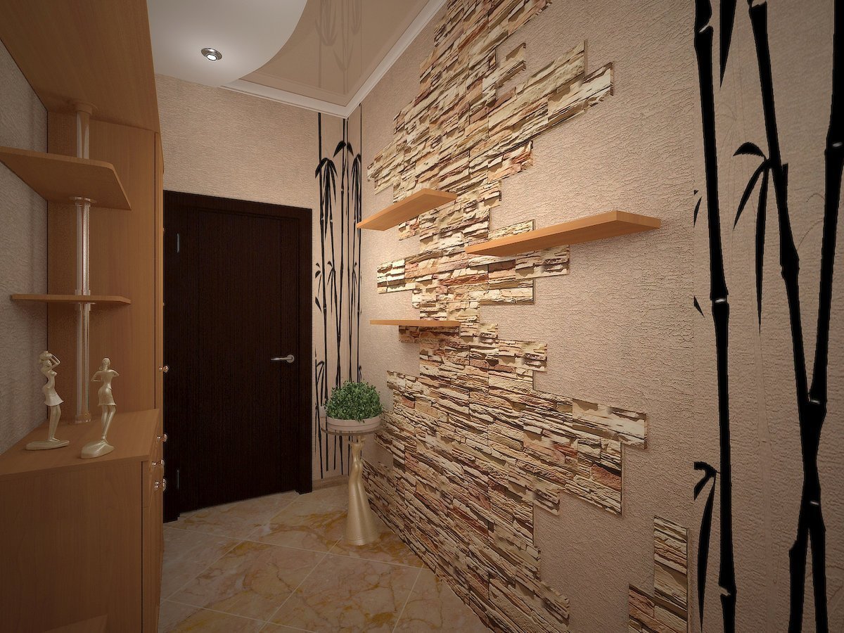 Прихожая с декоративным камнем и декоративной штукатуркой