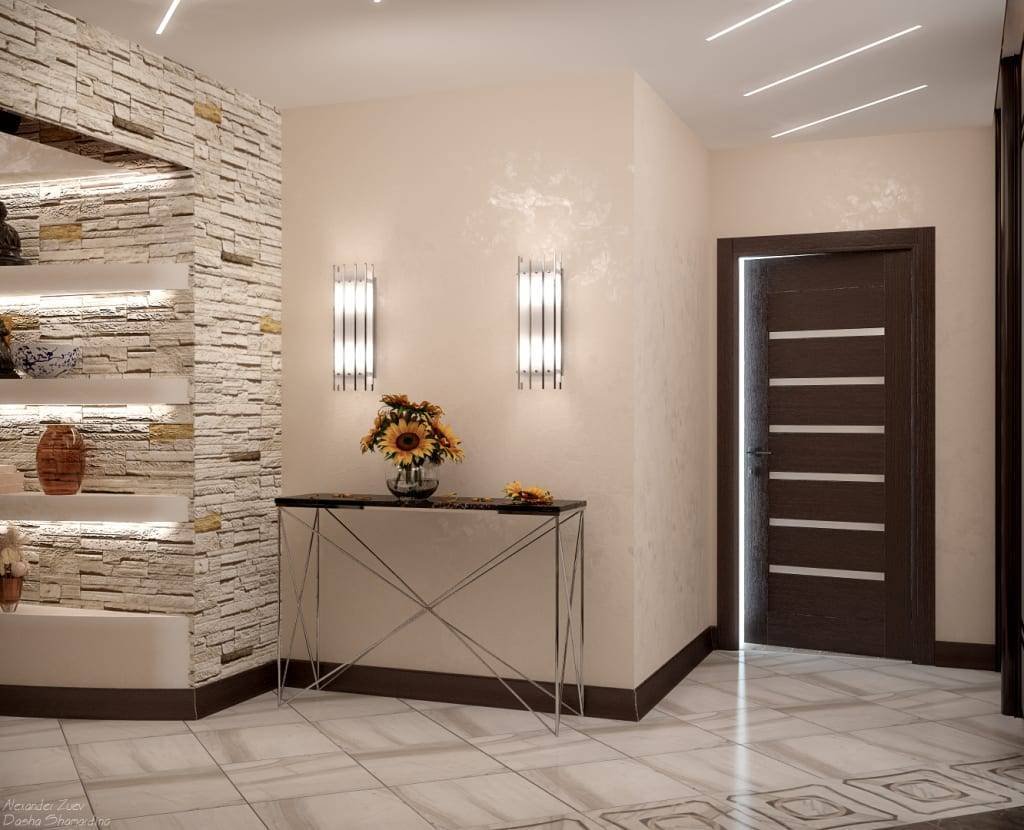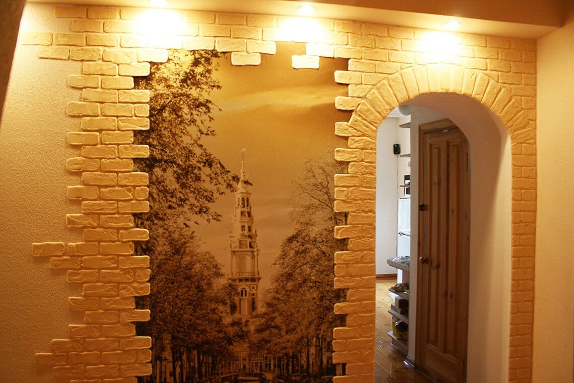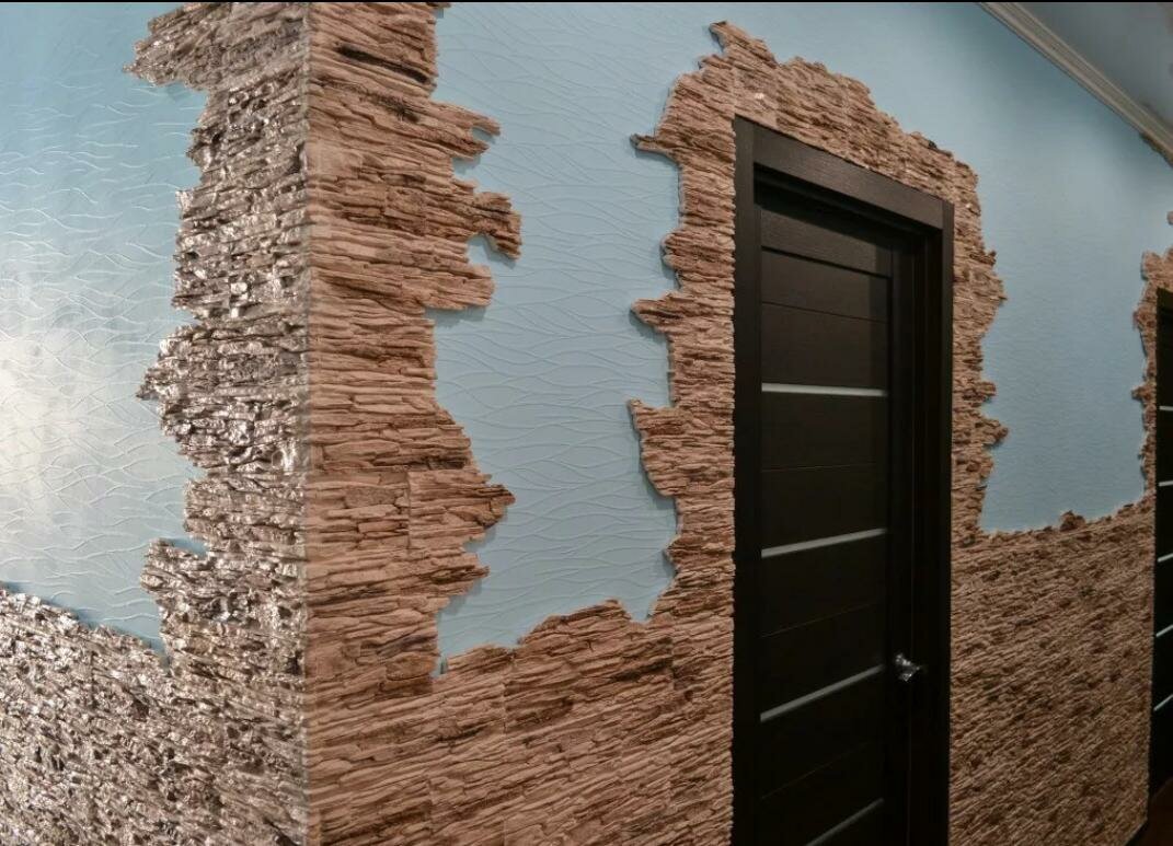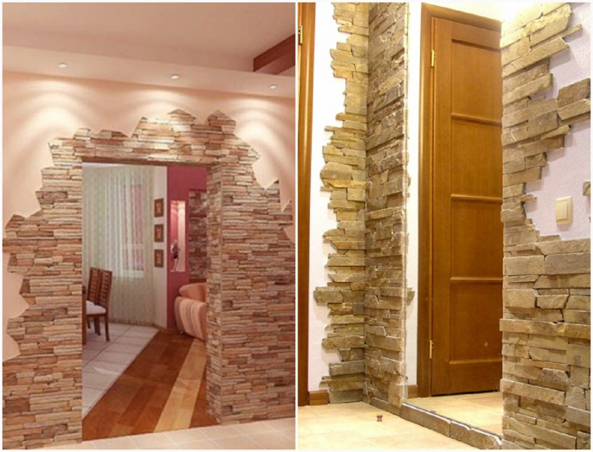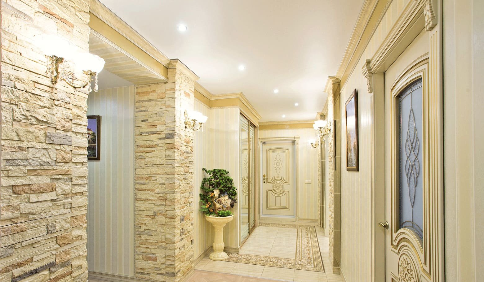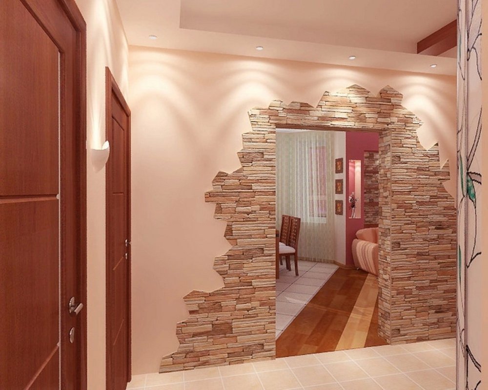 Прихожая с декоративным камнем и декоративной штукатуркой