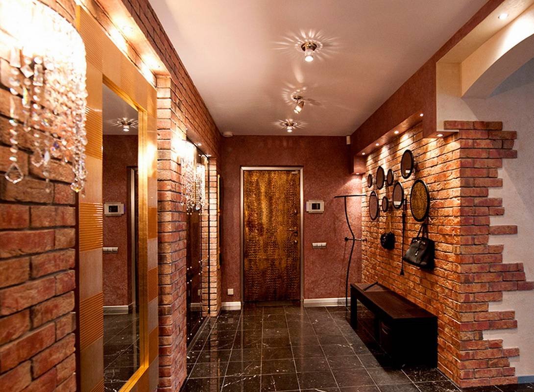 Покрытия для стен в прихожей в виде кирпичиков обоев