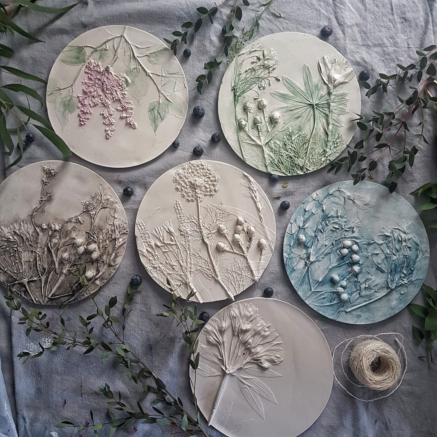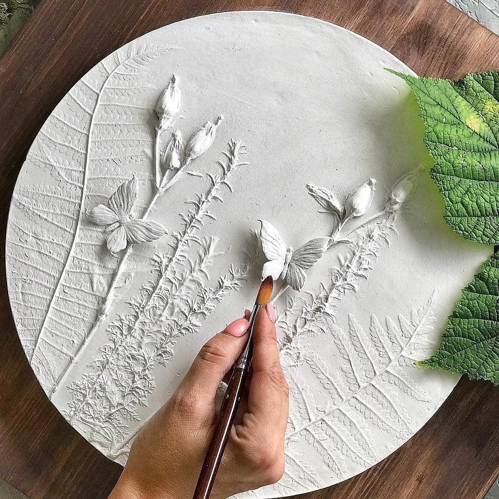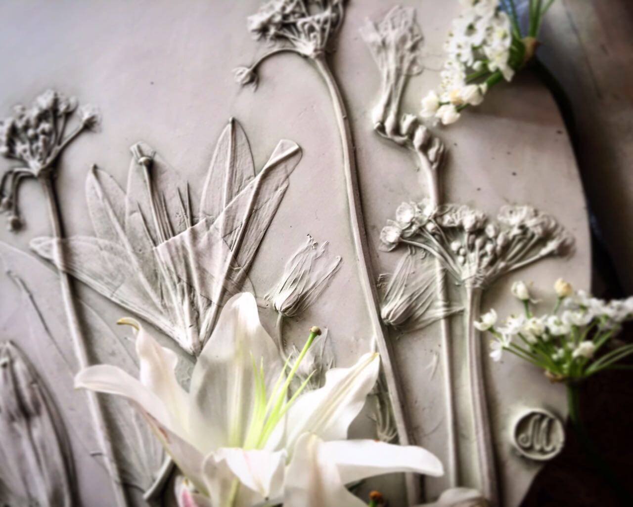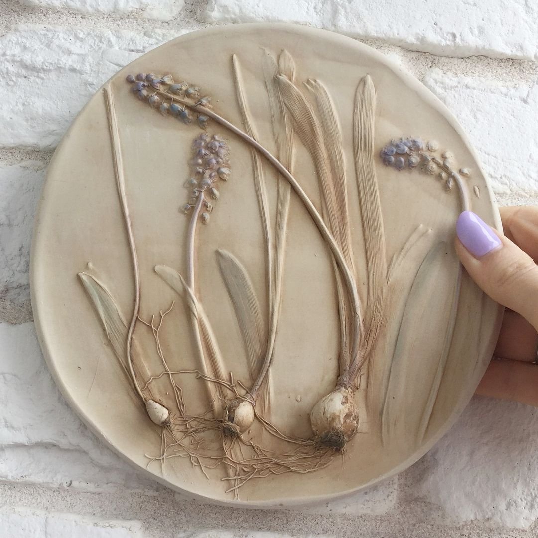 Ботанический барельеф из глины