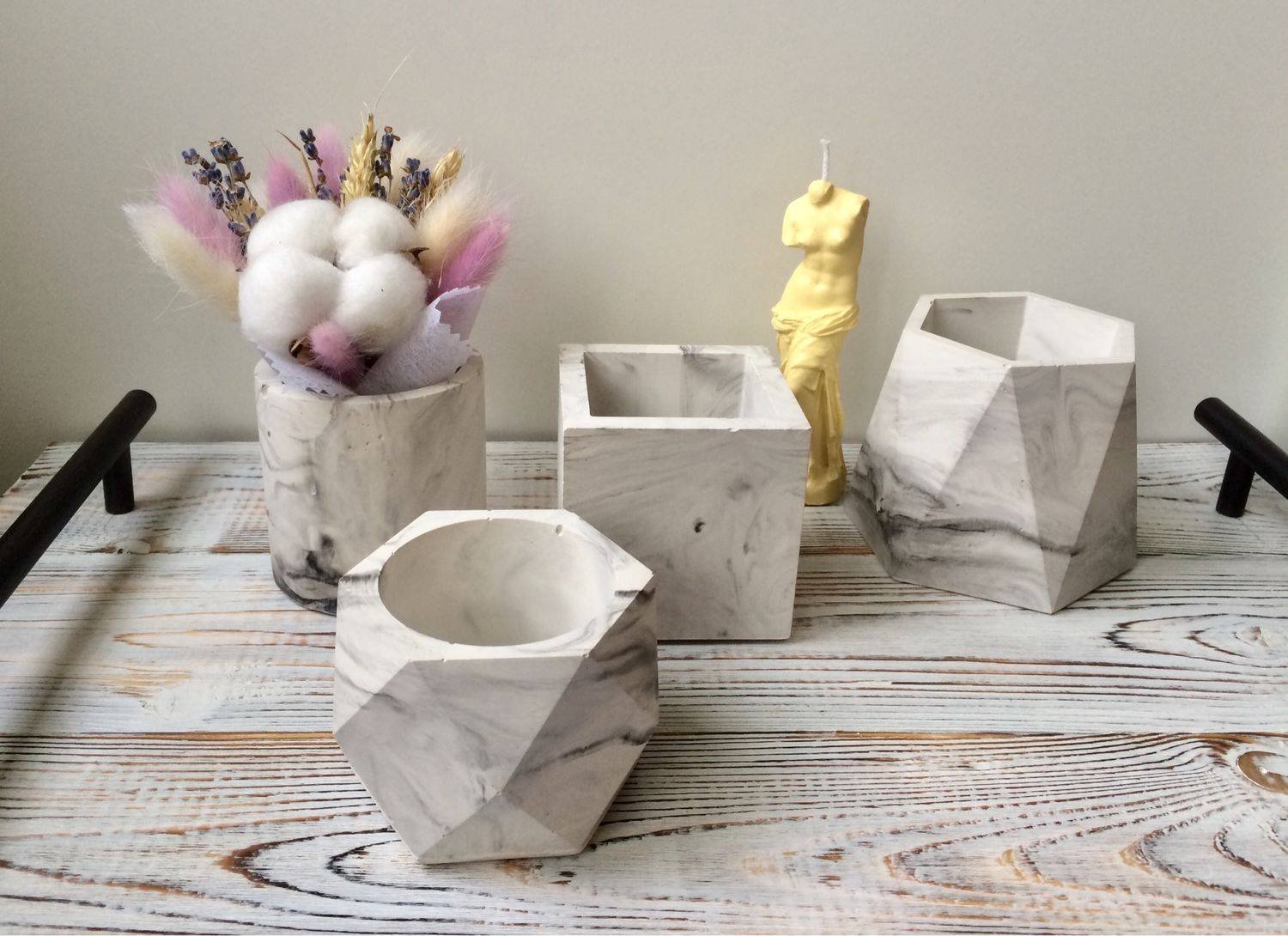 Кашпо из гипса и бетона